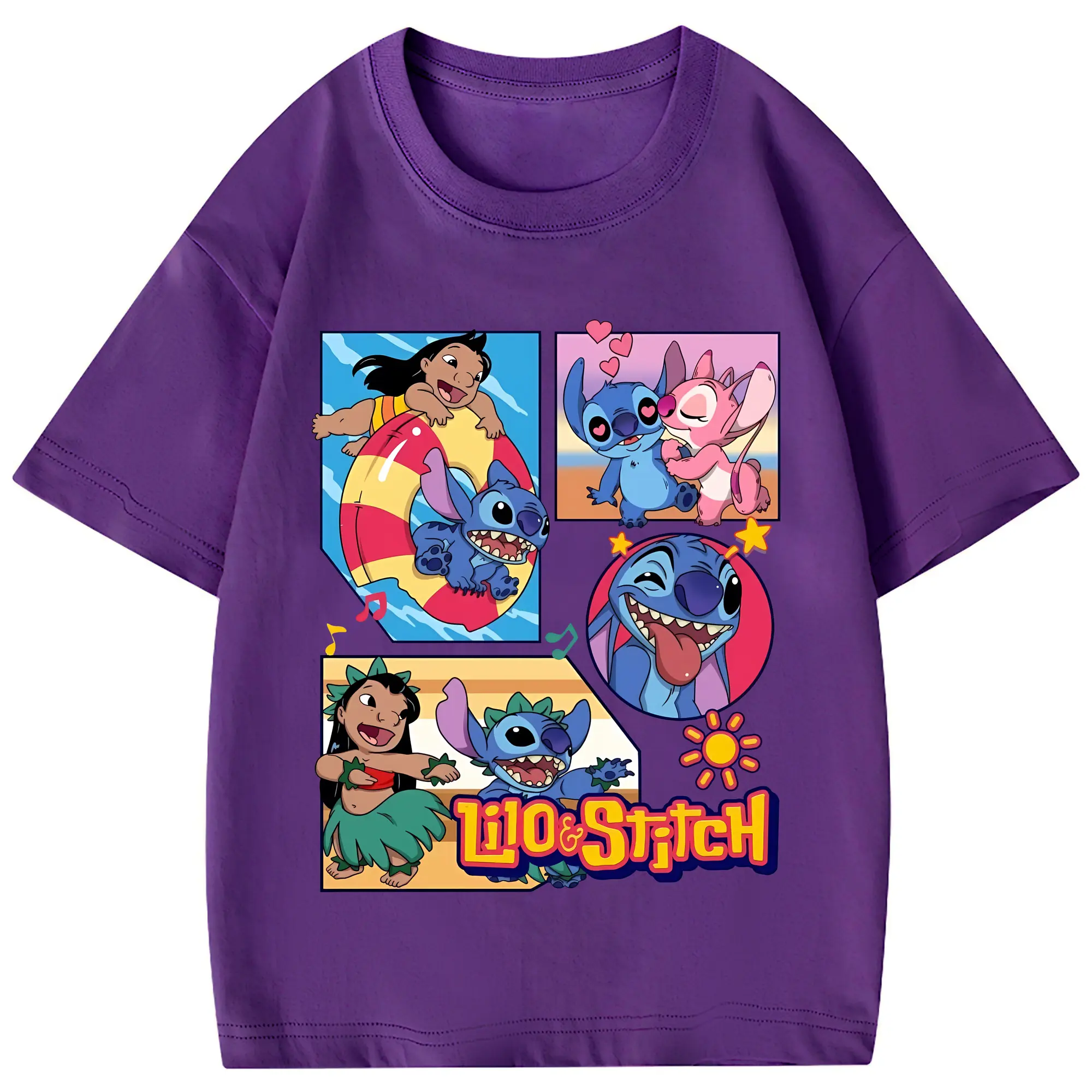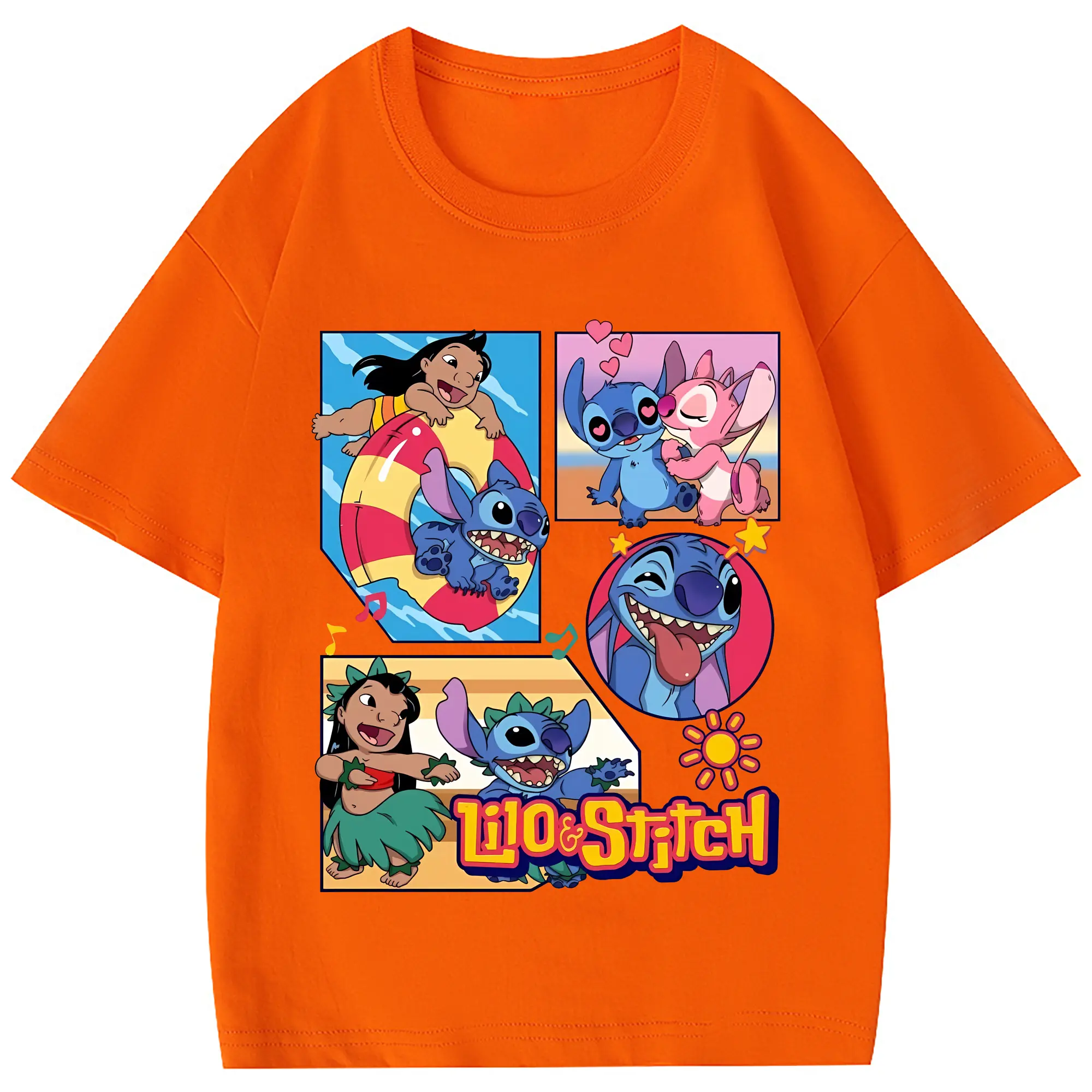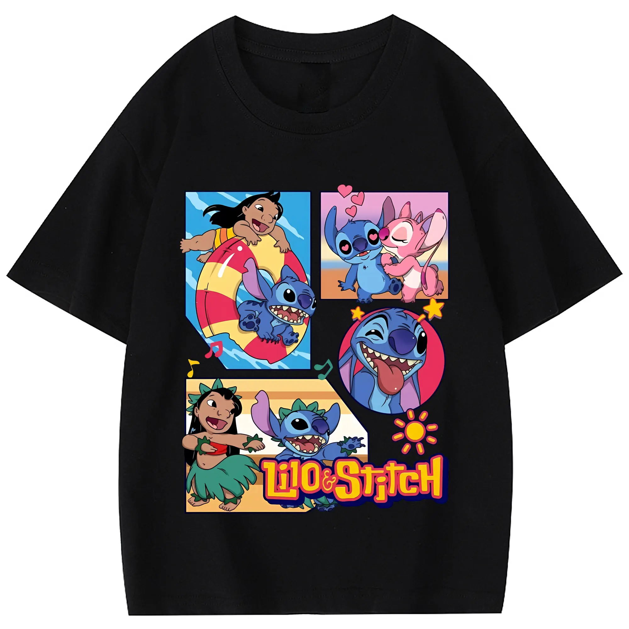 リロ&スティッチ グッズ スティッチ - 綿100% 半袖Tシャツ ・ バックプリント ・ 快適 通気性 ・ 日常使い 散歩 スポーツ用