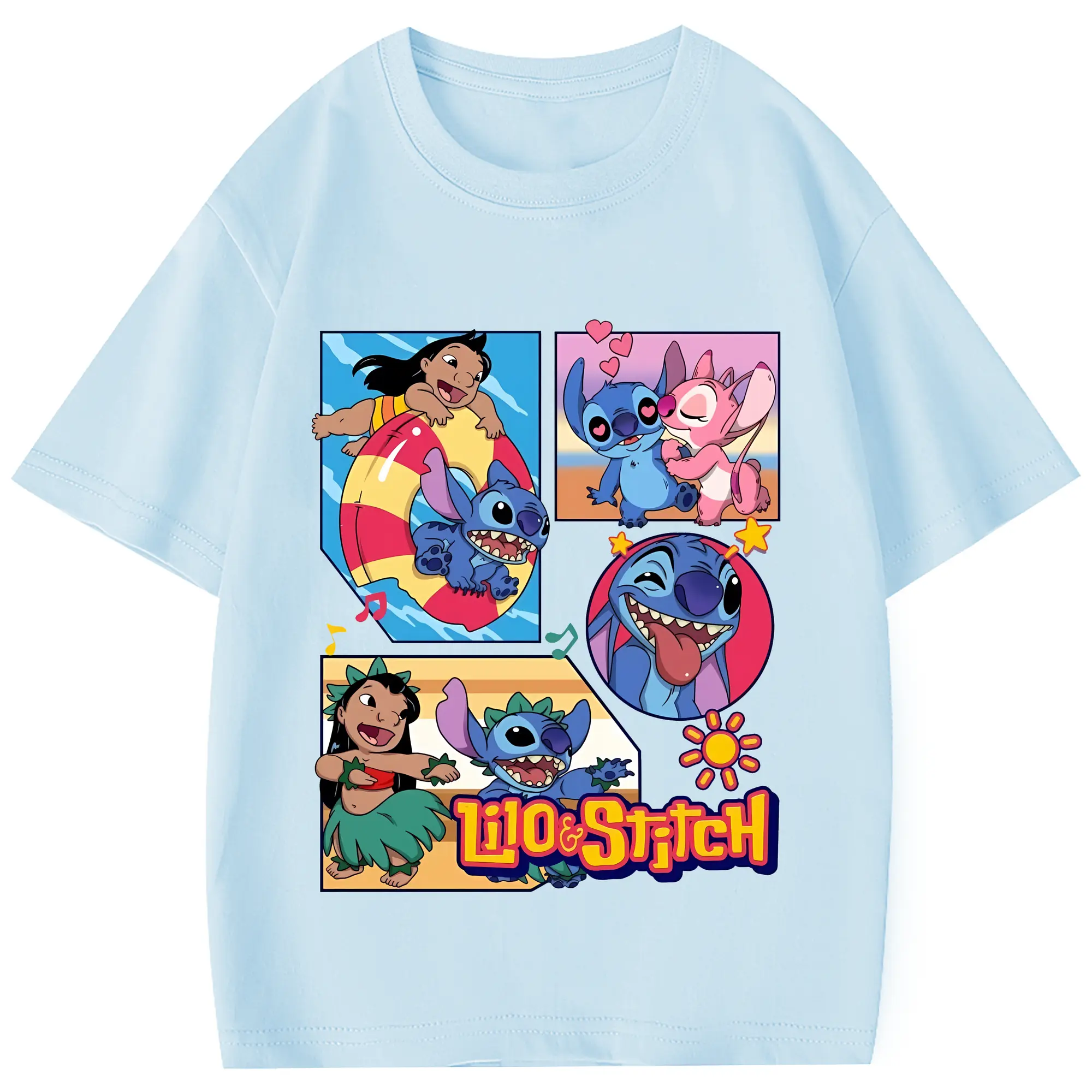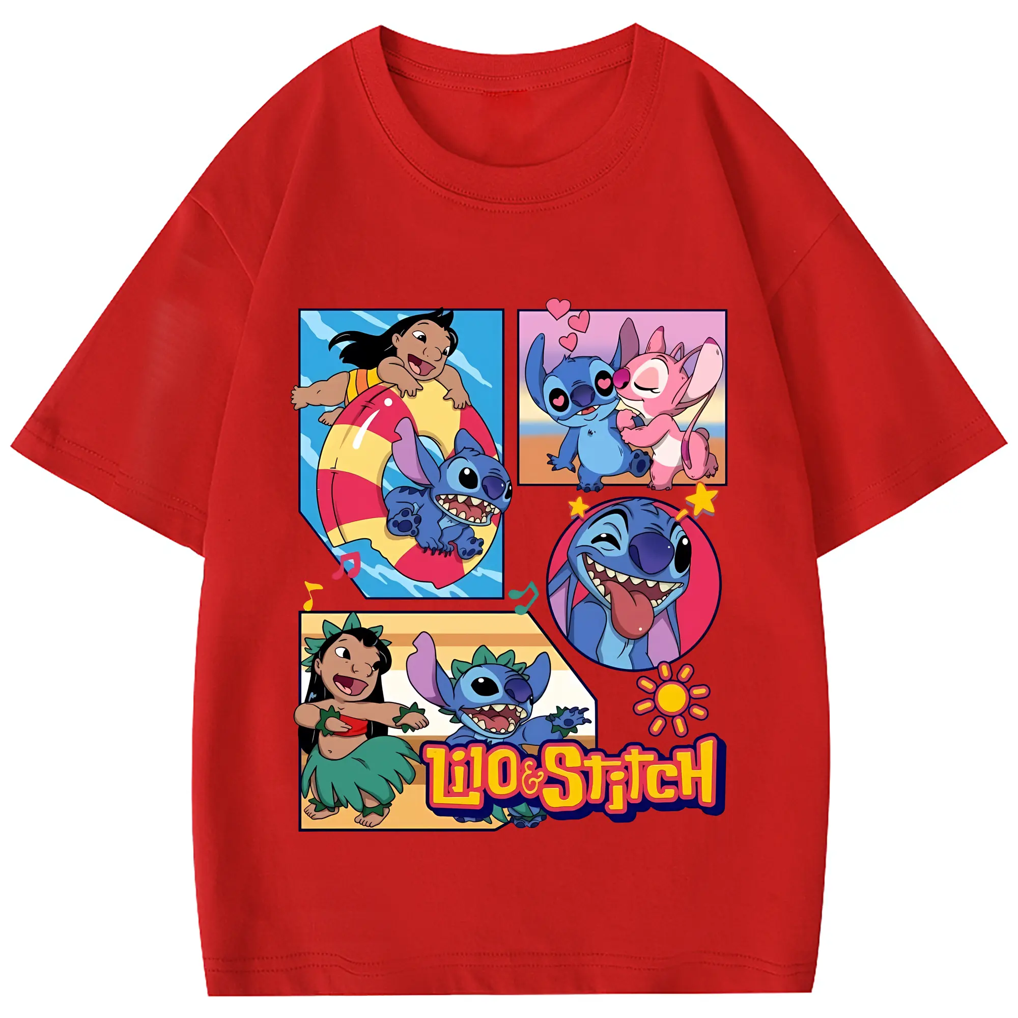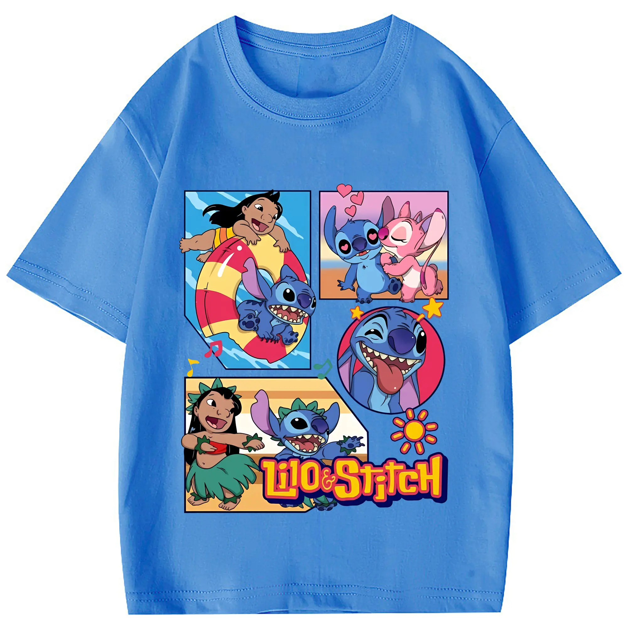 リロ&スティッチ グッズ スティッチ - 綿100% 半袖Tシャツ ・ フロントプリント ・ 快適 通気性 ・ 日常使い 散歩 スポーツ用