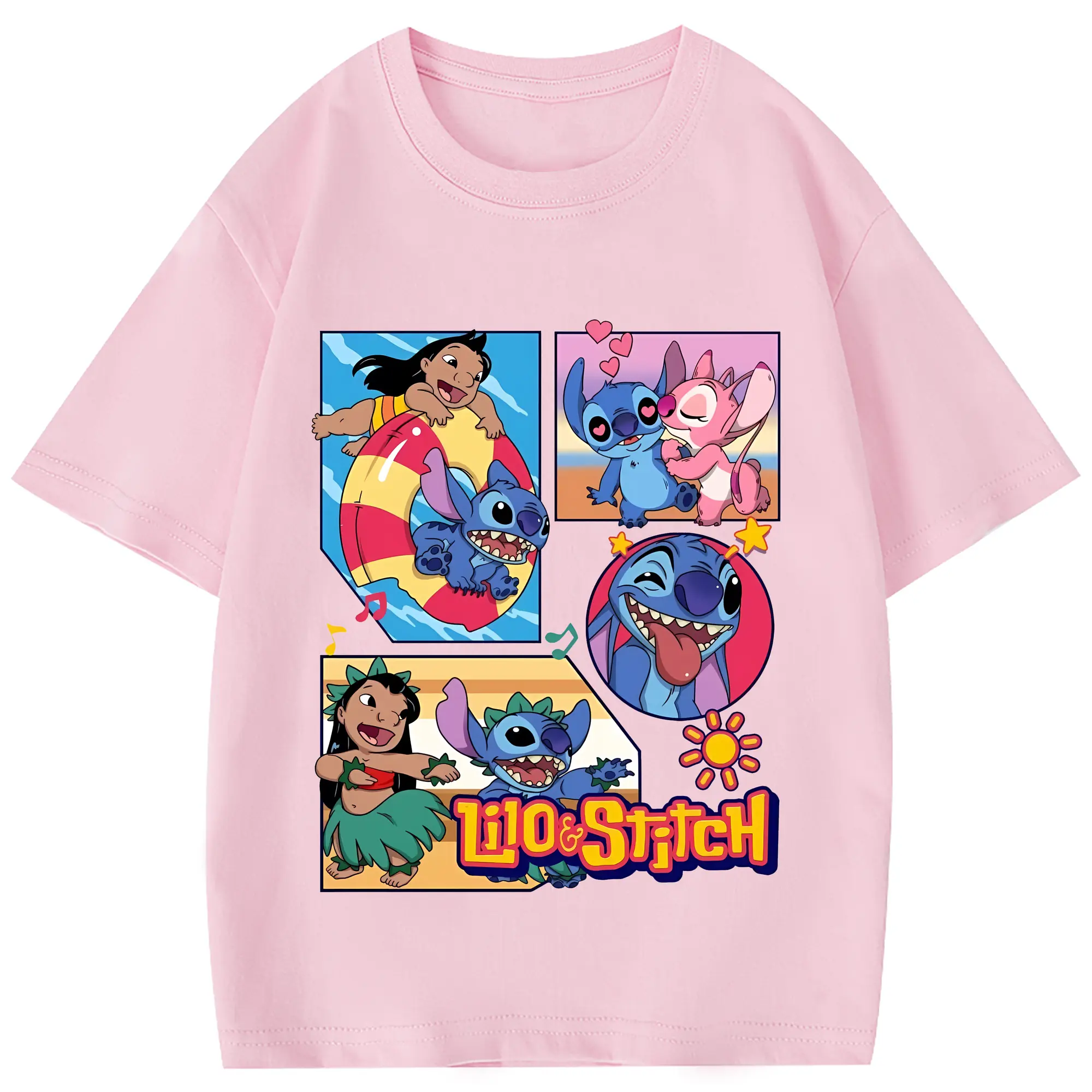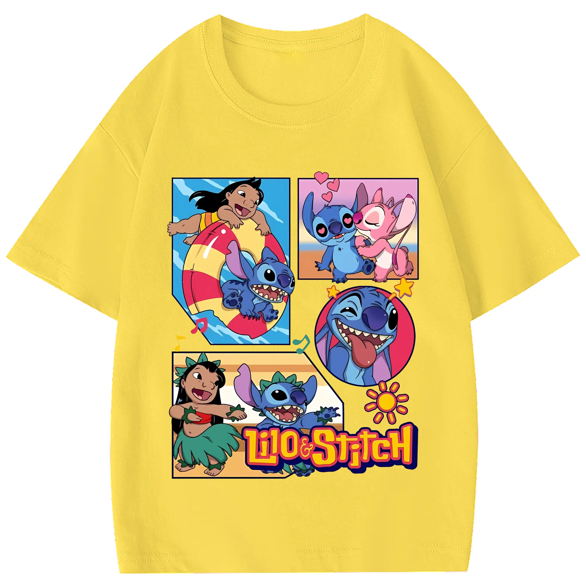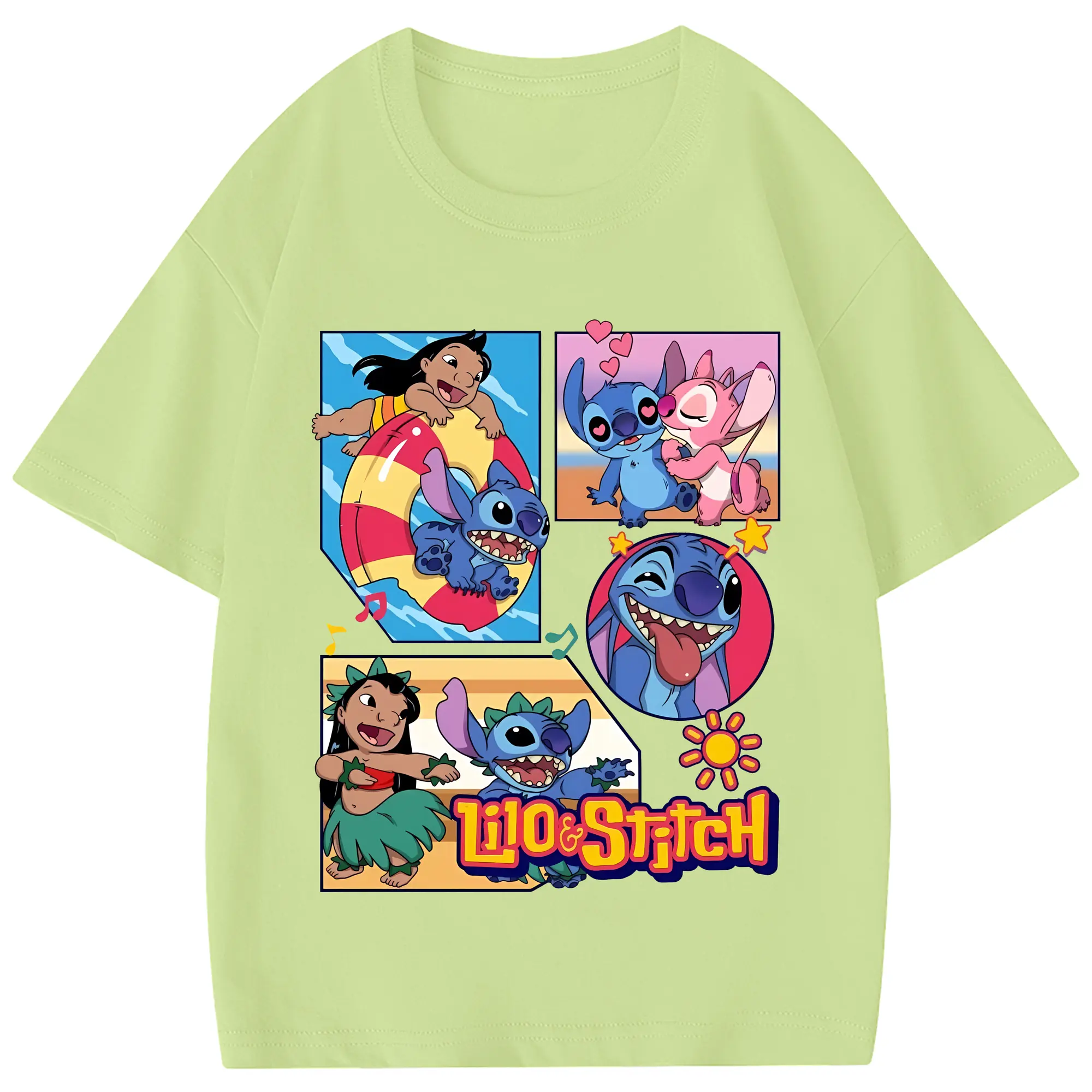 リロ&スティッチ グッズ スティッチ - 綿100% 半袖Tシャツ ・ フロントプリント ・ 快適 通気性 ・ 日常使い 散歩 スポーツ用