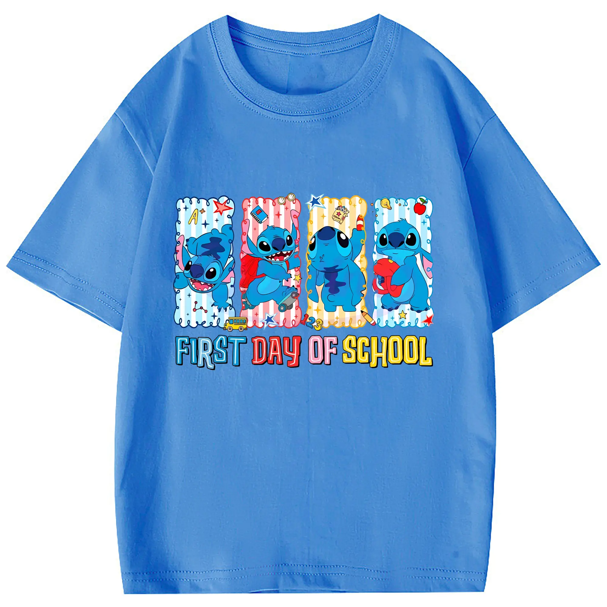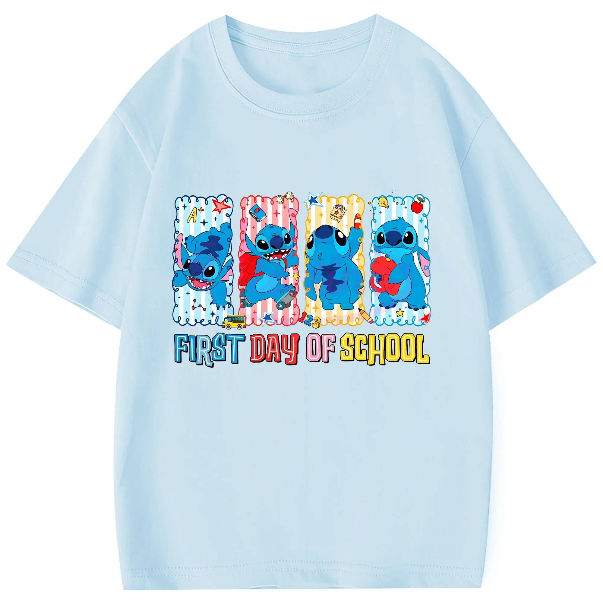 リロ&スティッチ グッズ スティッチ - 綿100% 半袖Tシャツ ・ フロントプリント ・ 快適 通気性 ・ 日常使い 散歩 スポーツ用