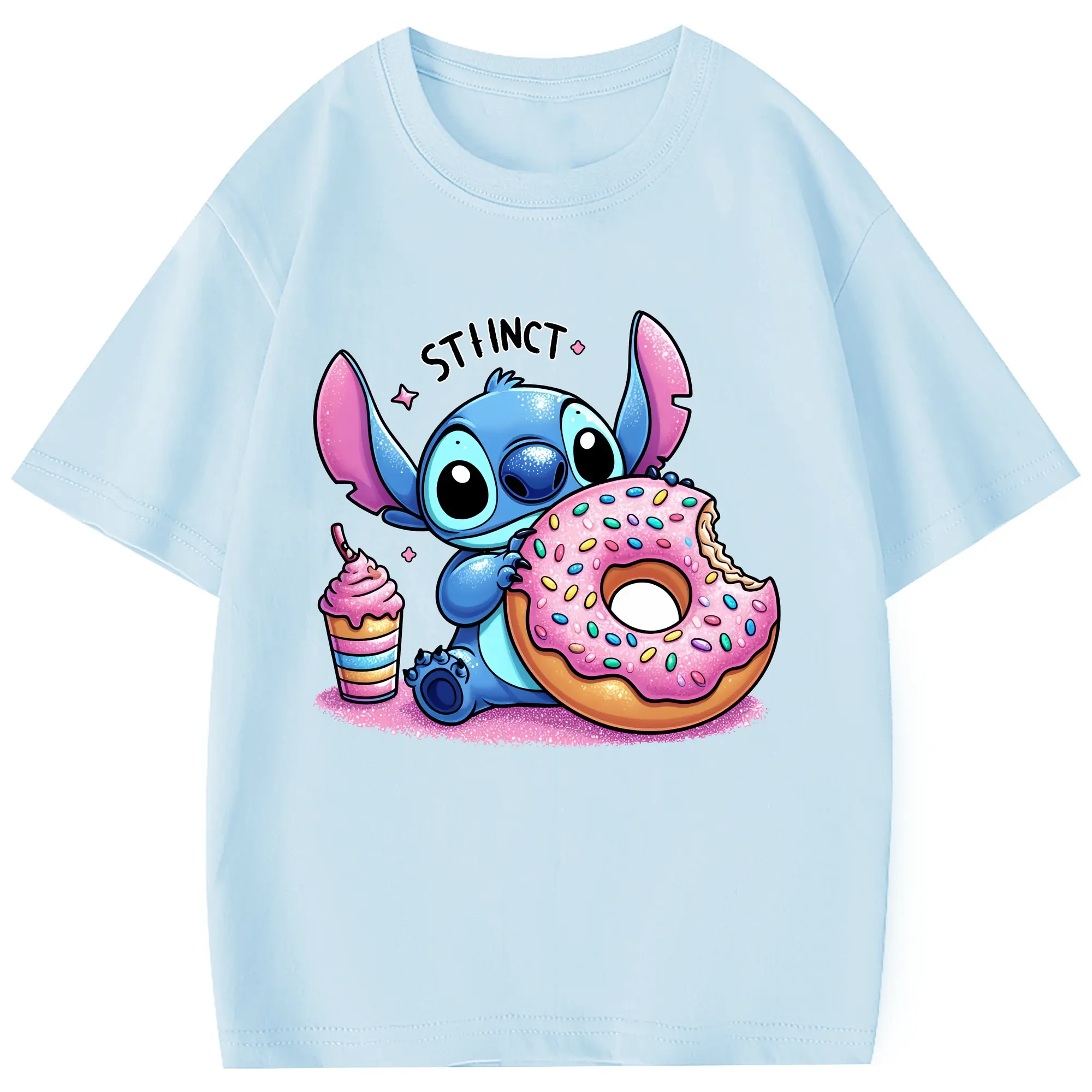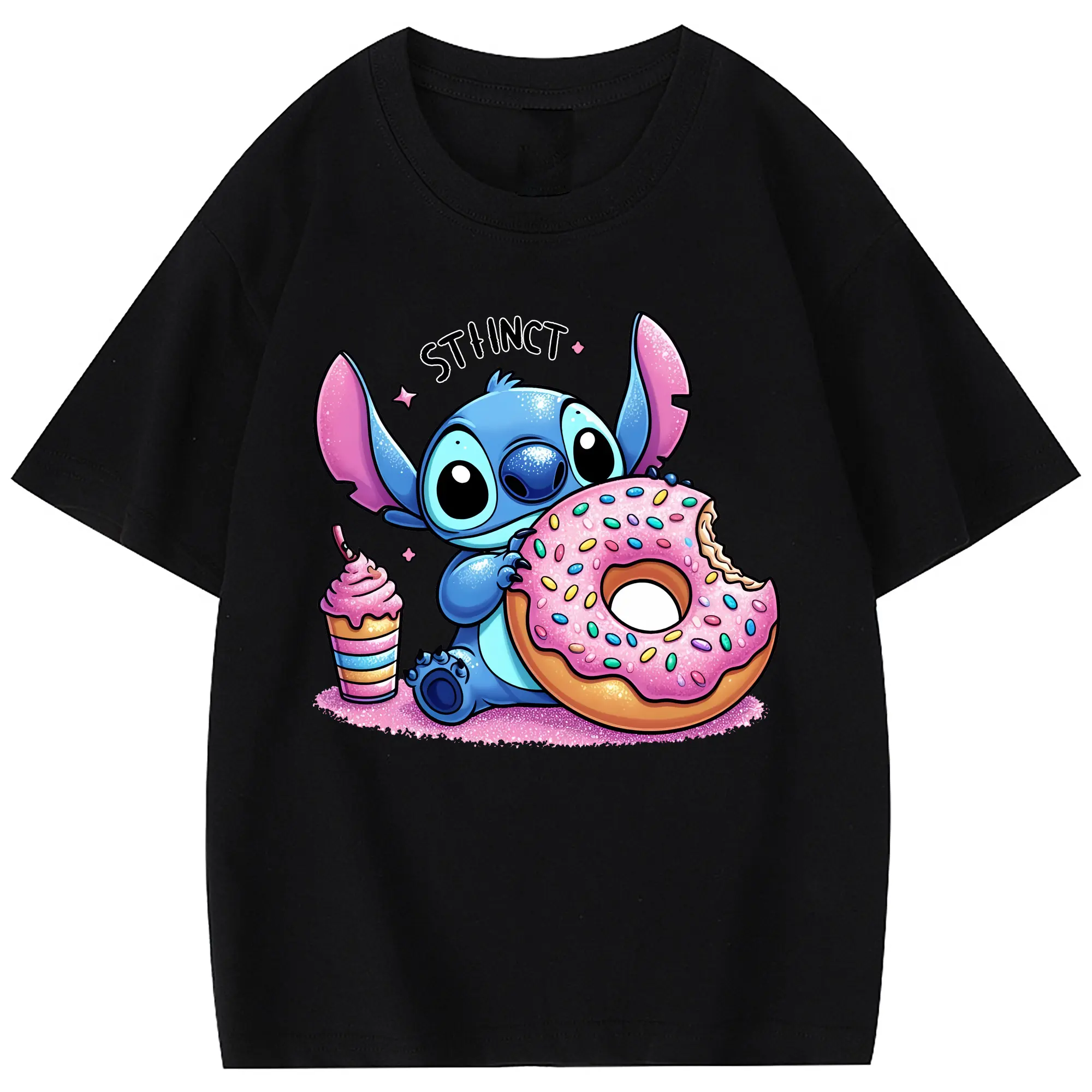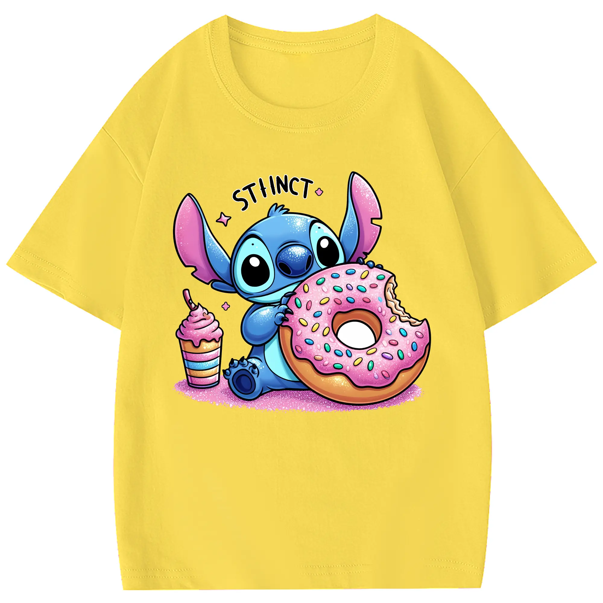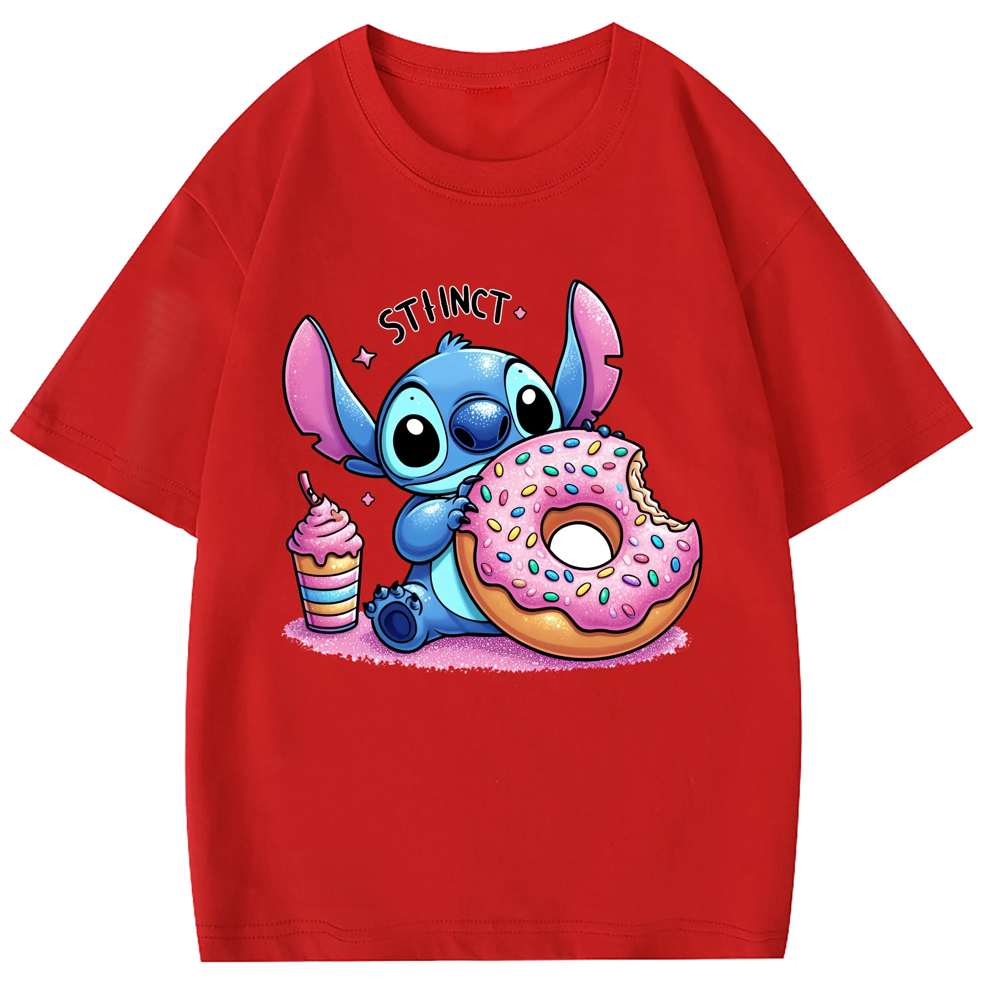 リロ&スティッチ グッズ スティッチ - 綿100% 半袖Tシャツ ・ フロントプリント ・ 快適 通気性 ・ 日常使い 散歩 スポーツ用