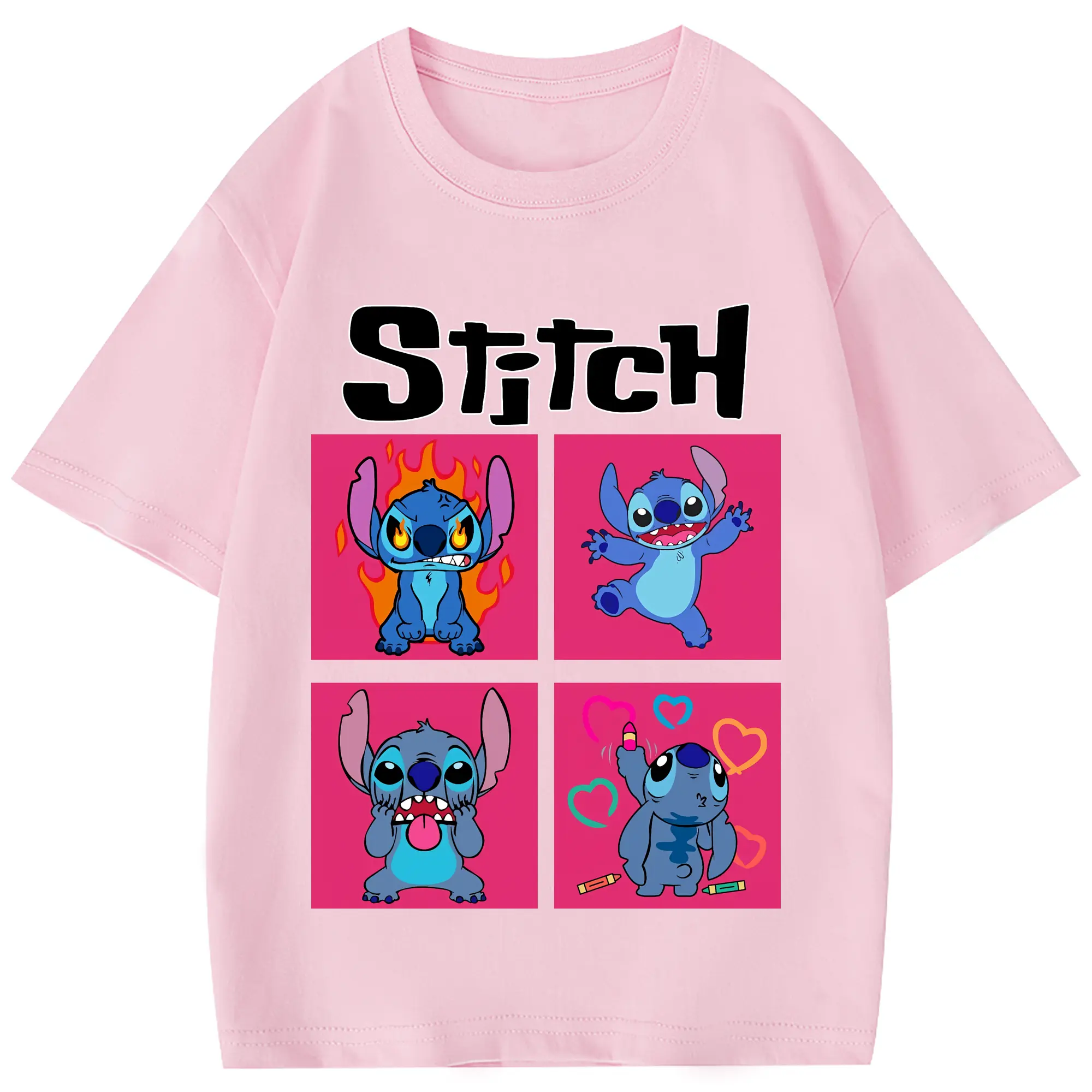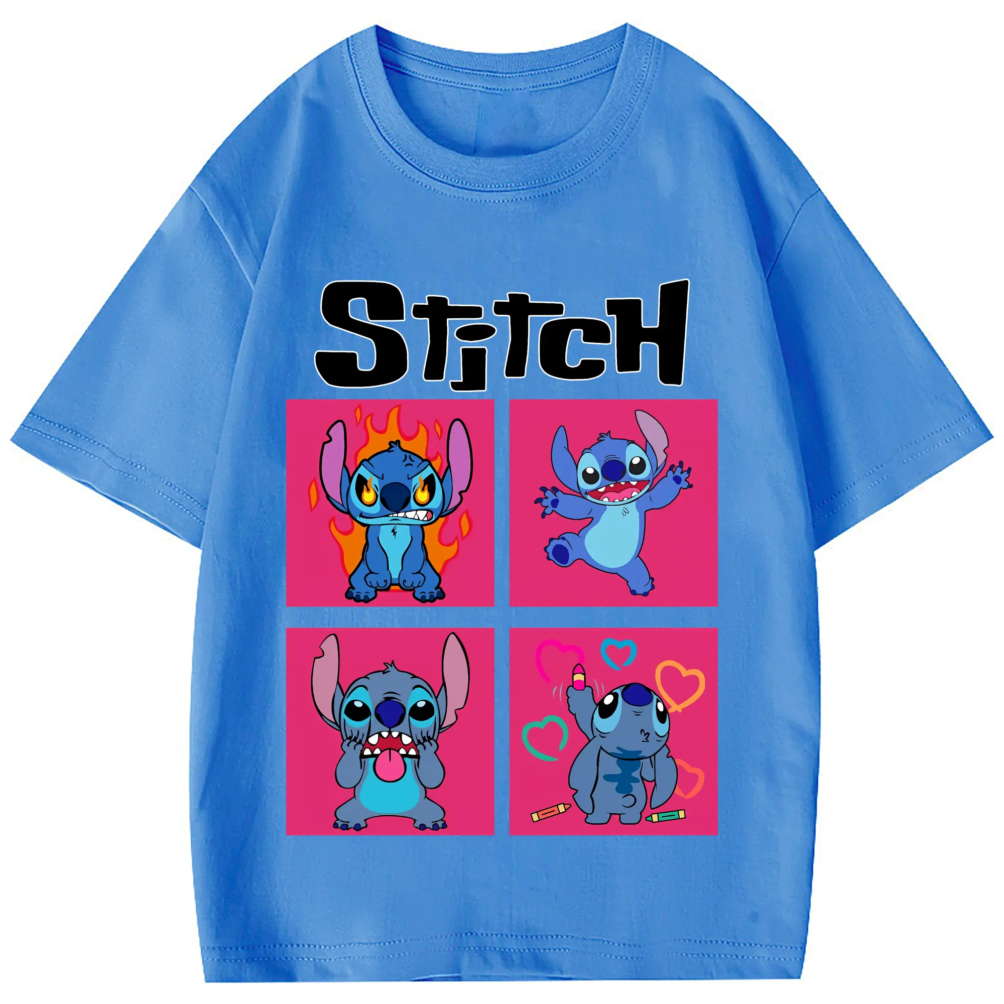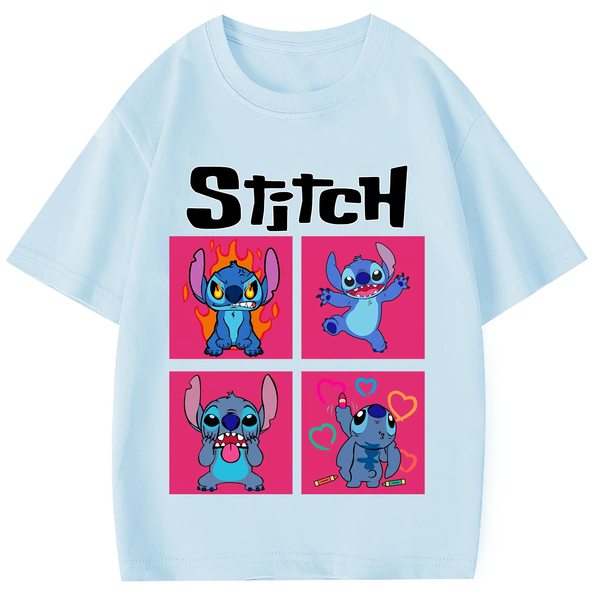 リロ&スティッチ グッズ スティッチ - 綿100% 半袖Tシャツ ・ フロントプリント ・ 快適 通気性 ・ 日常使い 散歩 スポーツ用