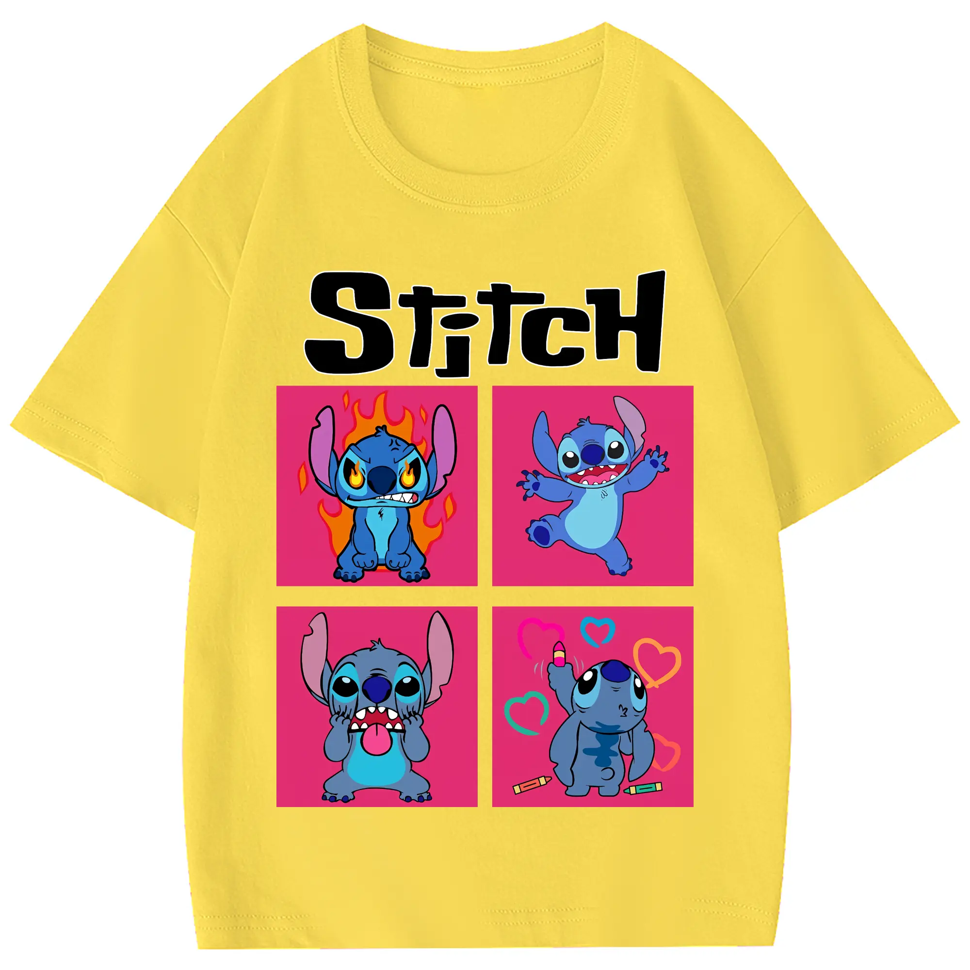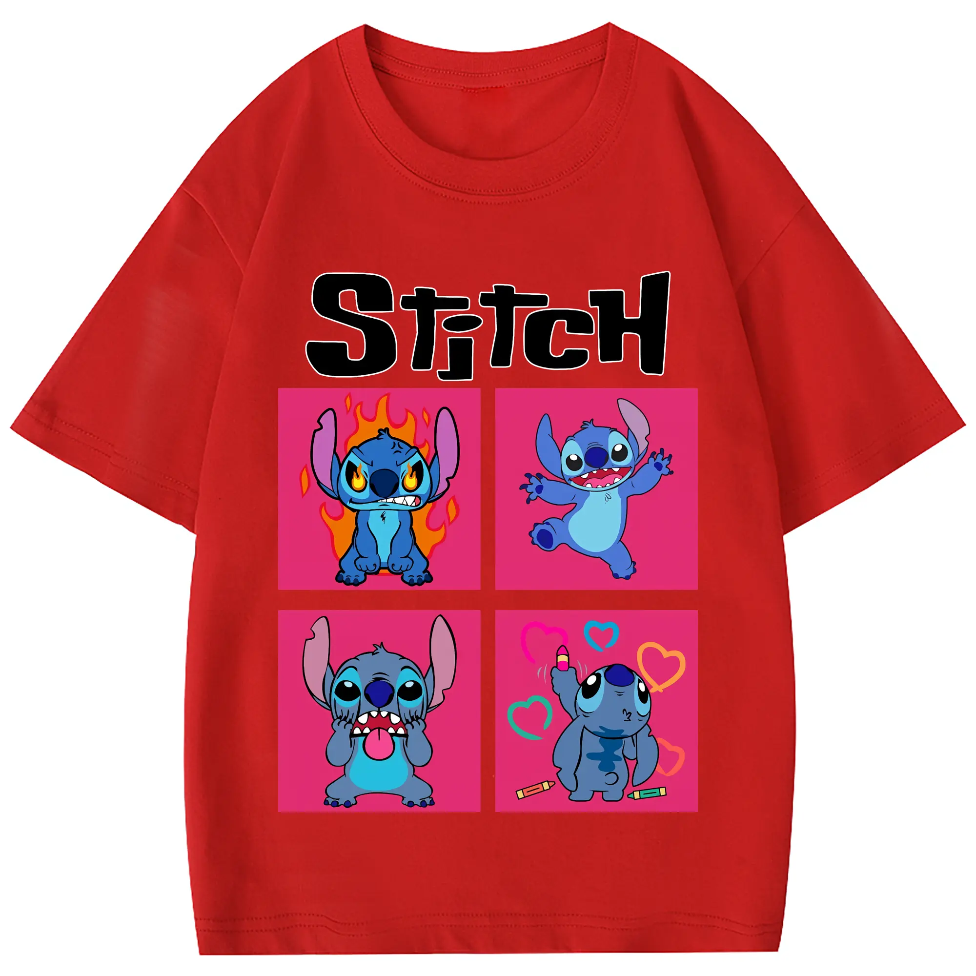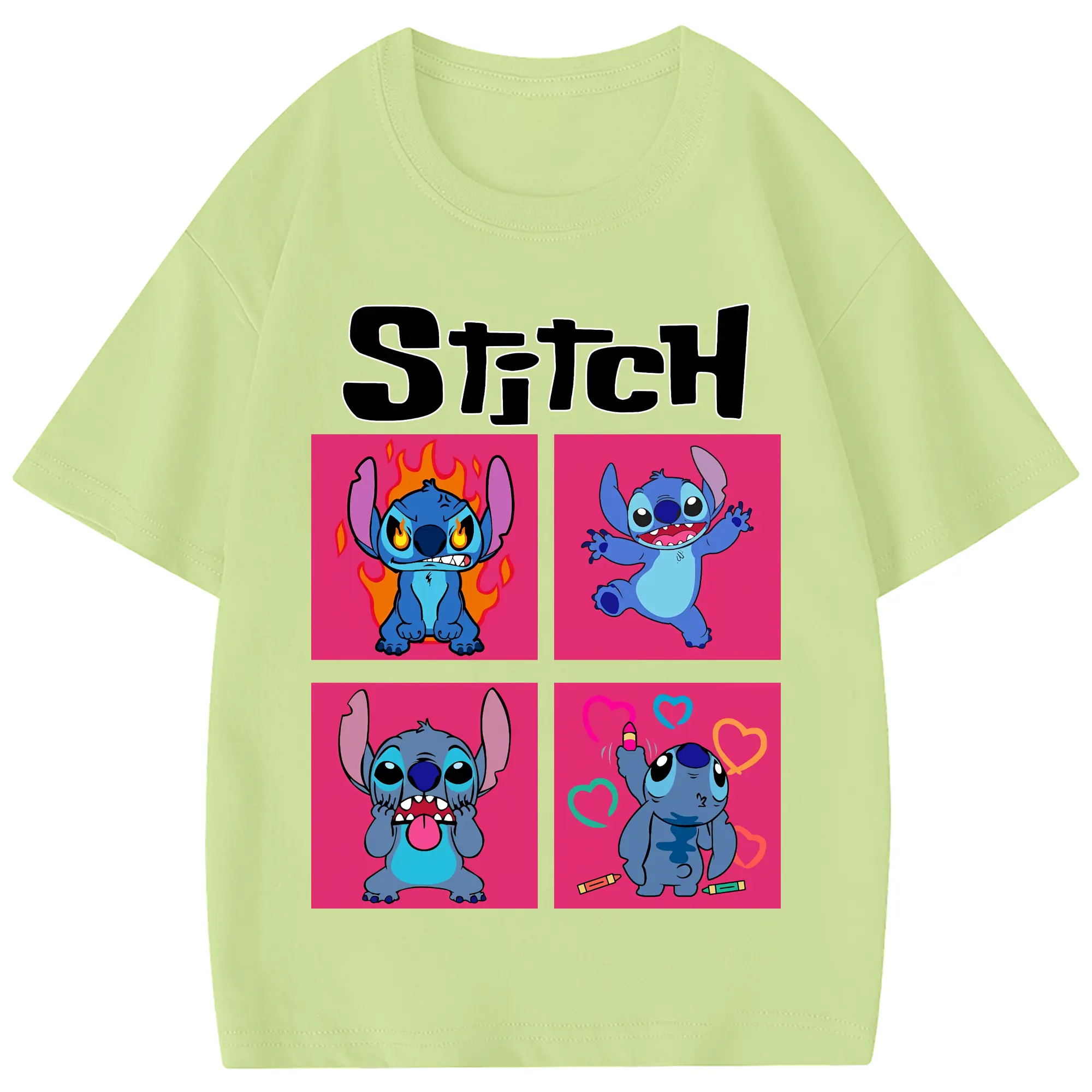 リロ&スティッチ グッズ スティッチ - 綿100% 半袖Tシャツ ・ フロントプリント ・ 快適 通気性 ・ 日常使い 散歩 スポーツ用