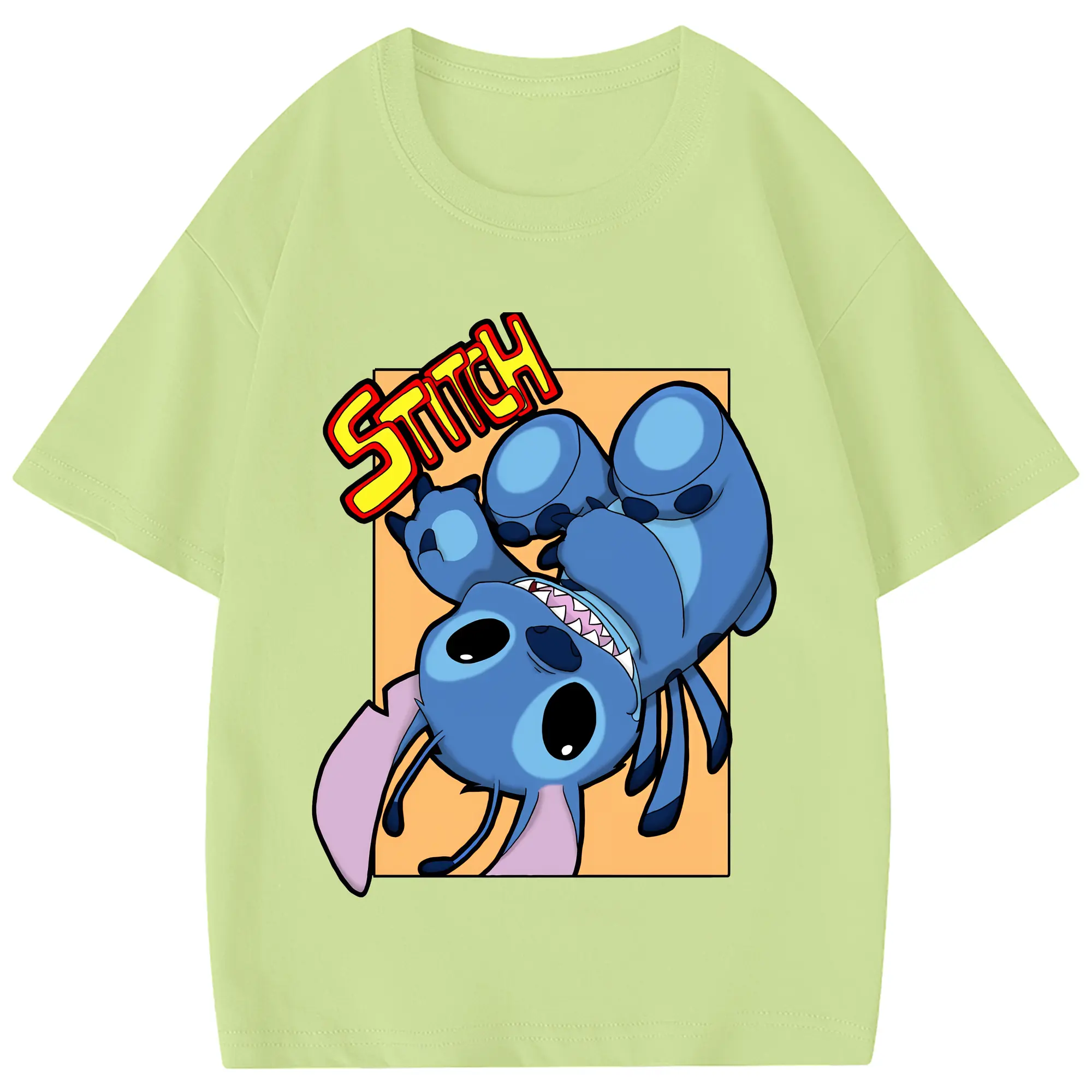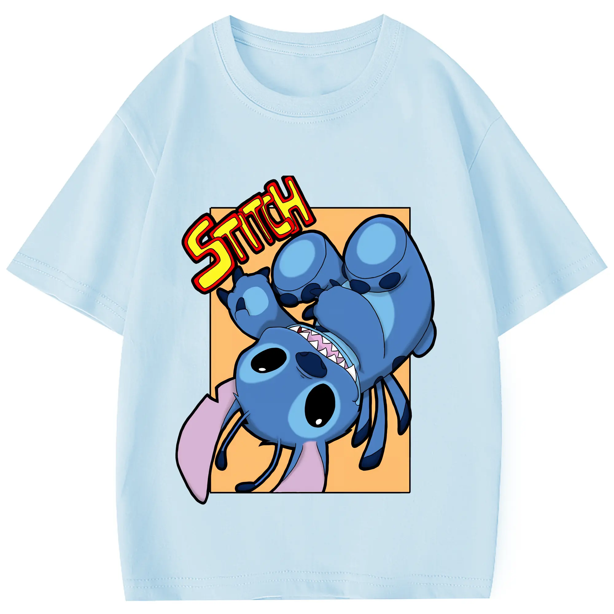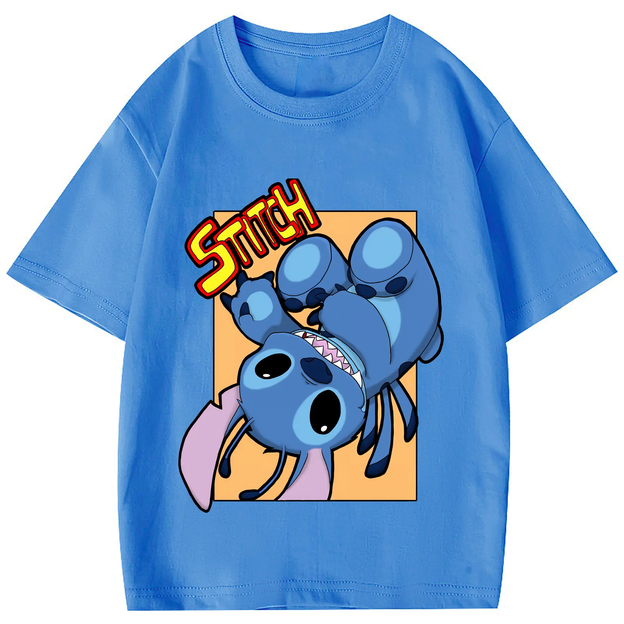リロ&スティッチ グッズ スティッチ - 綿100% 半袖Tシャツ ・ フロントプリント ・ 快適 通気性 ・ 日常使い 散歩 スポーツ用