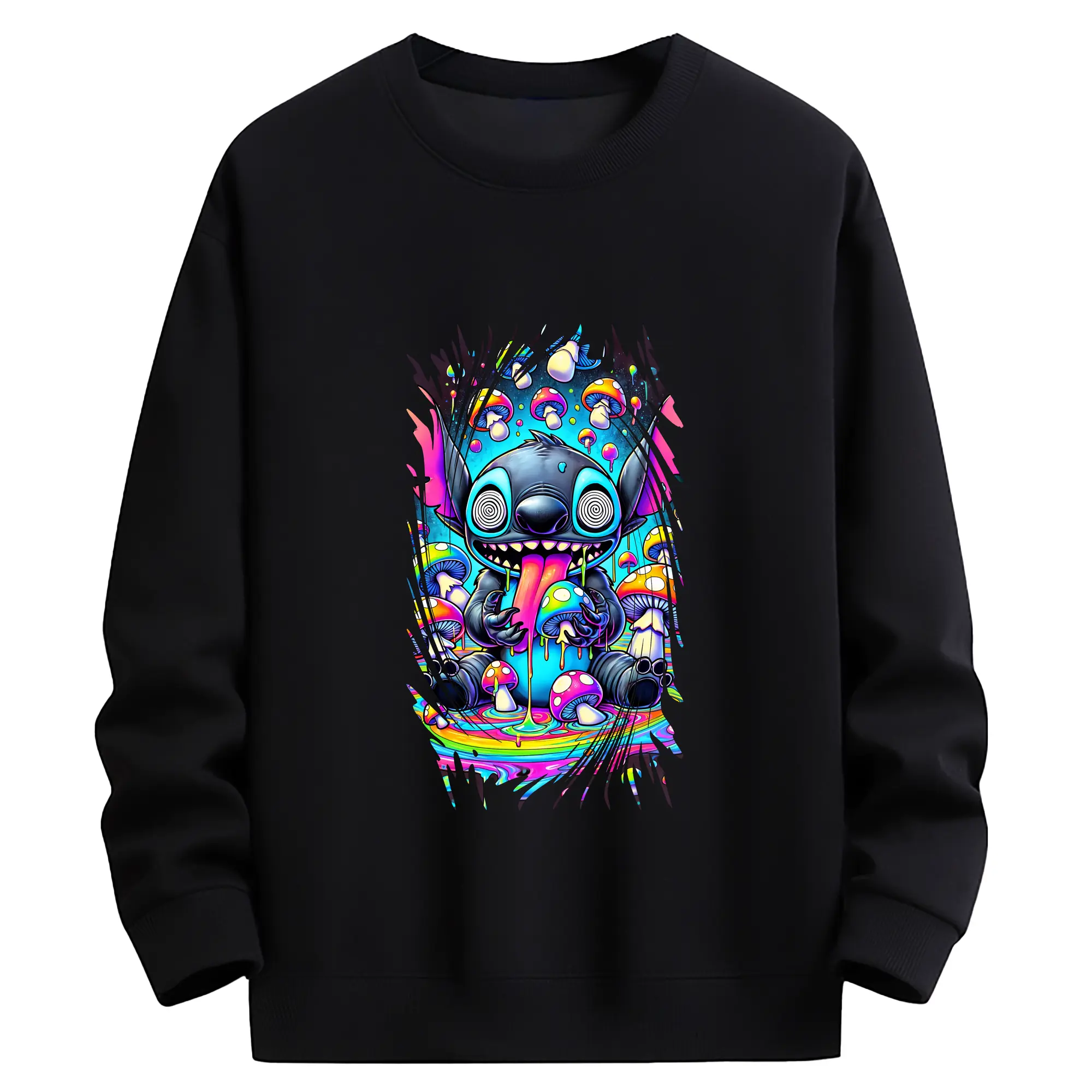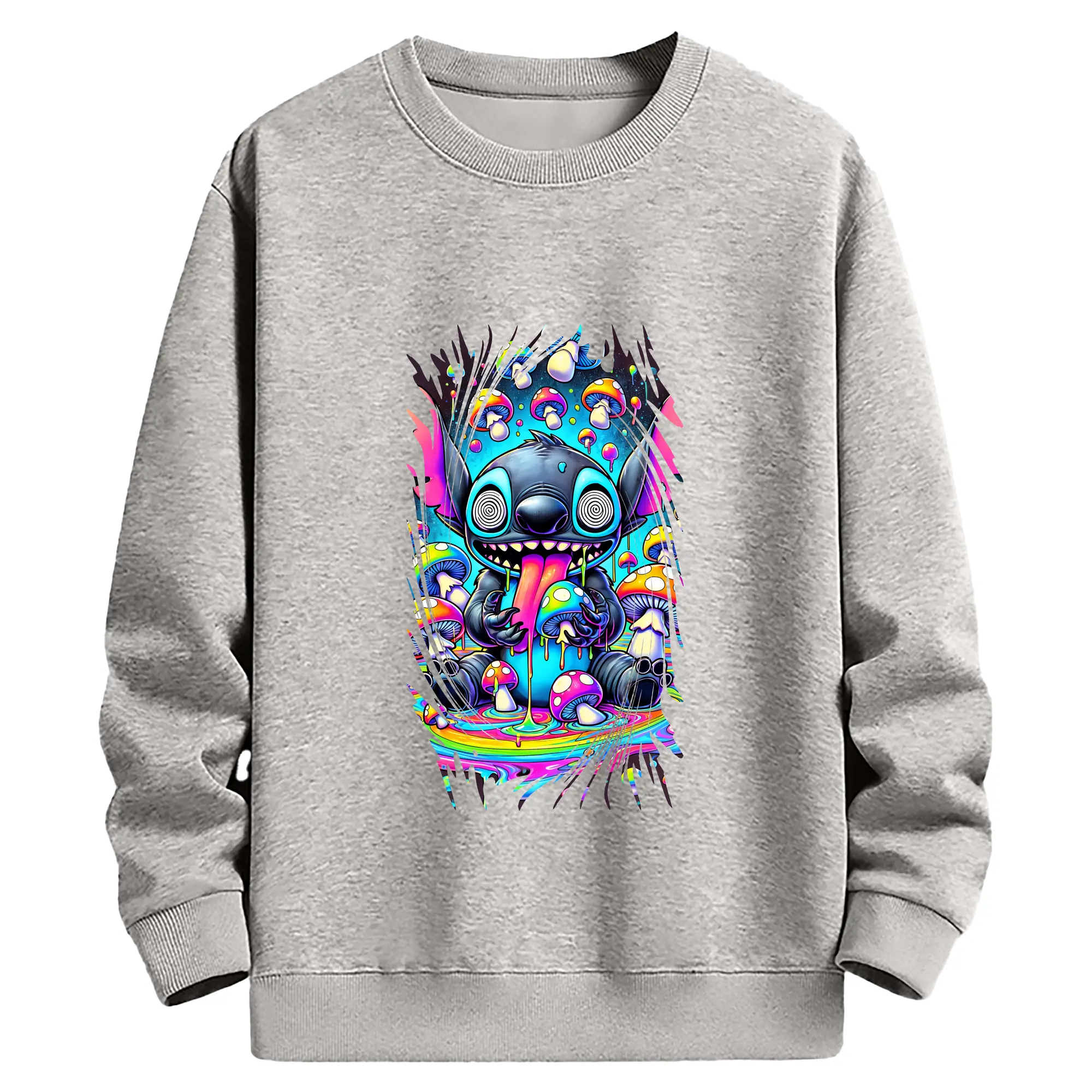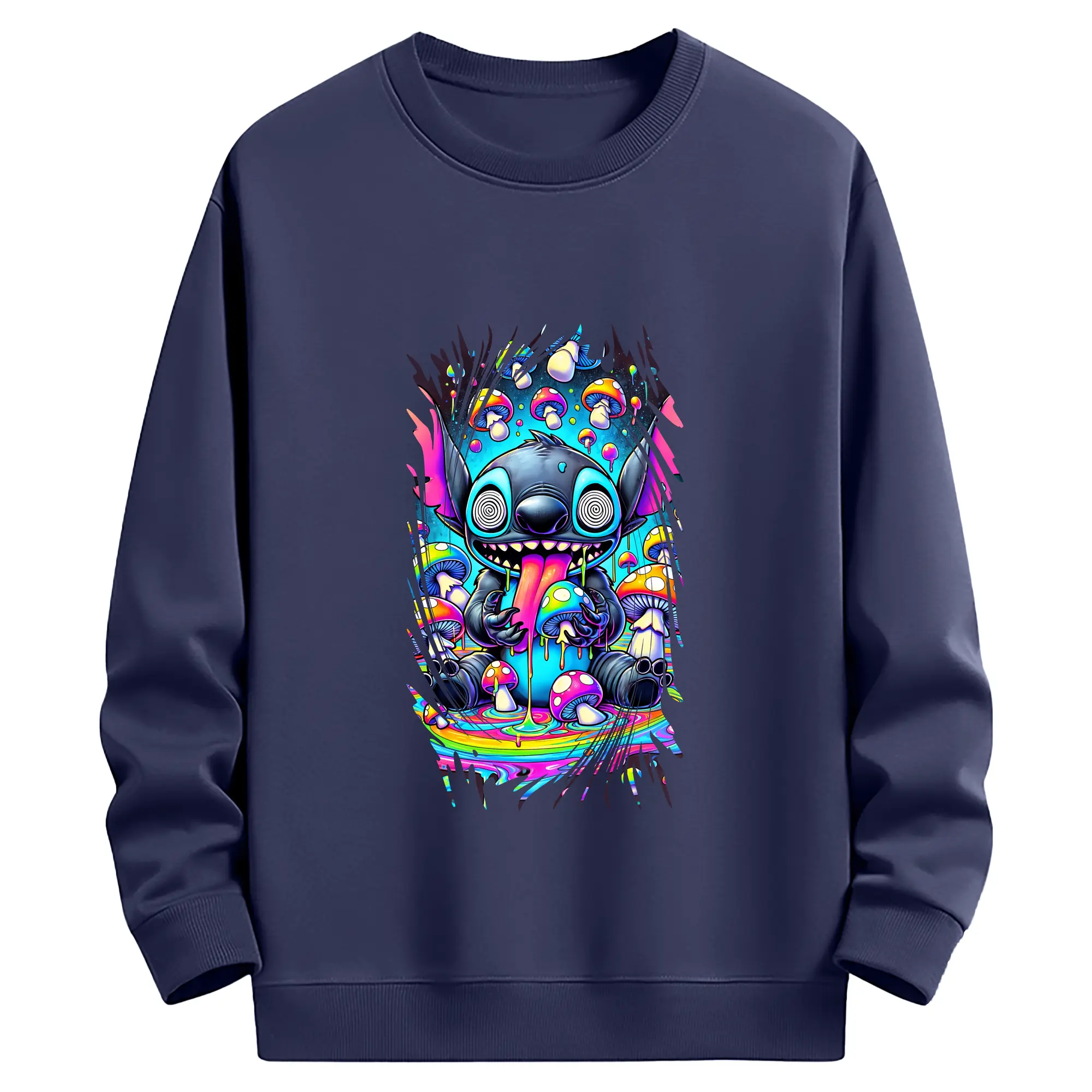 リロ&スティッチ グッズ スティッチ - 薄手 クルーネック スウェット 裏毛260g · ポリエステル 春秋向け カジュアル 男女兼用 · トレーナー デイリー スポーツ 散歩に最適