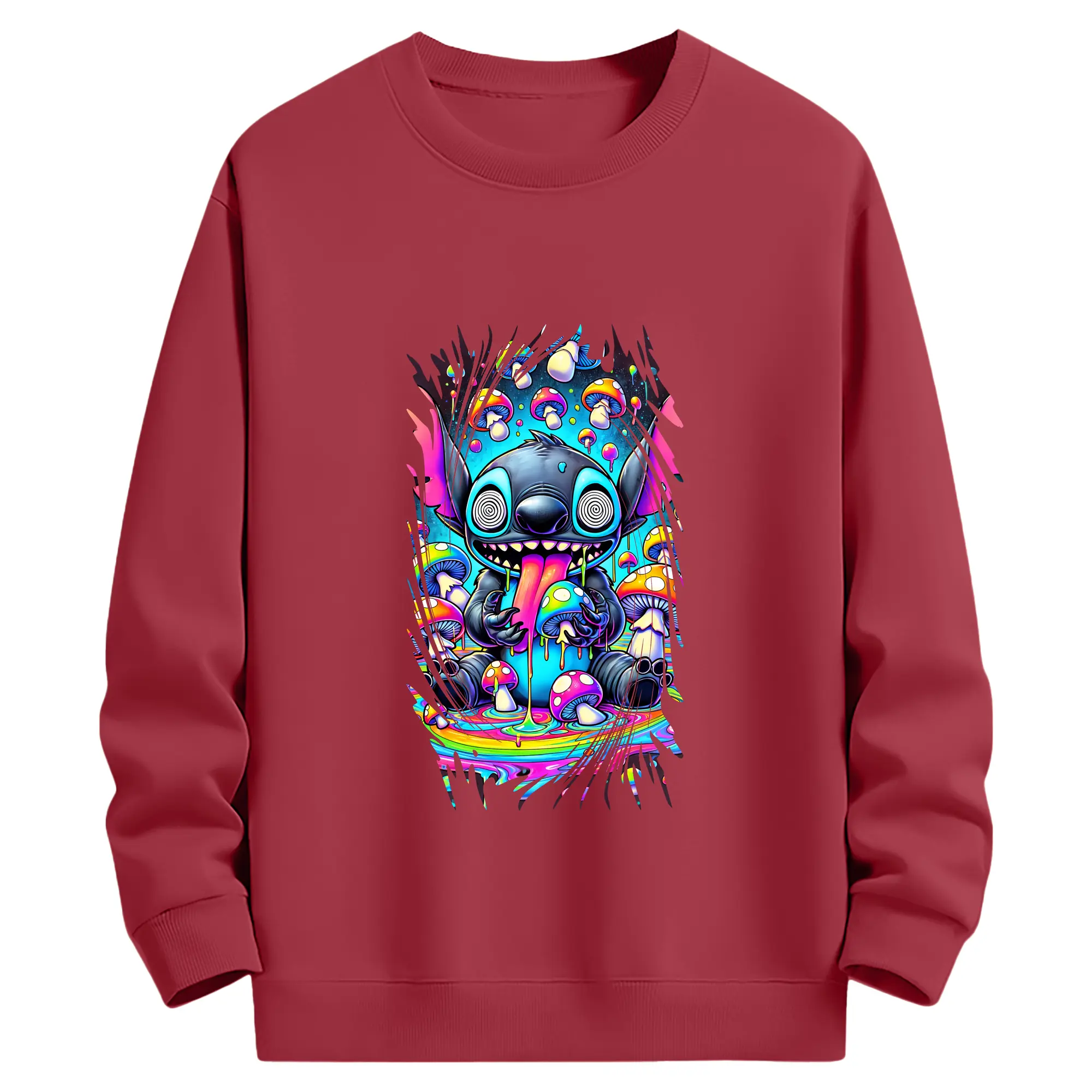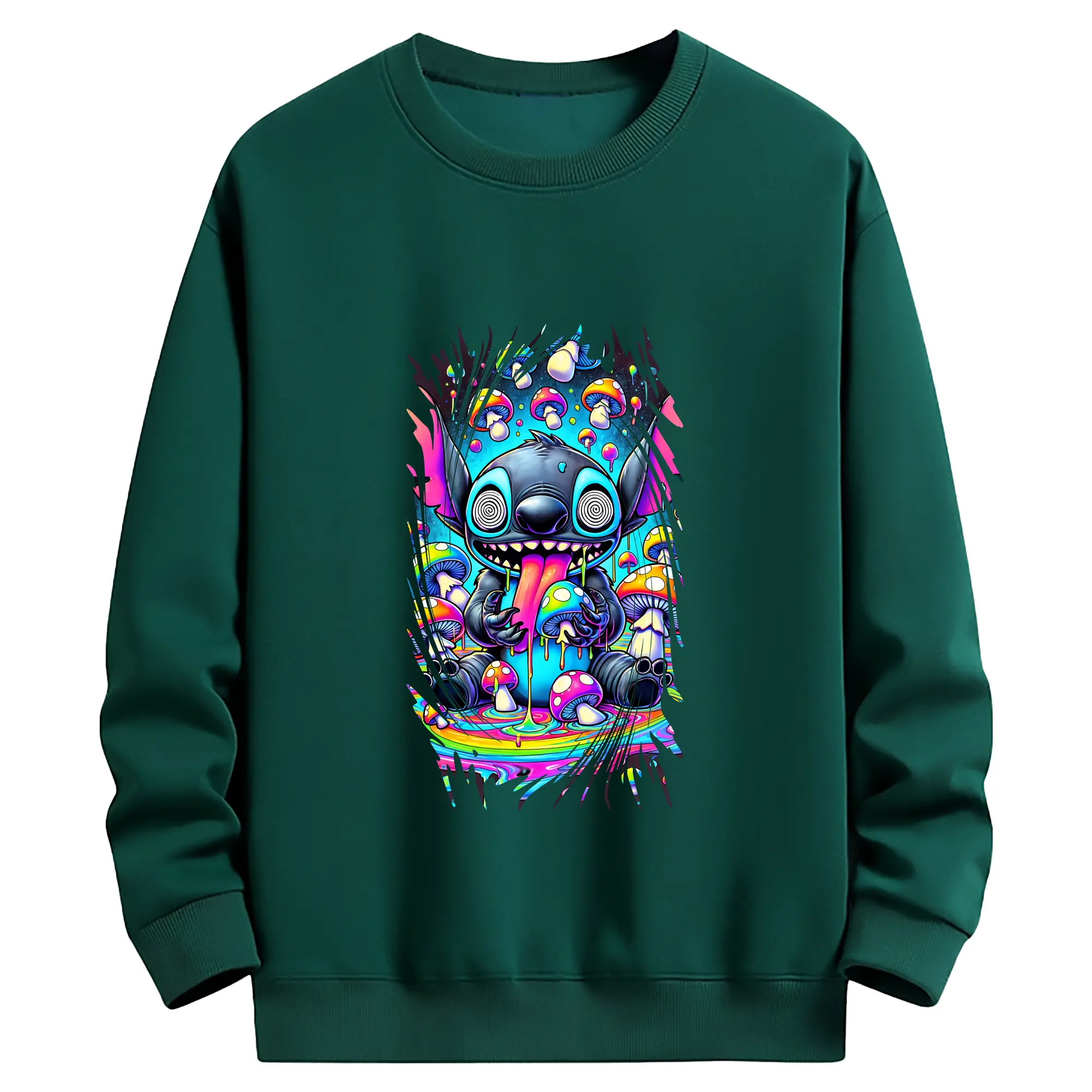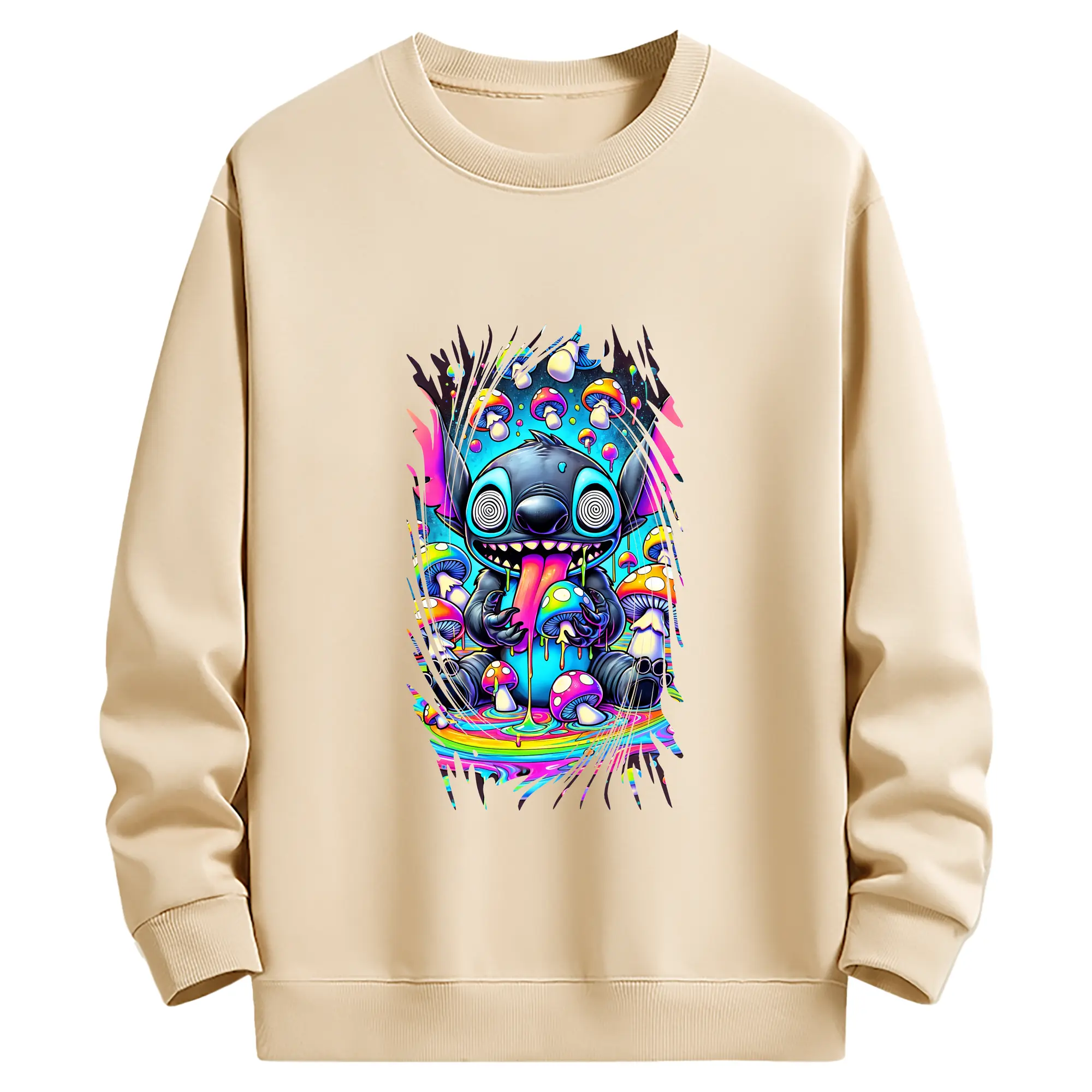 リロ&スティッチ グッズ スティッチ - 薄手 クルーネック スウェット 裏毛260g · ポリエステル 春秋向け カジュアル 男女兼用 · トレーナー デイリー スポーツ 散歩に最適