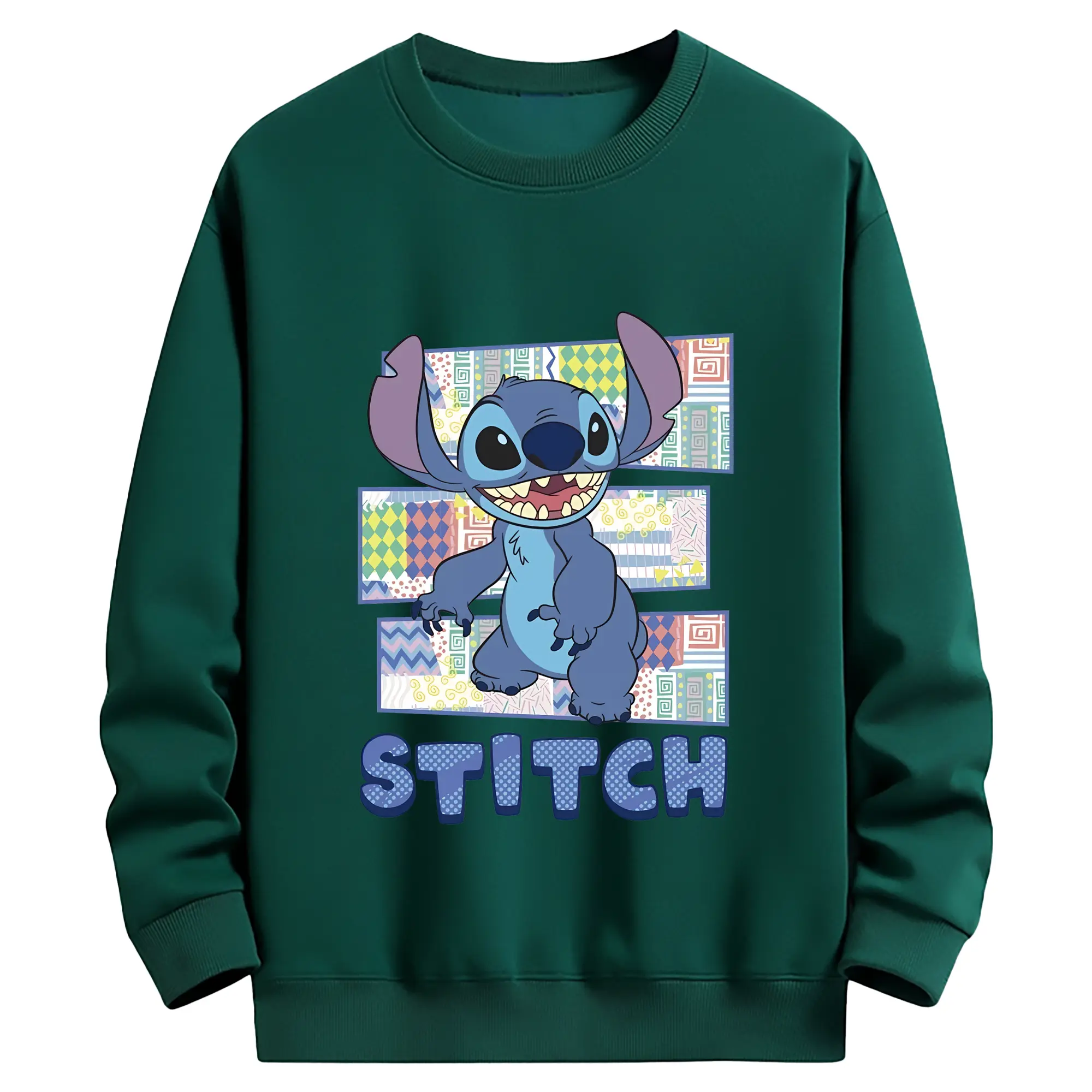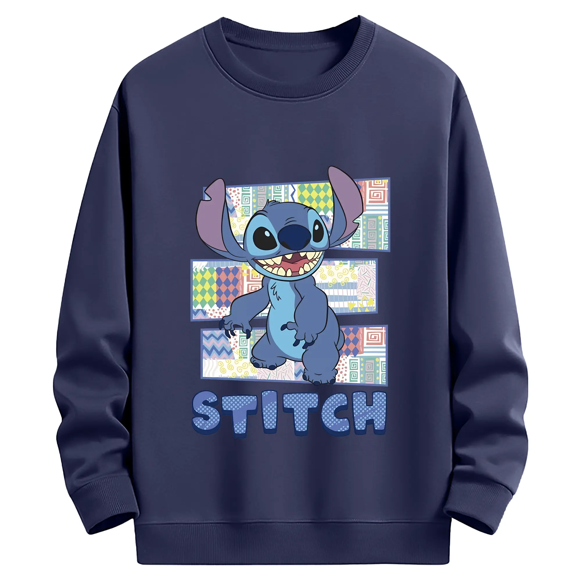 リロ&スティッチ グッズ スティッチ - 薄手 クルーネック スウェット 裏毛260g · ポリエステル 春秋向け カジュアル 男女兼用 · トレーナー デイリー スポーツ 散歩に最適