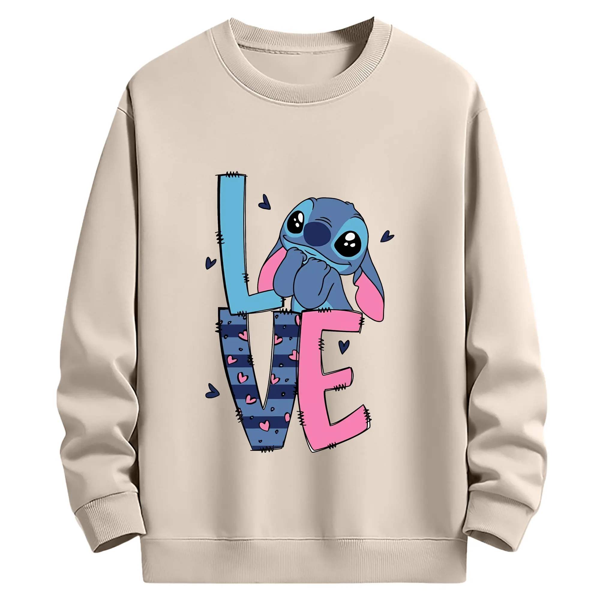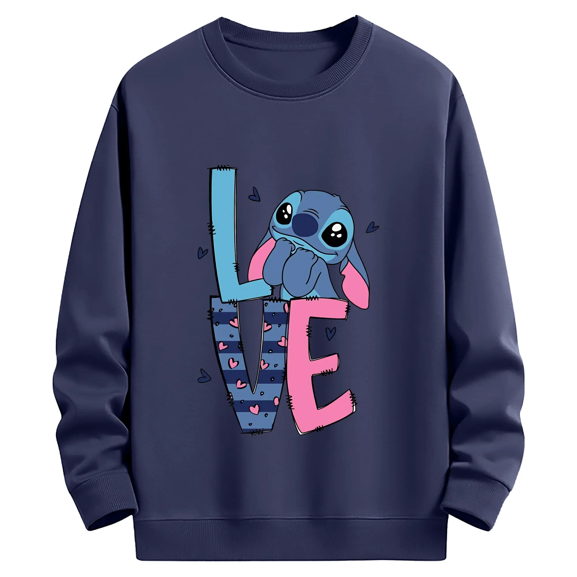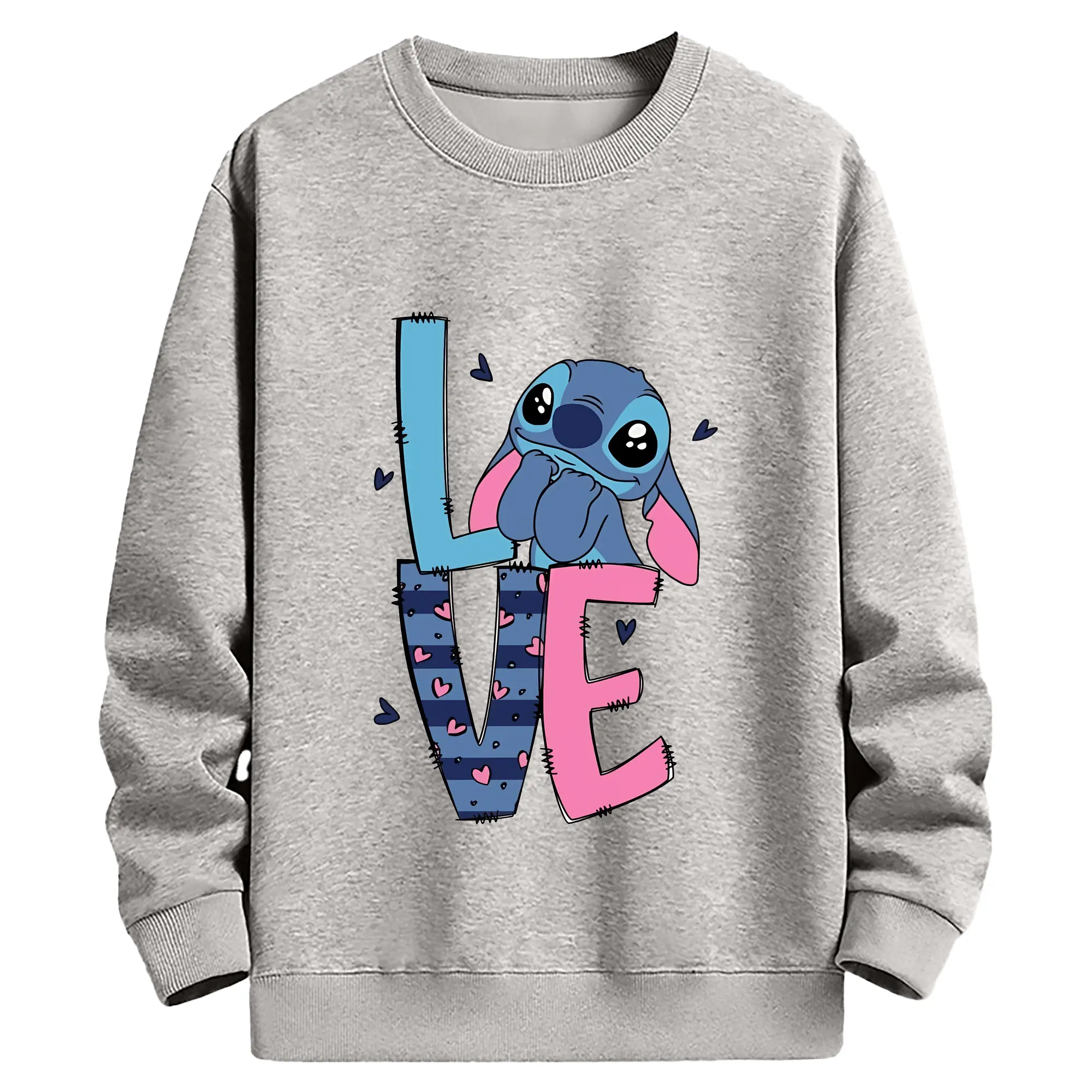 リロ&スティッチ グッズ スティッチ - 薄手 クルーネック スウェット 裏毛260g · ポリエステル 春秋向け カジュアル 男女兼用 · トレーナー デイリー スポーツ 散歩に最適