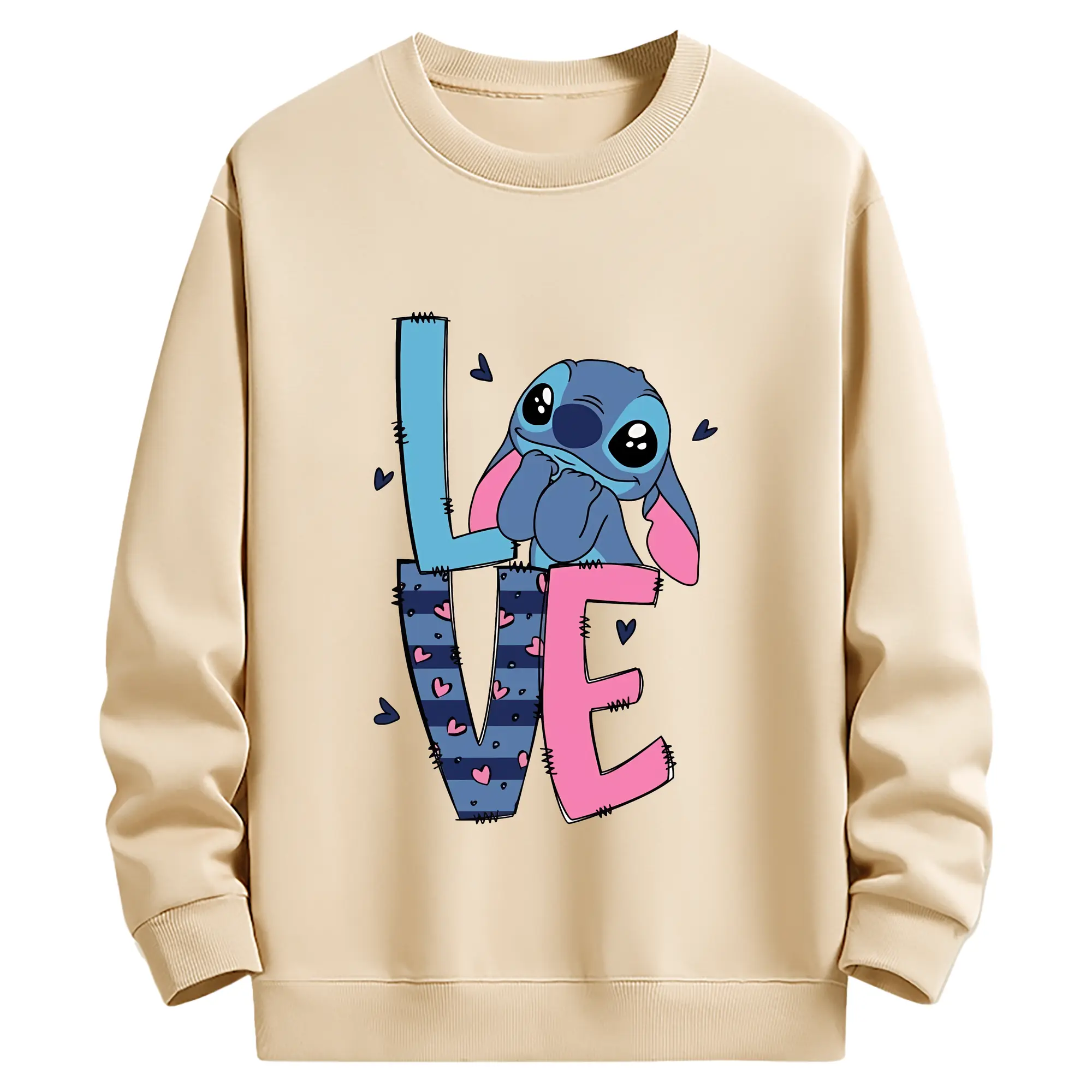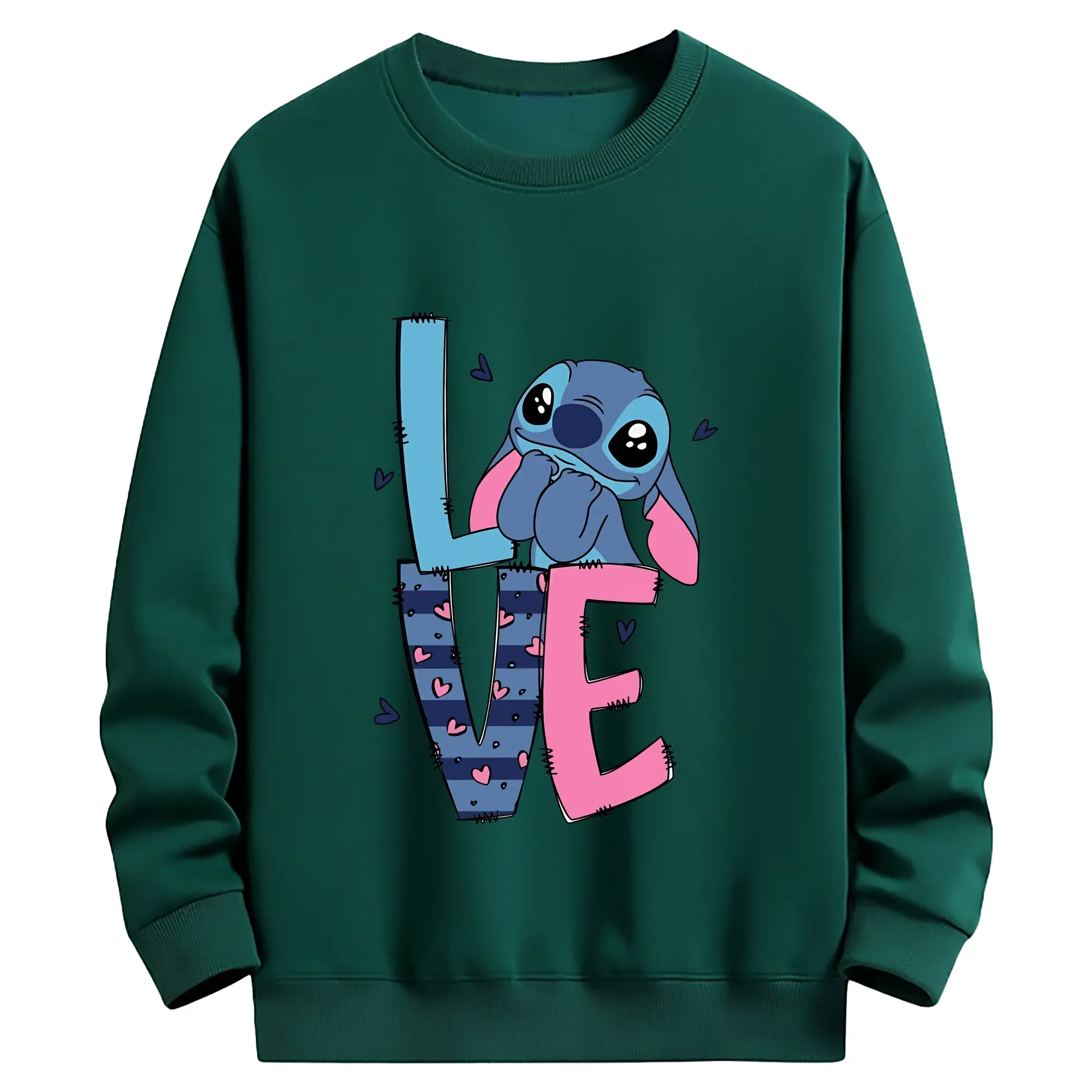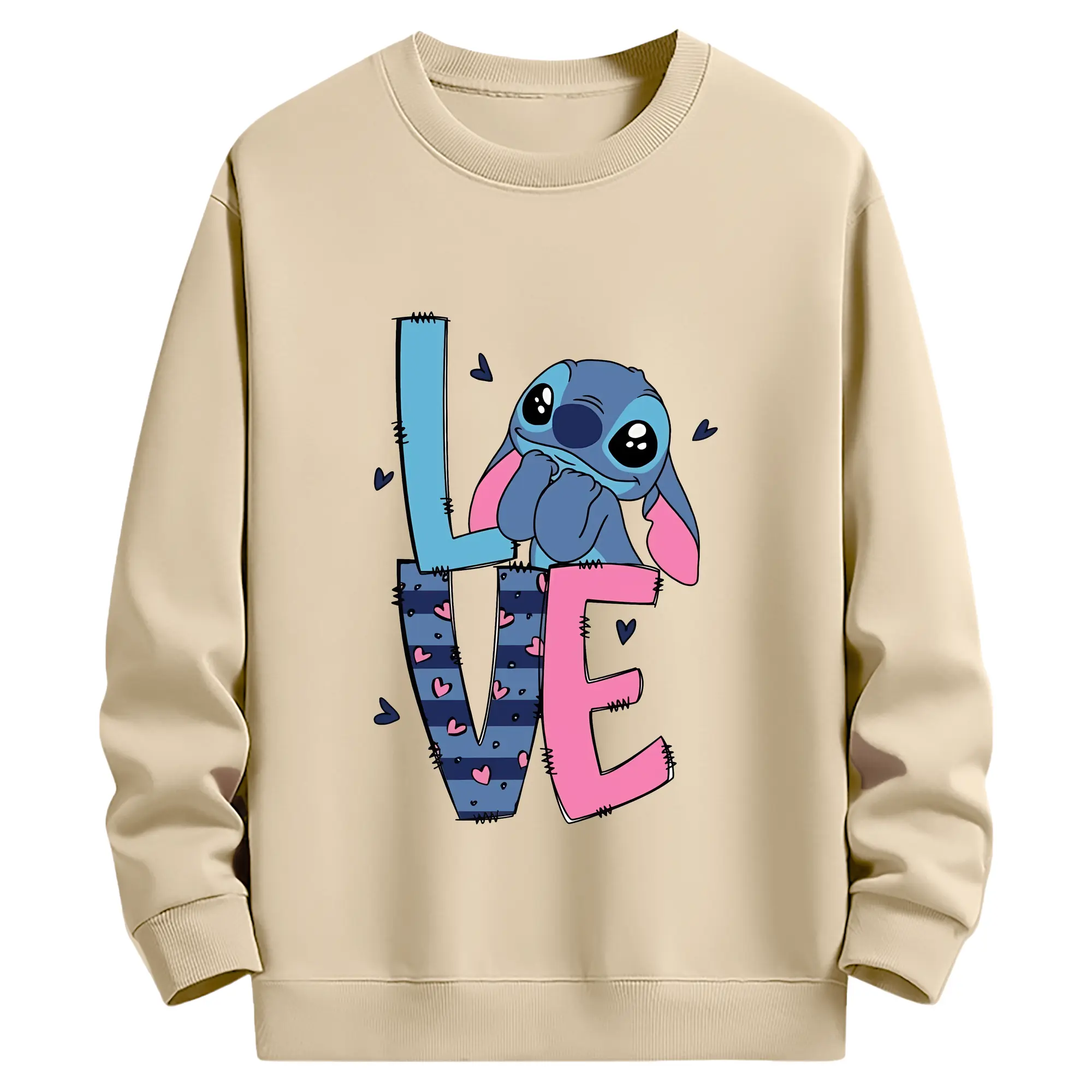リロ&スティッチ グッズ スティッチ - 薄手 クルーネック スウェット 裏毛260g · ポリエステル 春秋向け カジュアル 男女兼用 · トレーナー デイリー スポーツ 散歩に最適
