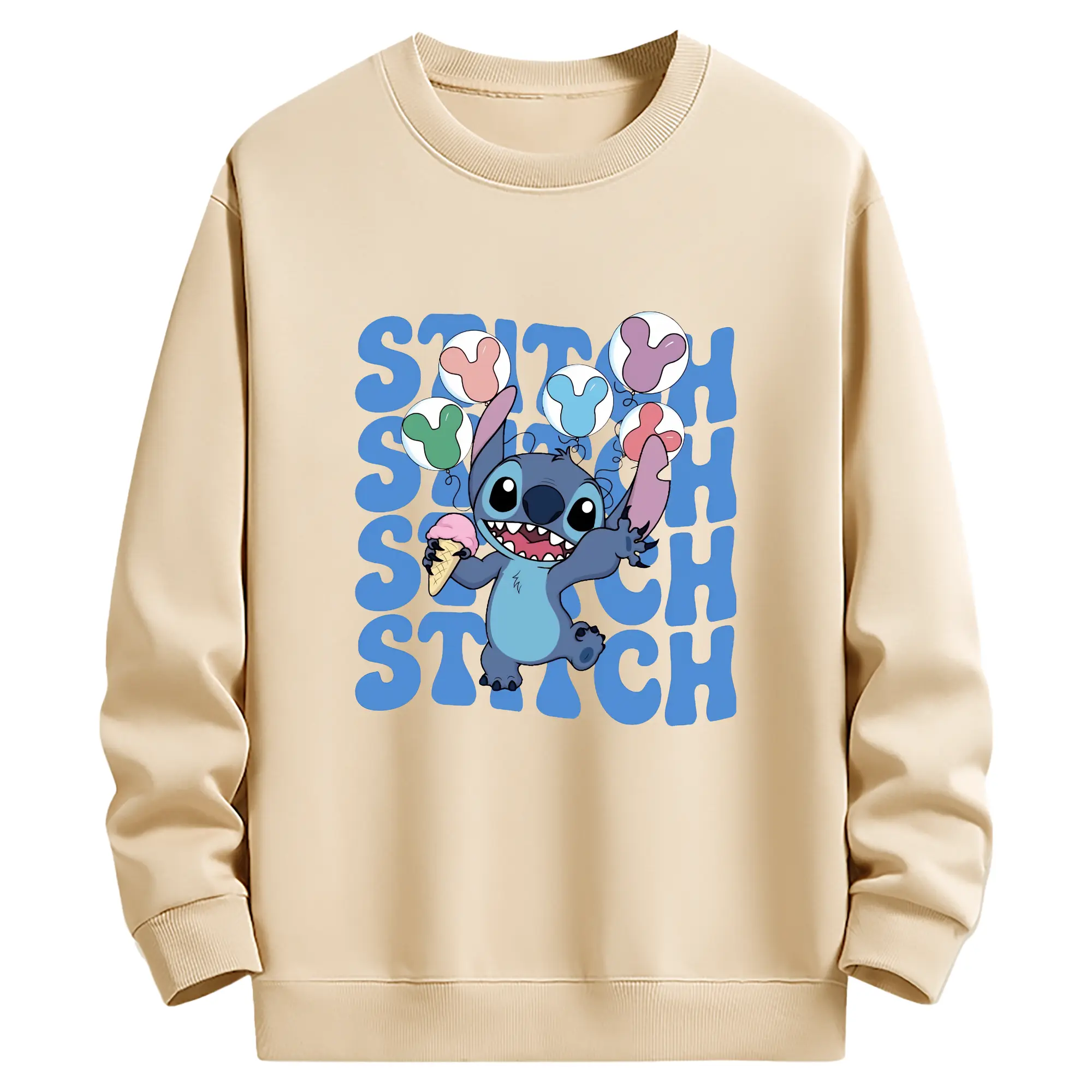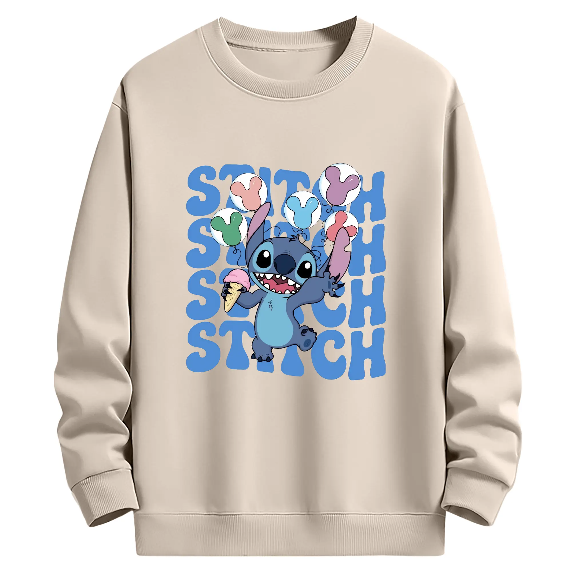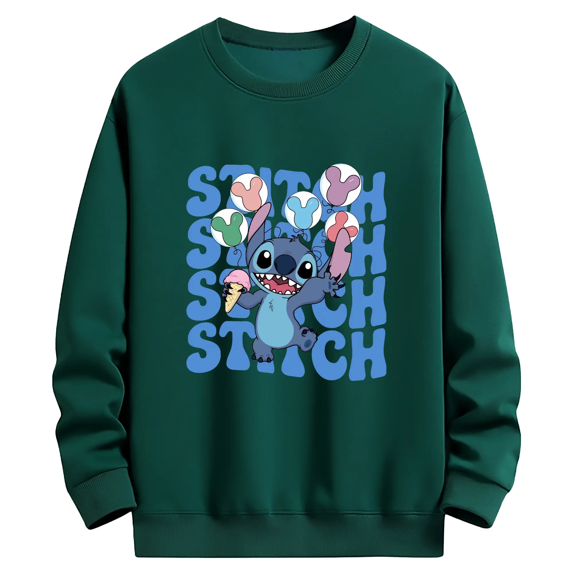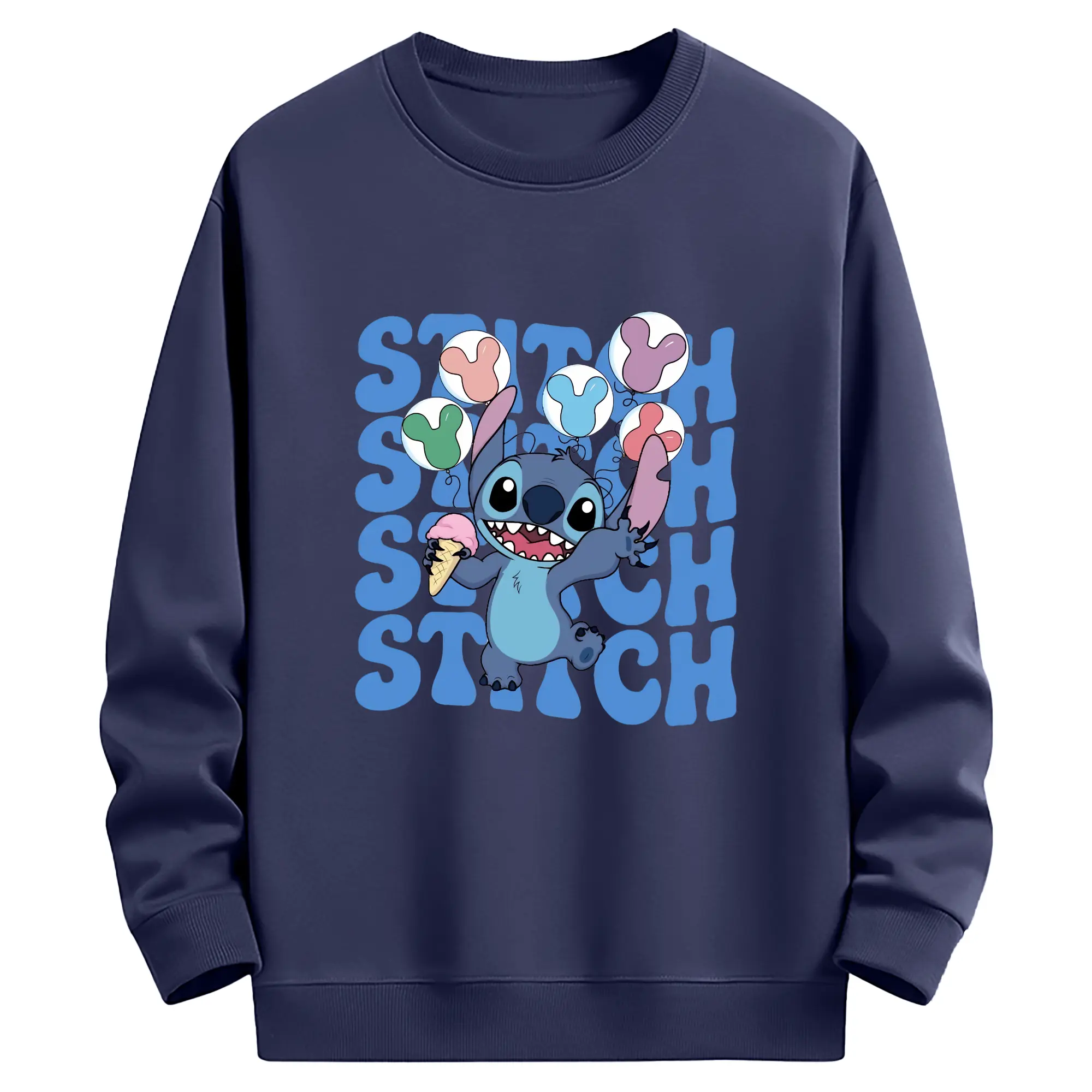 リロ&スティッチ グッズ スティッチ - 薄手 クルーネック スウェット 裏毛260g · ポリエステル 春秋向け カジュアル 男女兼用 · トレーナー デイリー スポーツ 散歩に最適