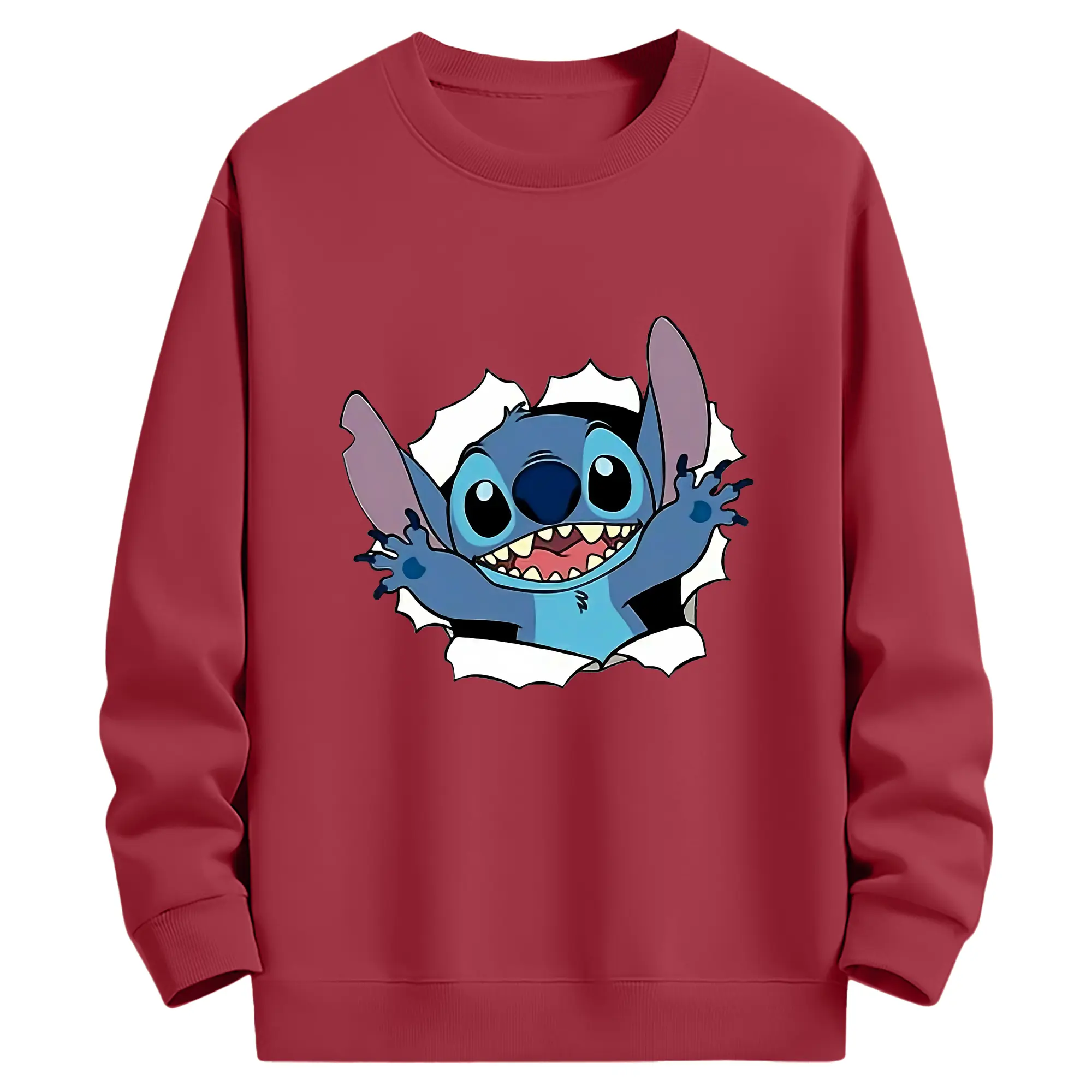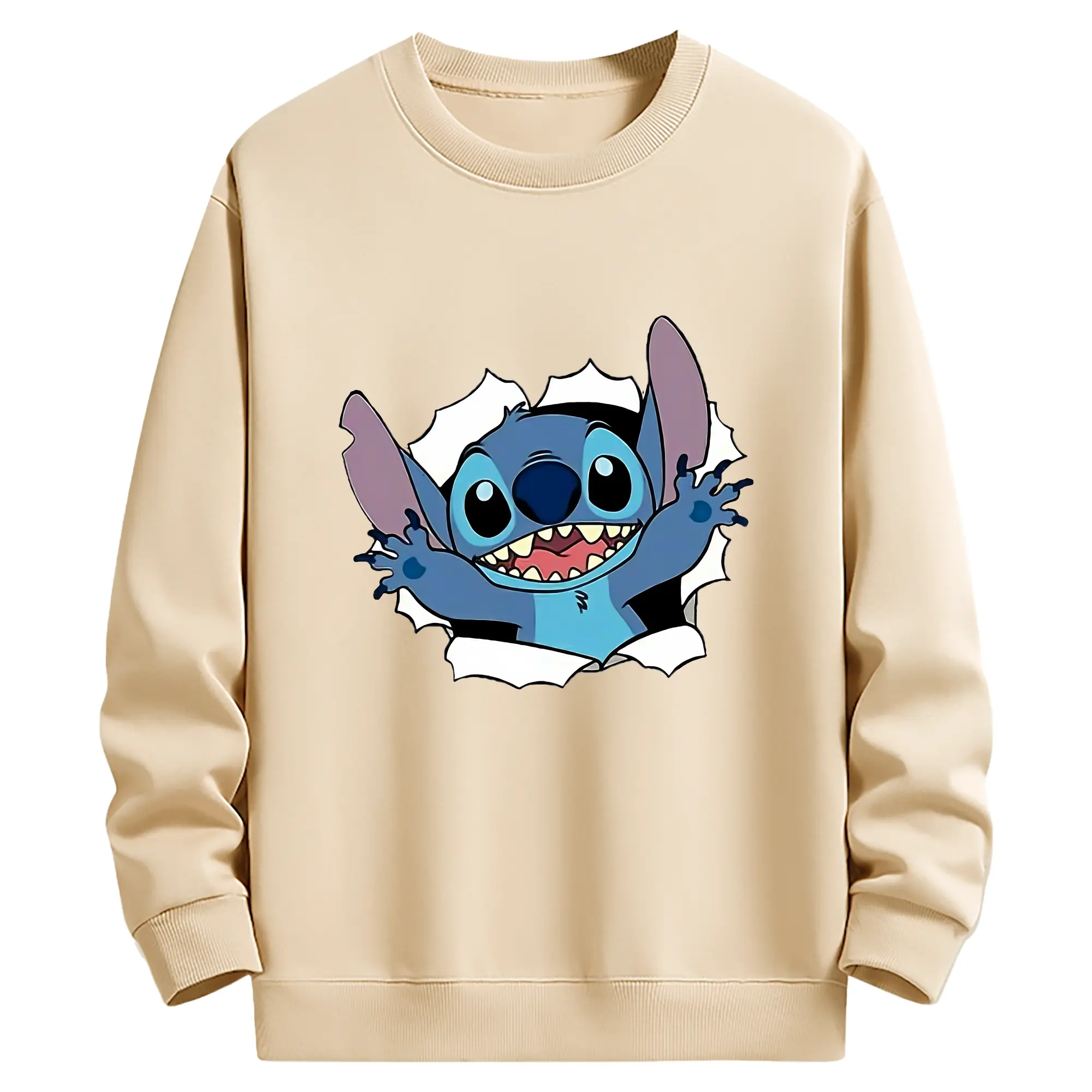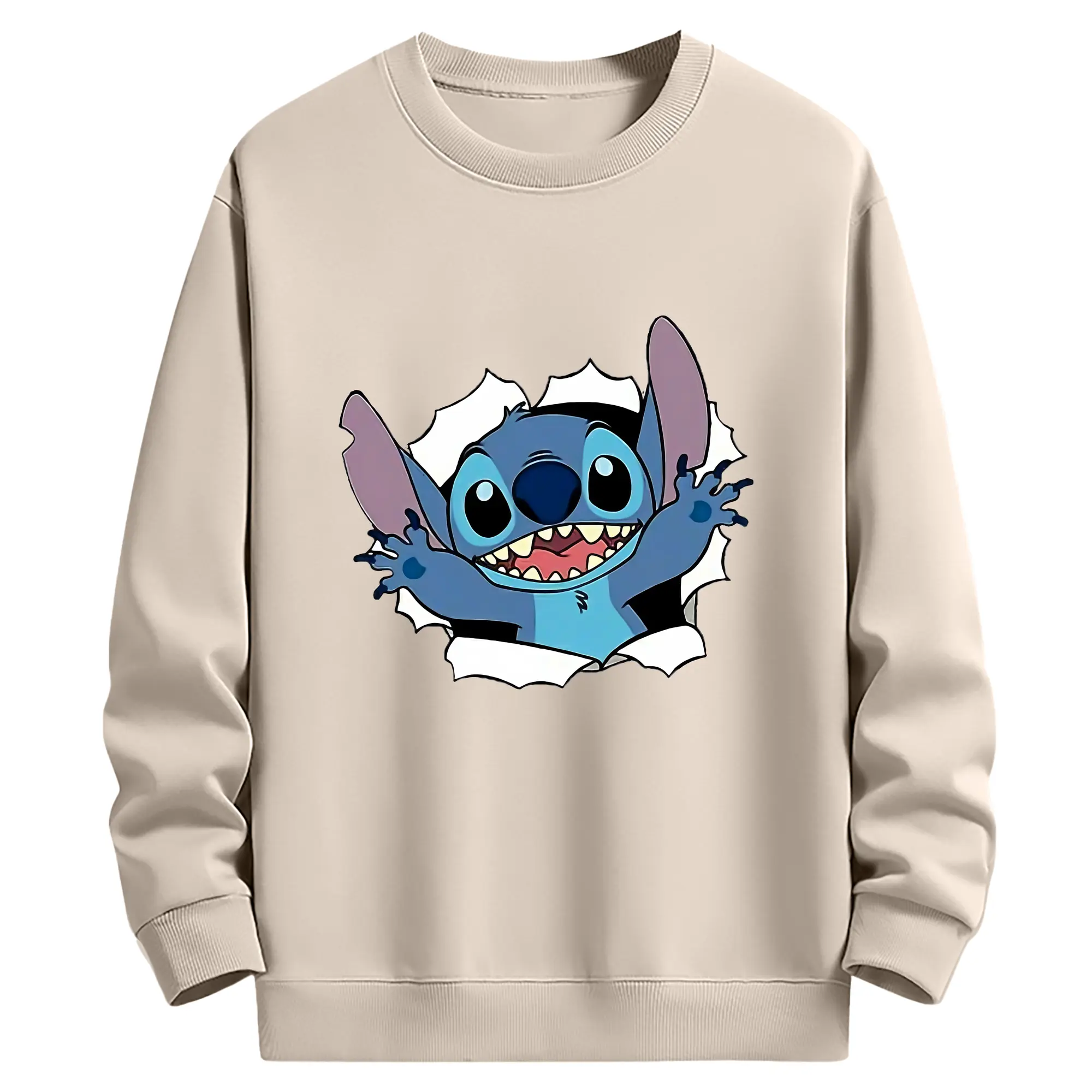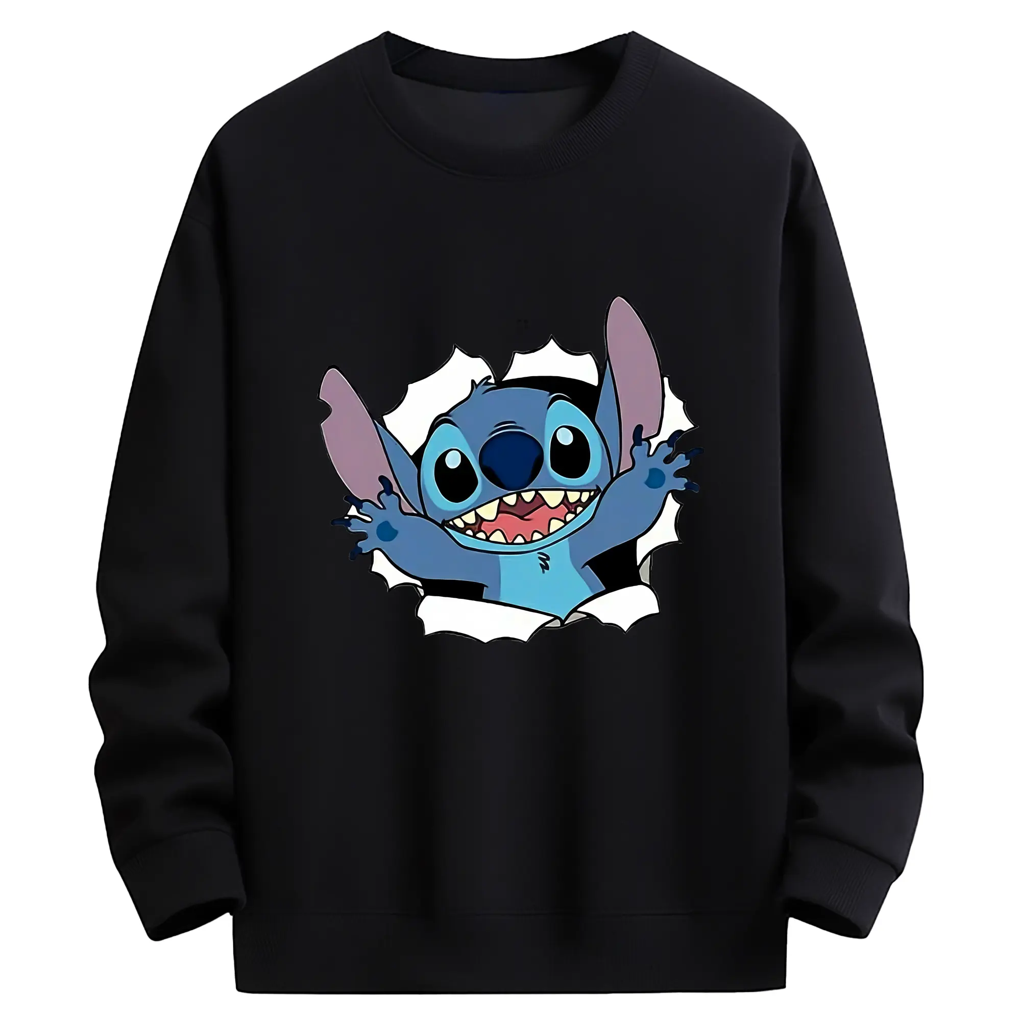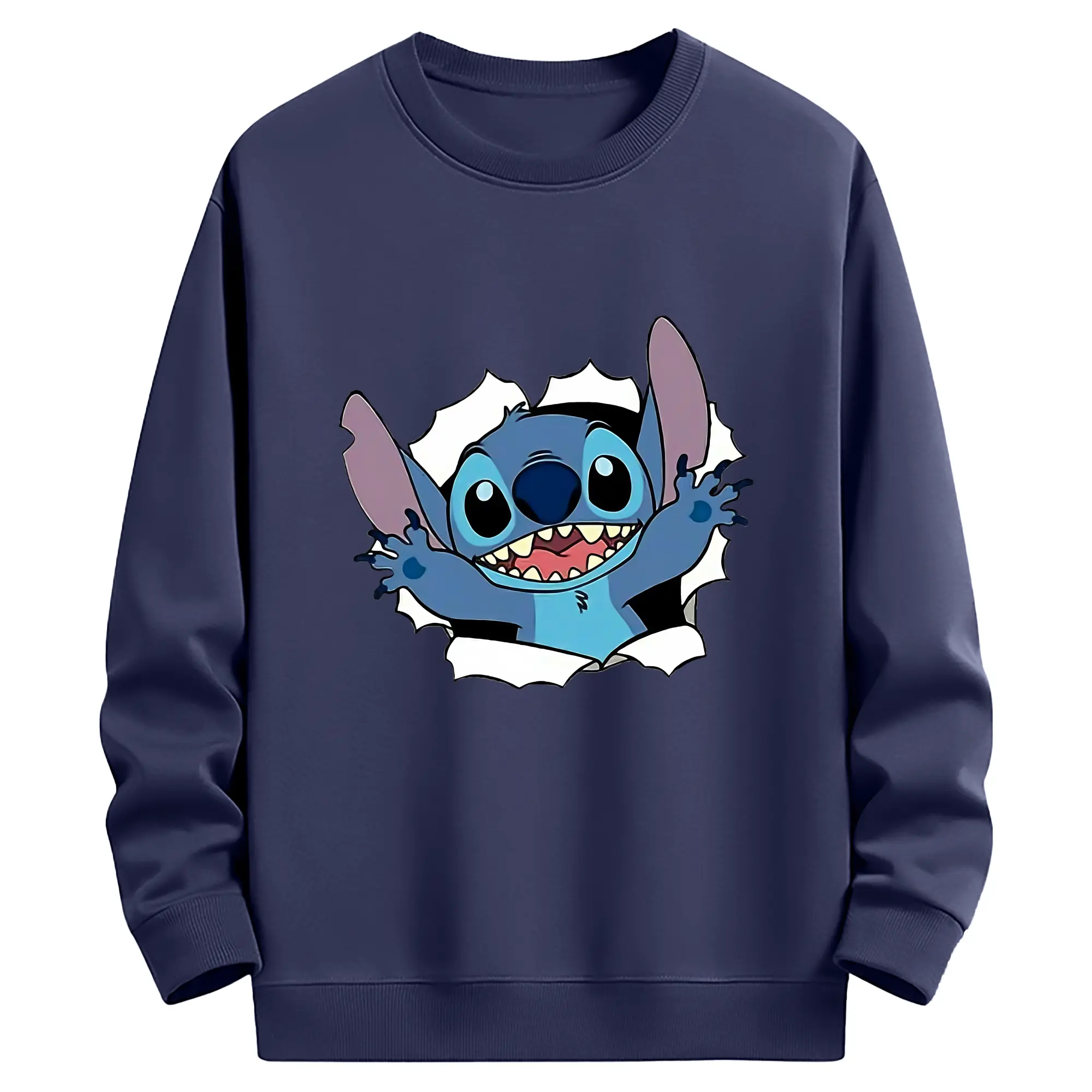 リロ&スティッチ グッズ スティッチ - 薄手 クルーネック スウェット 裏毛260g · ポリエステル 春秋向け カジュアル 男女兼用 · トレーナー デイリー スポーツ 散歩に最適