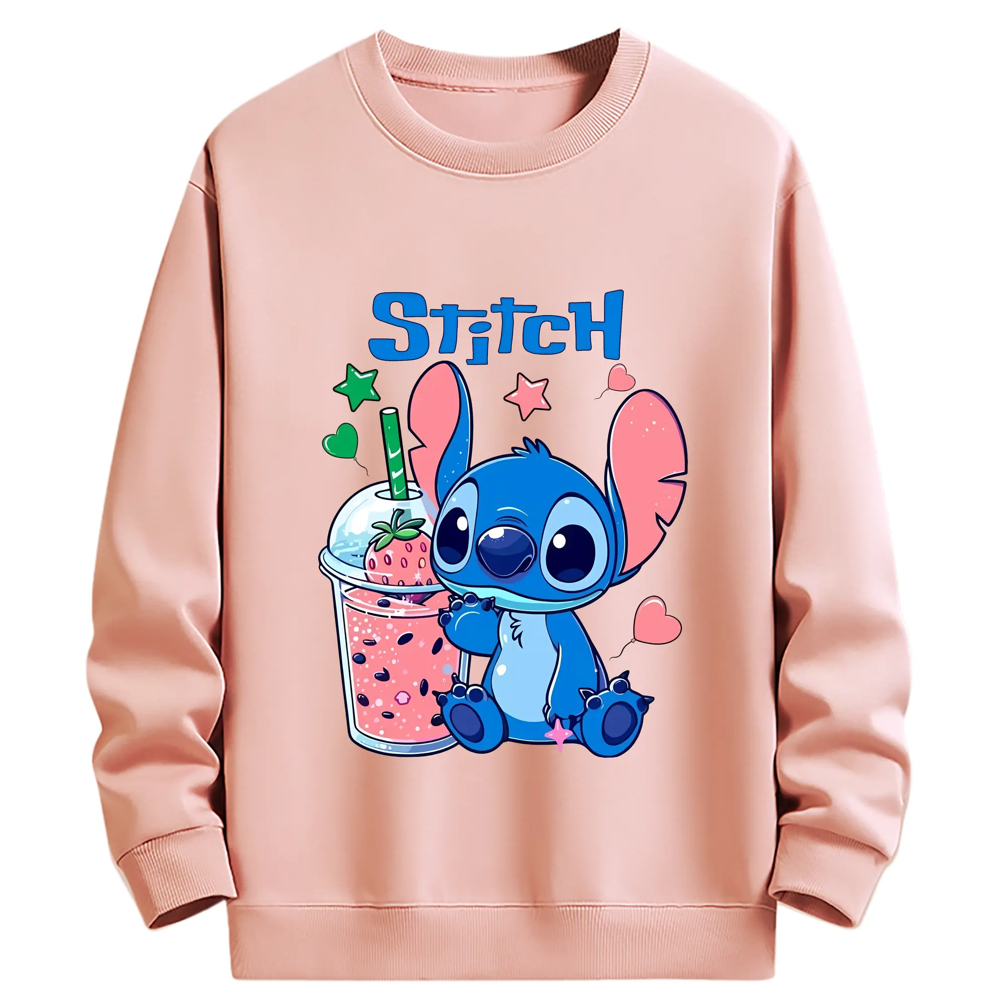 リロ&スティッチ グッズ スティッチ - 薄手 クルーネック スウェット 裏毛260g · ポリエステル 春秋向け カジュアル 男女兼用 · トレーナー デイリー スポーツ 散歩に最適