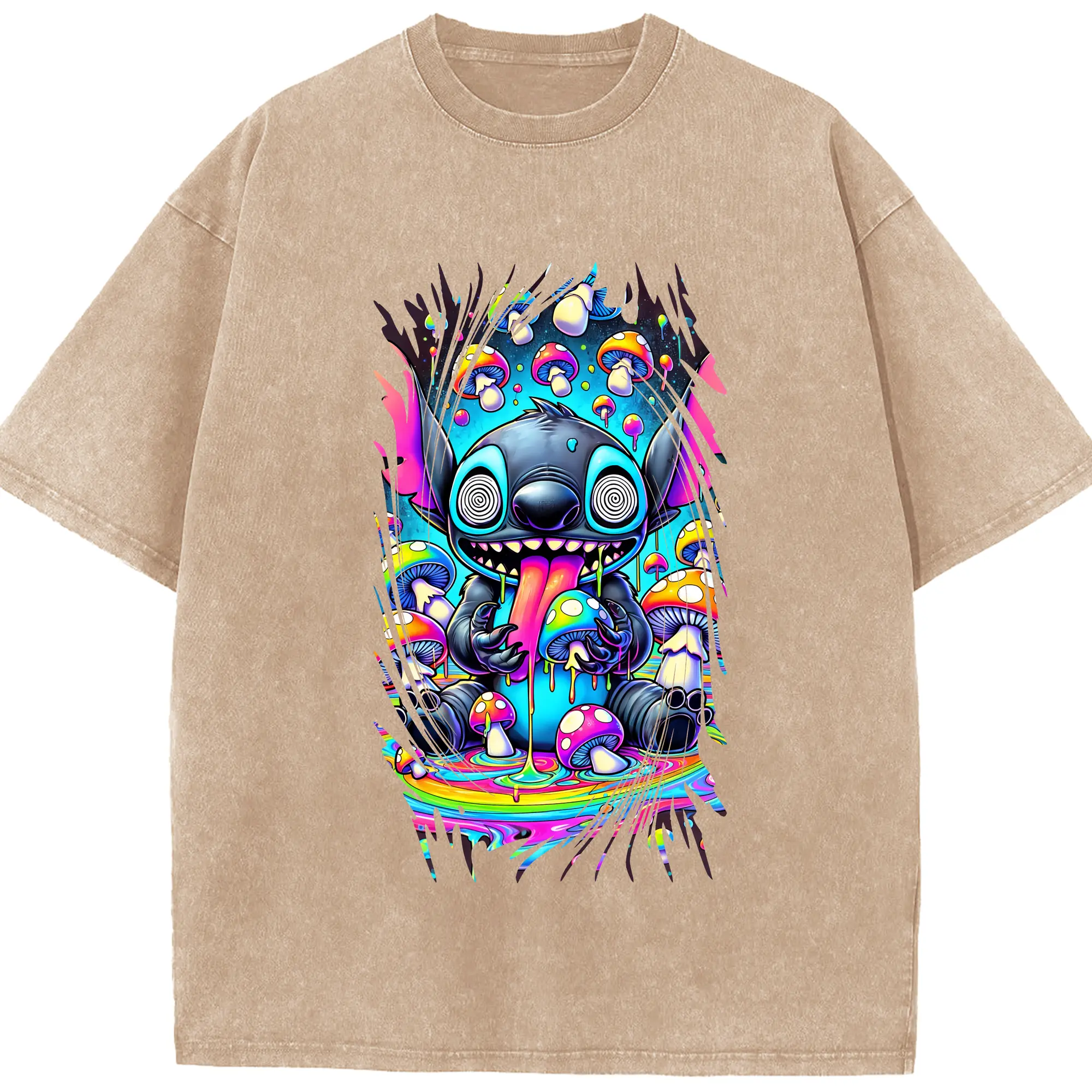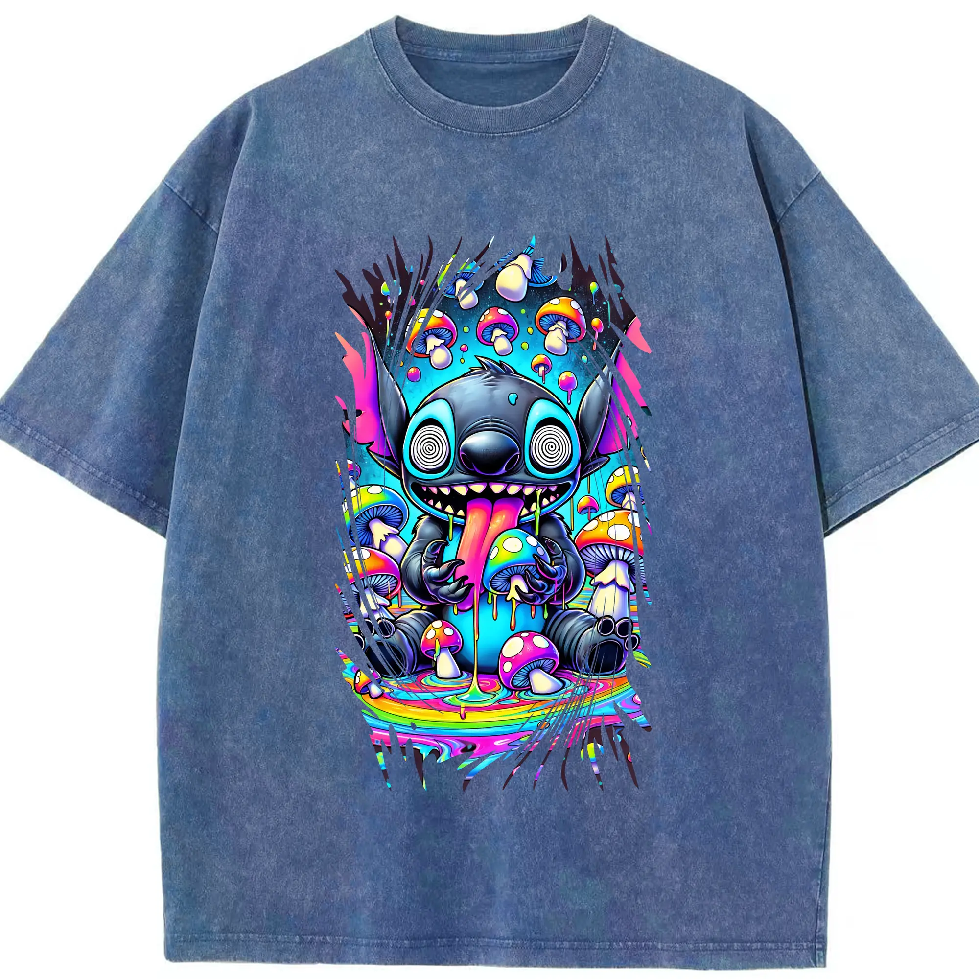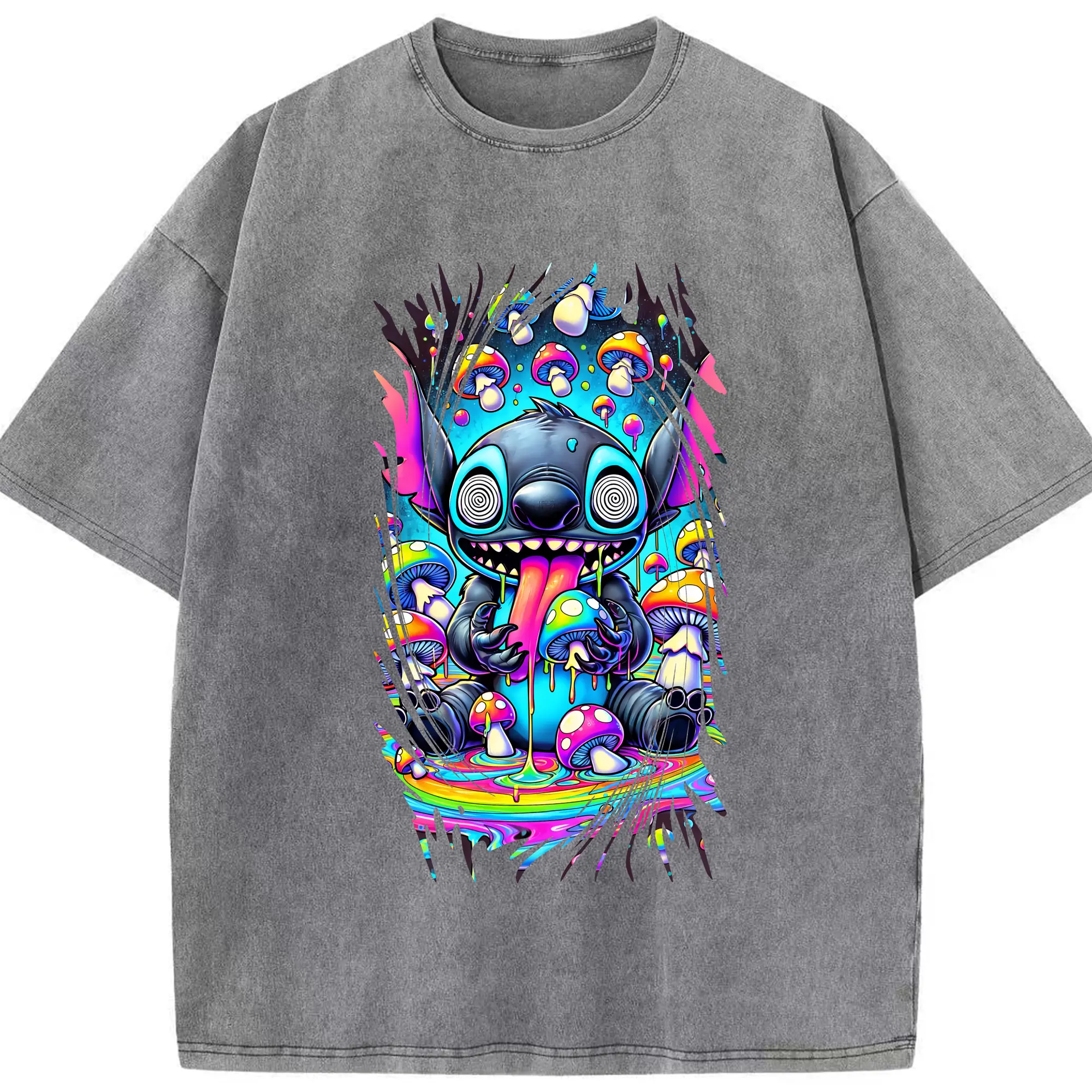 リロ&スティッチ グッズ スティッチ - 綿100% ヴィンテージ風 半袖Tシャツ ・ 背面プリント ・ 柔らか肌触り ・ 通気性 快適 ・ スポーツ カジュアル 外出用