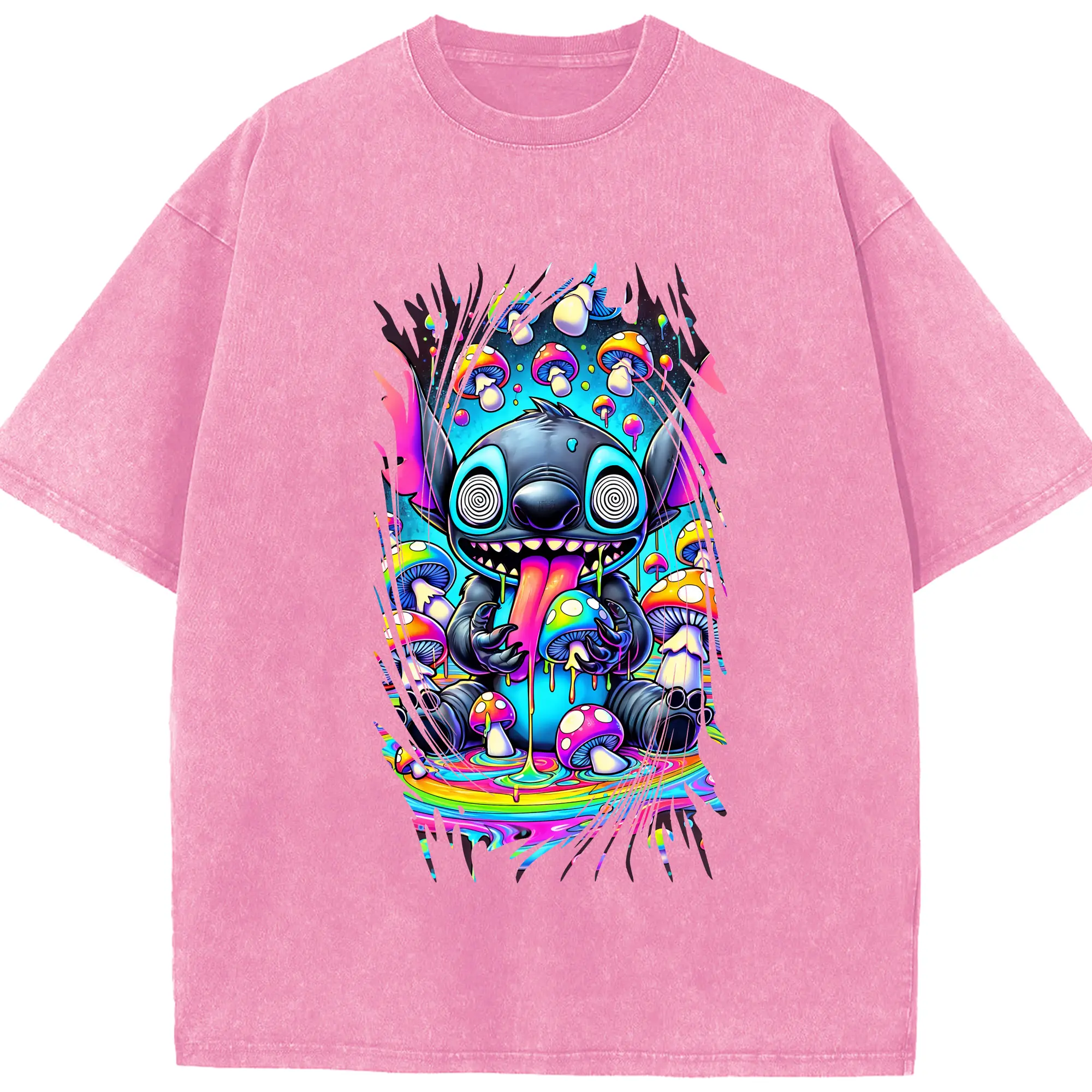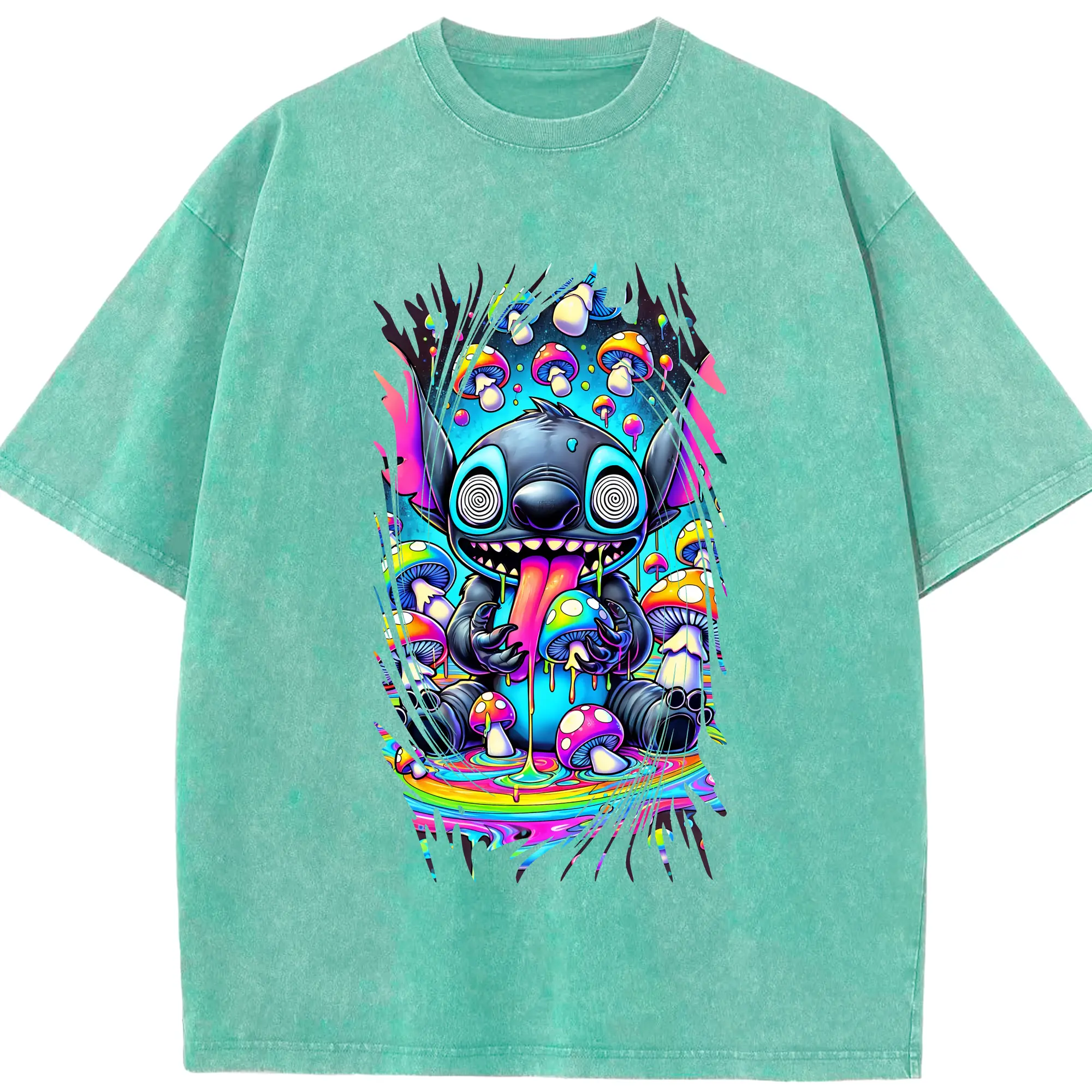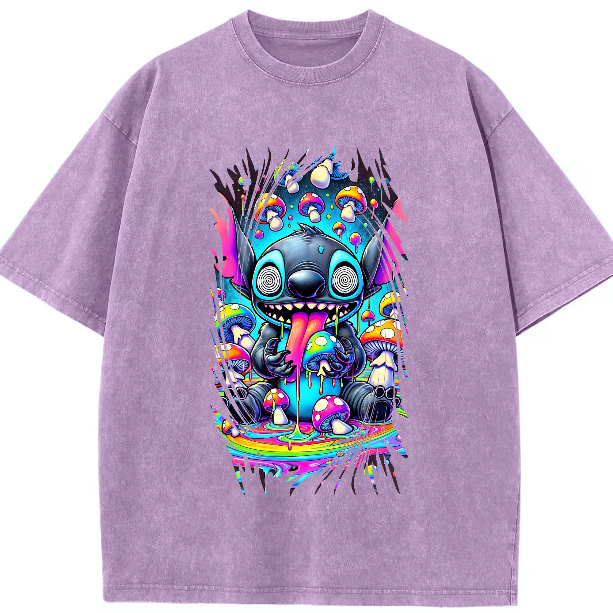 リロ&スティッチ グッズ スティッチ - 綿100% ヴィンテージ風 半袖Tシャツ ・ 背面プリント ・ 柔らか肌触り ・ 通気性 快適 ・ スポーツ カジュアル 外出用