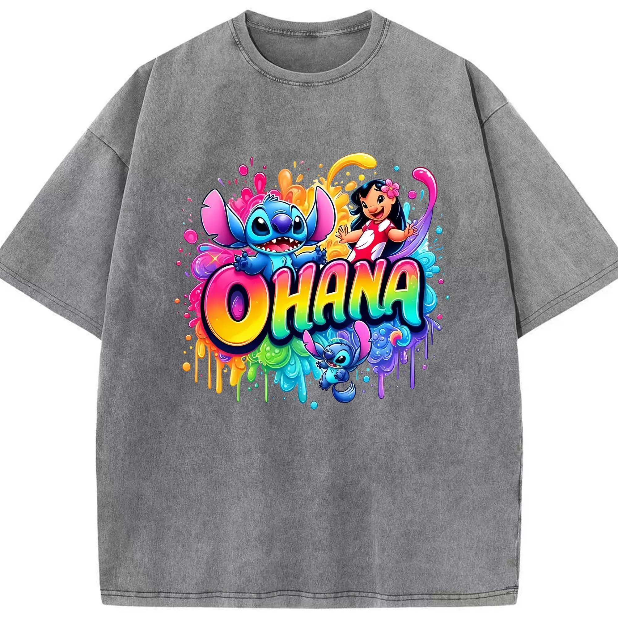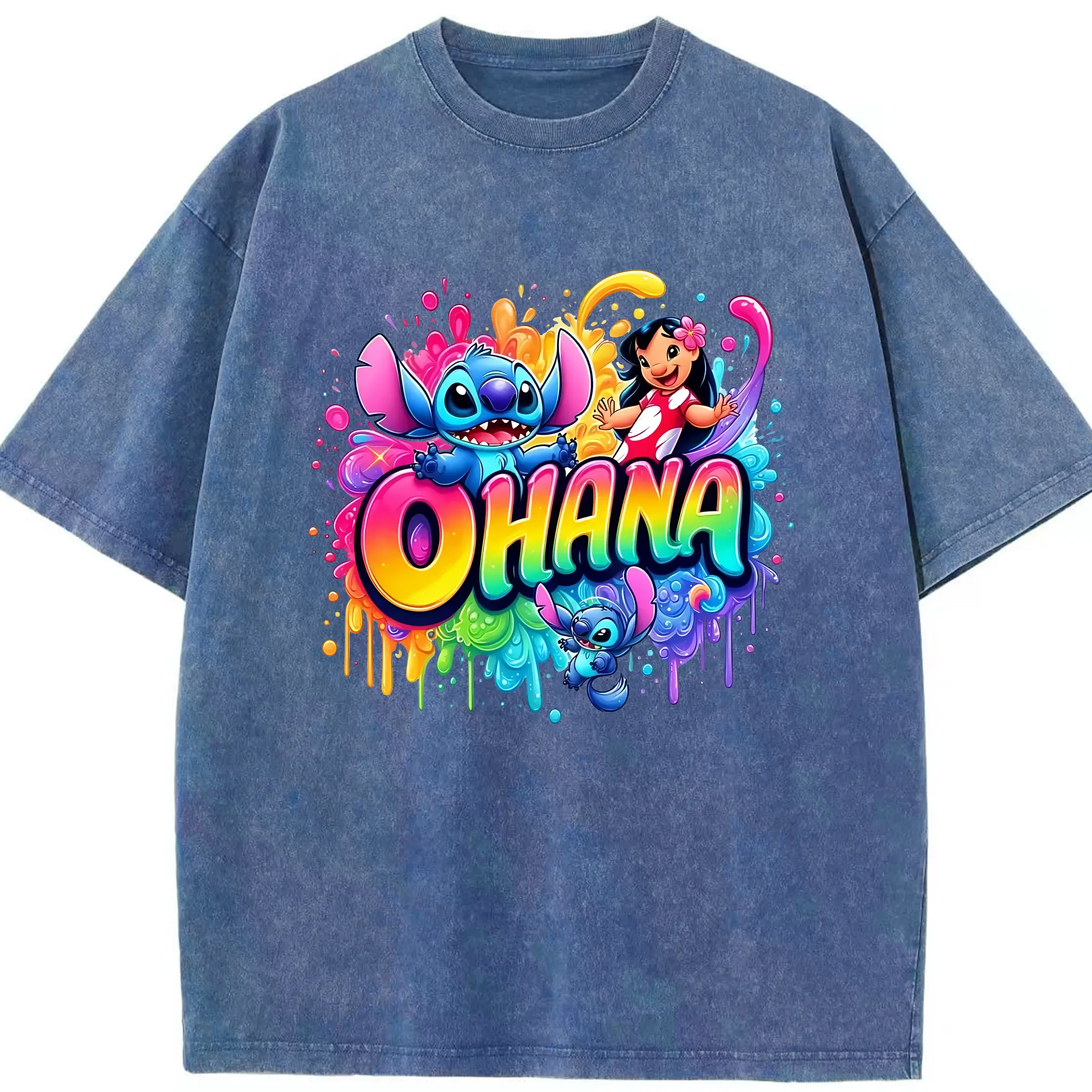 リロ&スティッチ グッズ スティッチ - 綿100% ヴィンテージ風 半袖Tシャツ ・ 背面プリント ・ 柔らか肌触り ・ 通気性 快適 ・ スポーツ カジュアル 外出用