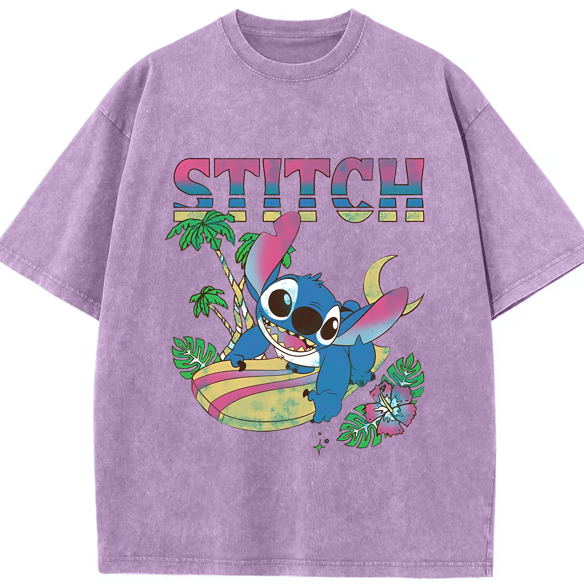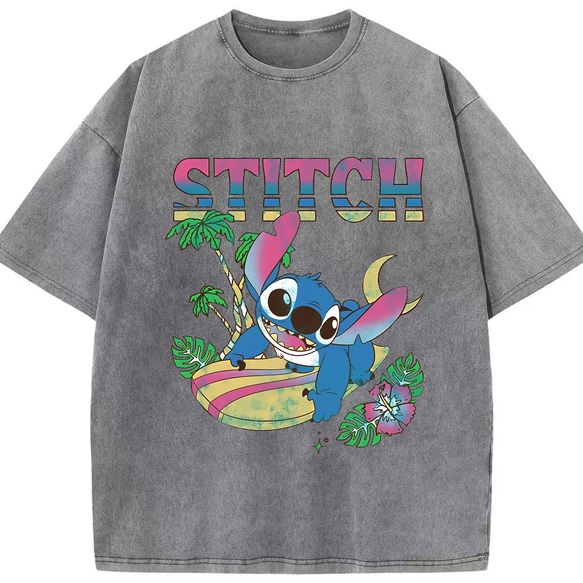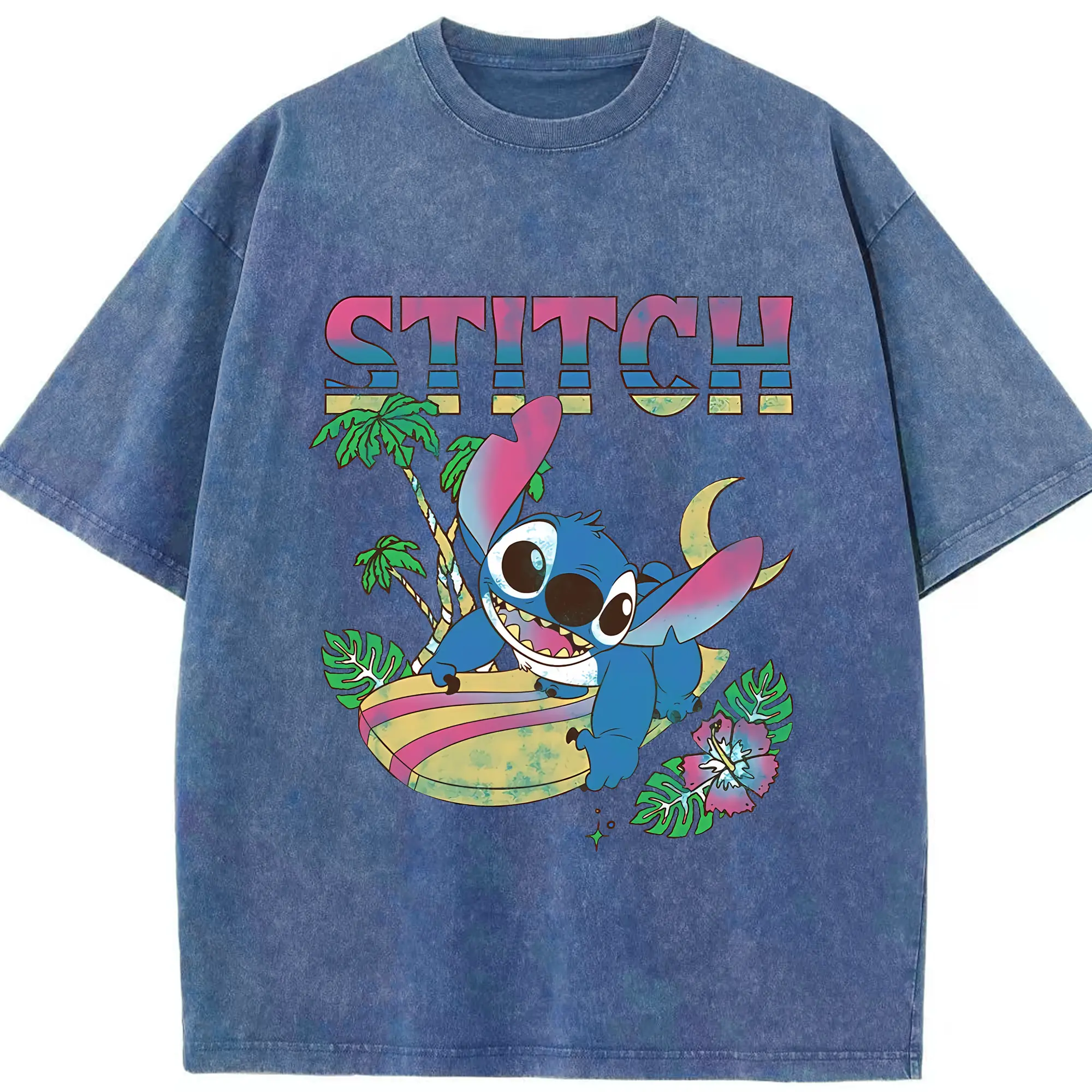 リロ&スティッチ グッズ スティッチ - 綿100% ヴィンテージ風 半袖Tシャツ ・ 背面プリント ・ 柔らか肌触り ・ 通気性 快適 ・ スポーツ カジュアル 外出用