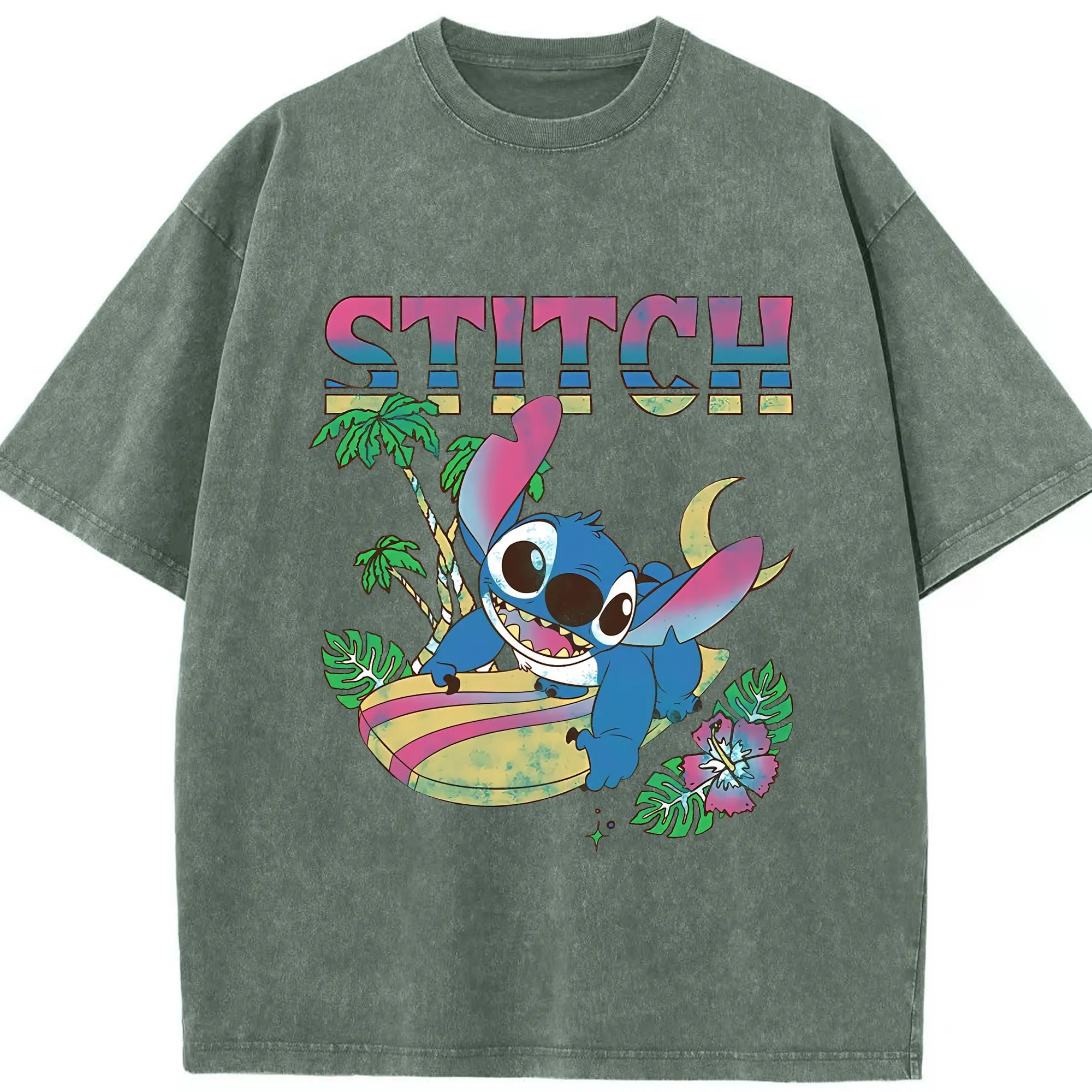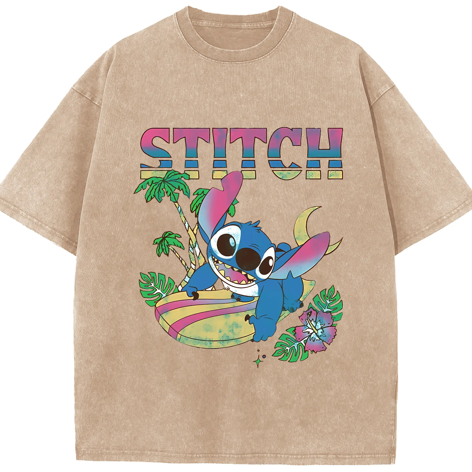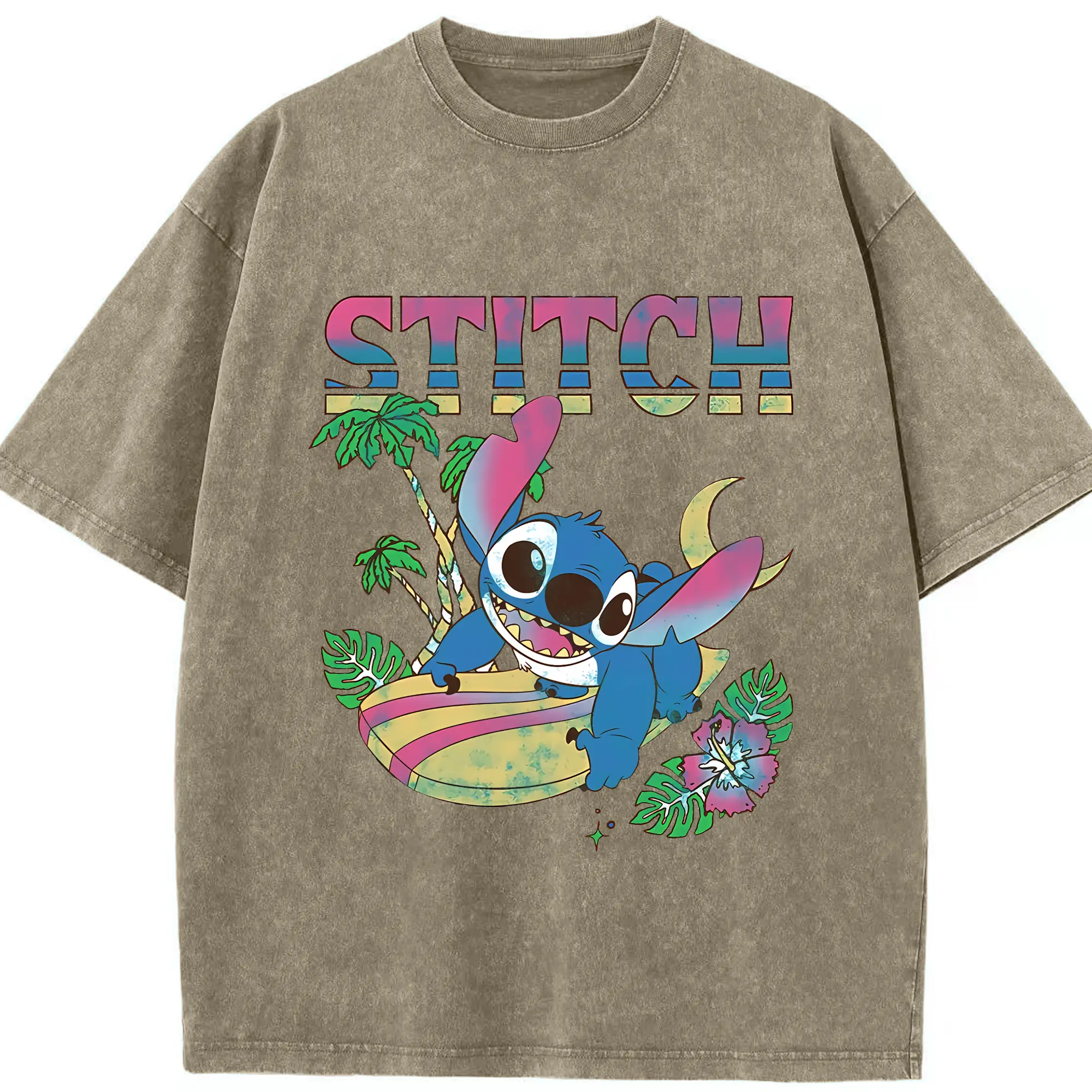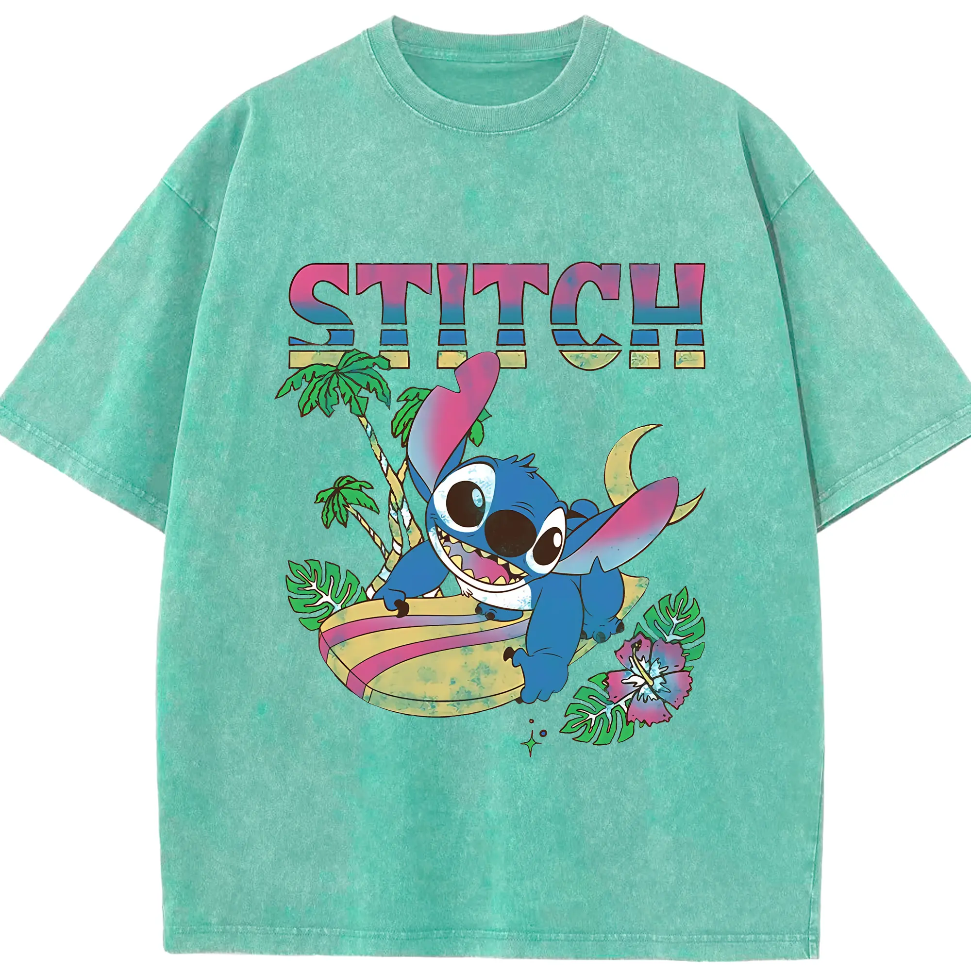 リロ&スティッチ グッズ スティッチ - 綿100% ヴィンテージ風 半袖Tシャツ ・ 背面プリント ・ 柔らか肌触り ・ 通気性 快適 ・ スポーツ カジュアル 外出用
