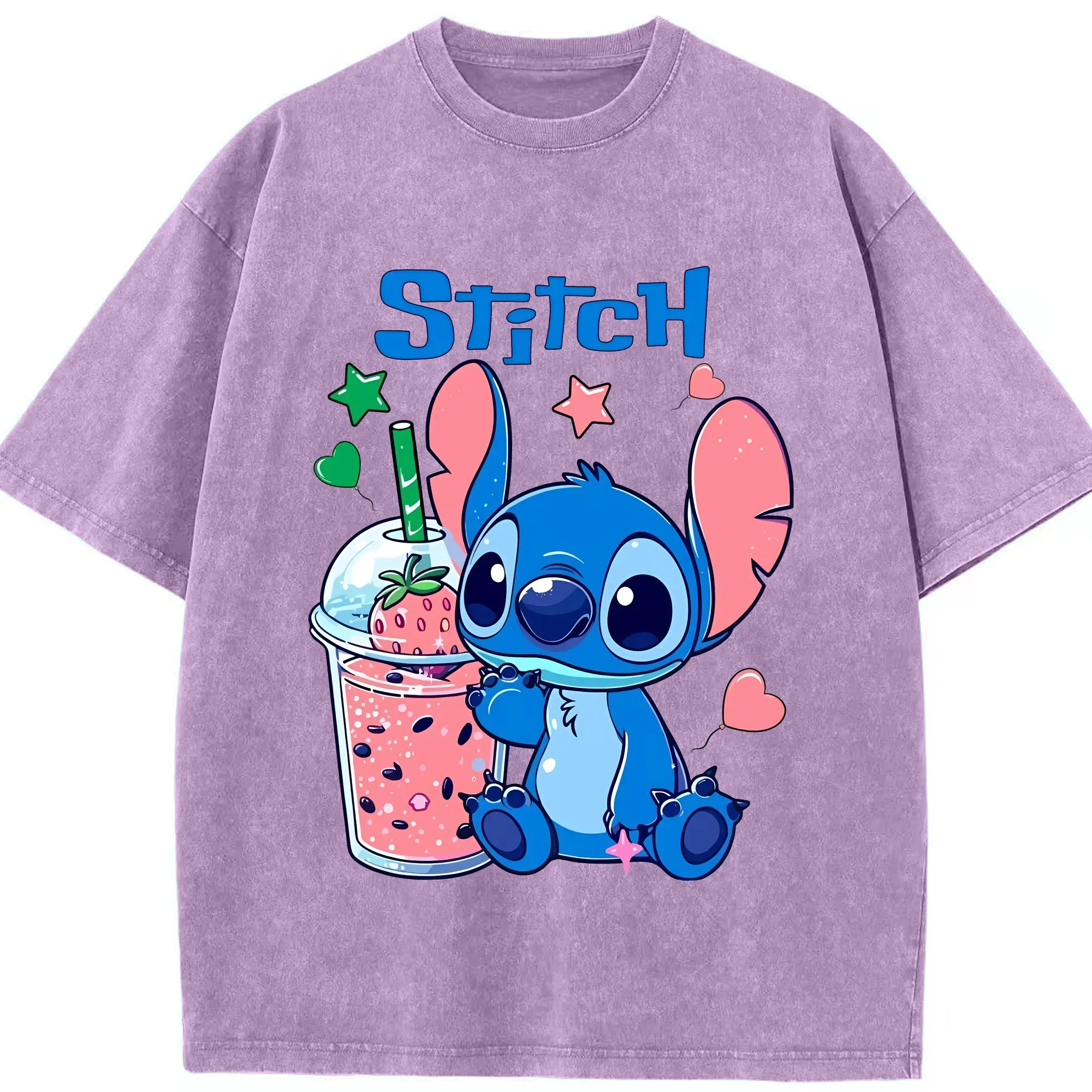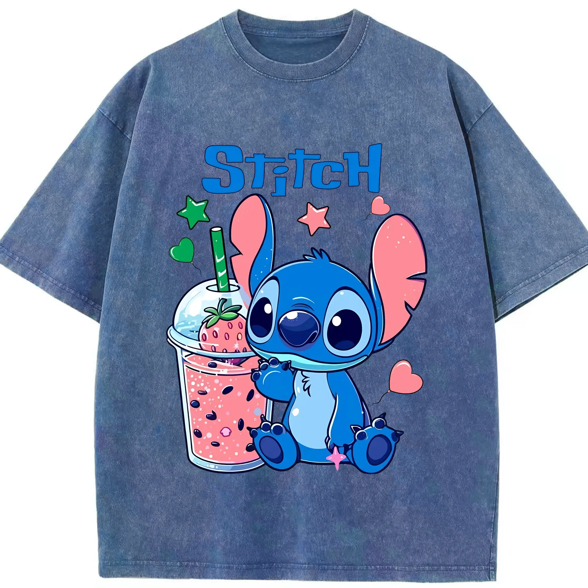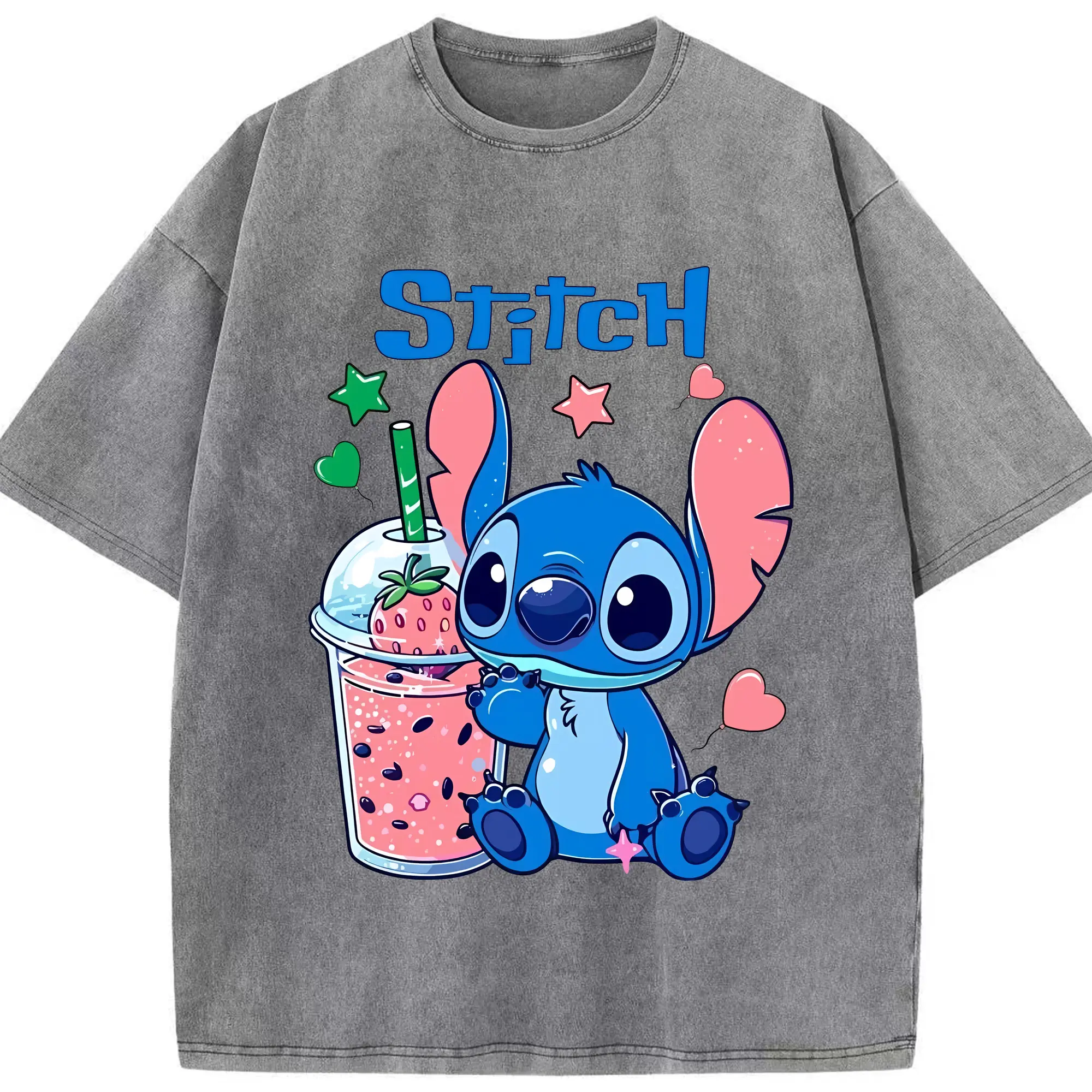 リロ&スティッチ グッズ スティッチ - 綿100% ヴィンテージ風 半袖Tシャツ ・ 背面プリント ・ 柔らか肌触り ・ 通気性 快適 ・ スポーツ カジュアル 外出用
