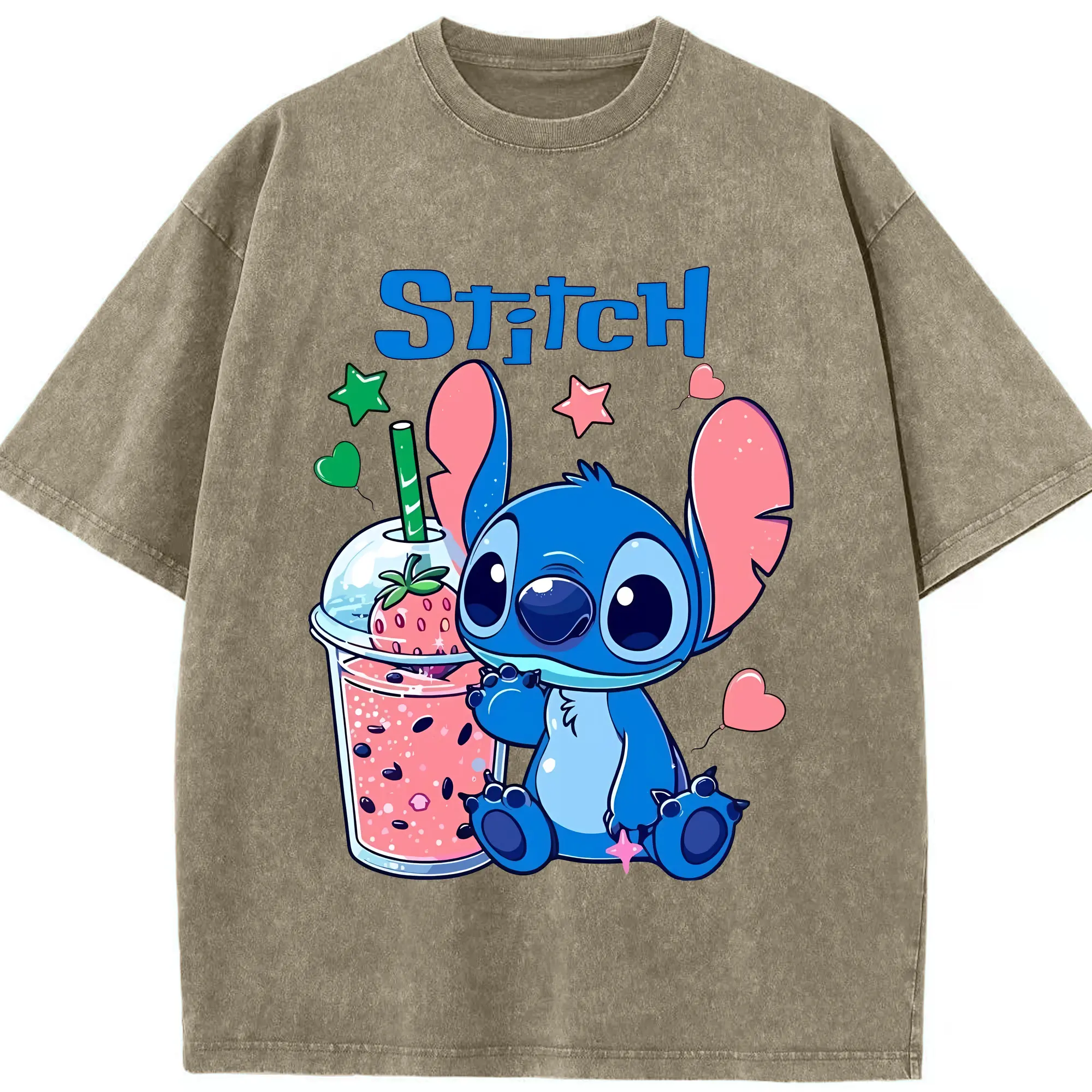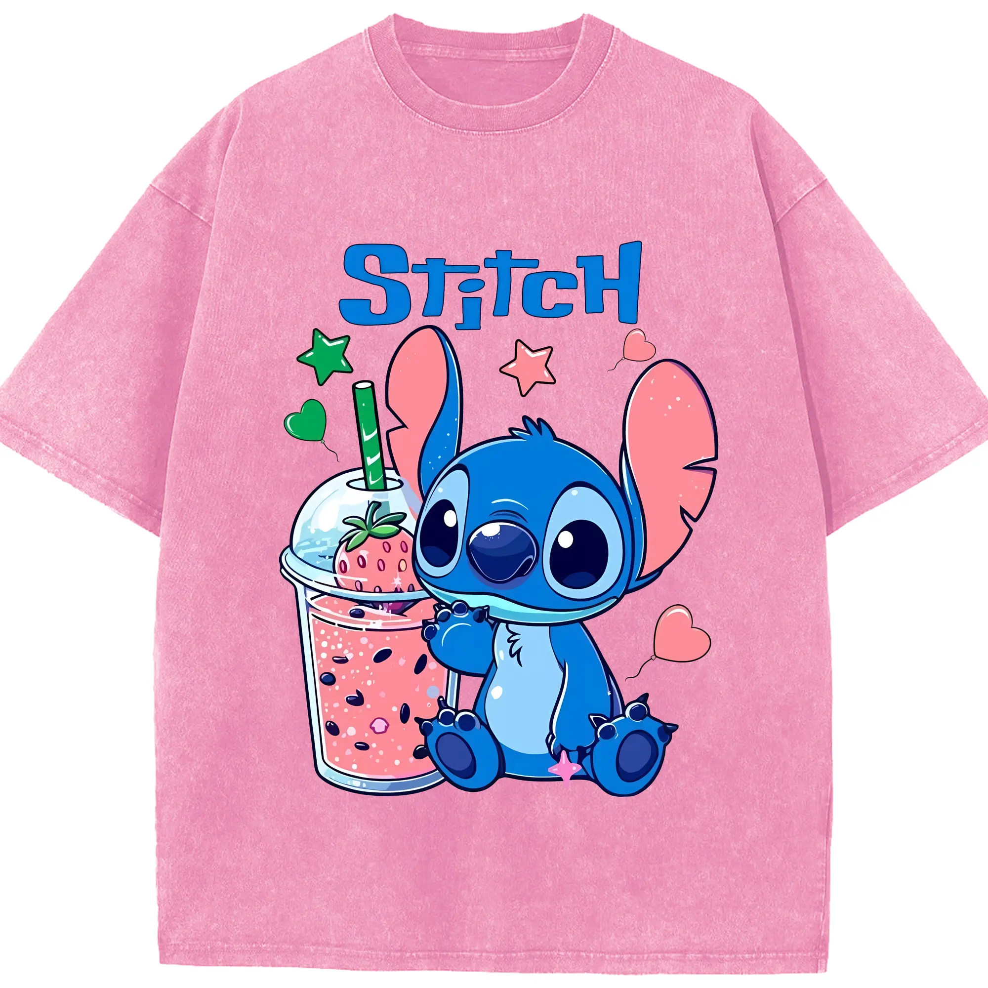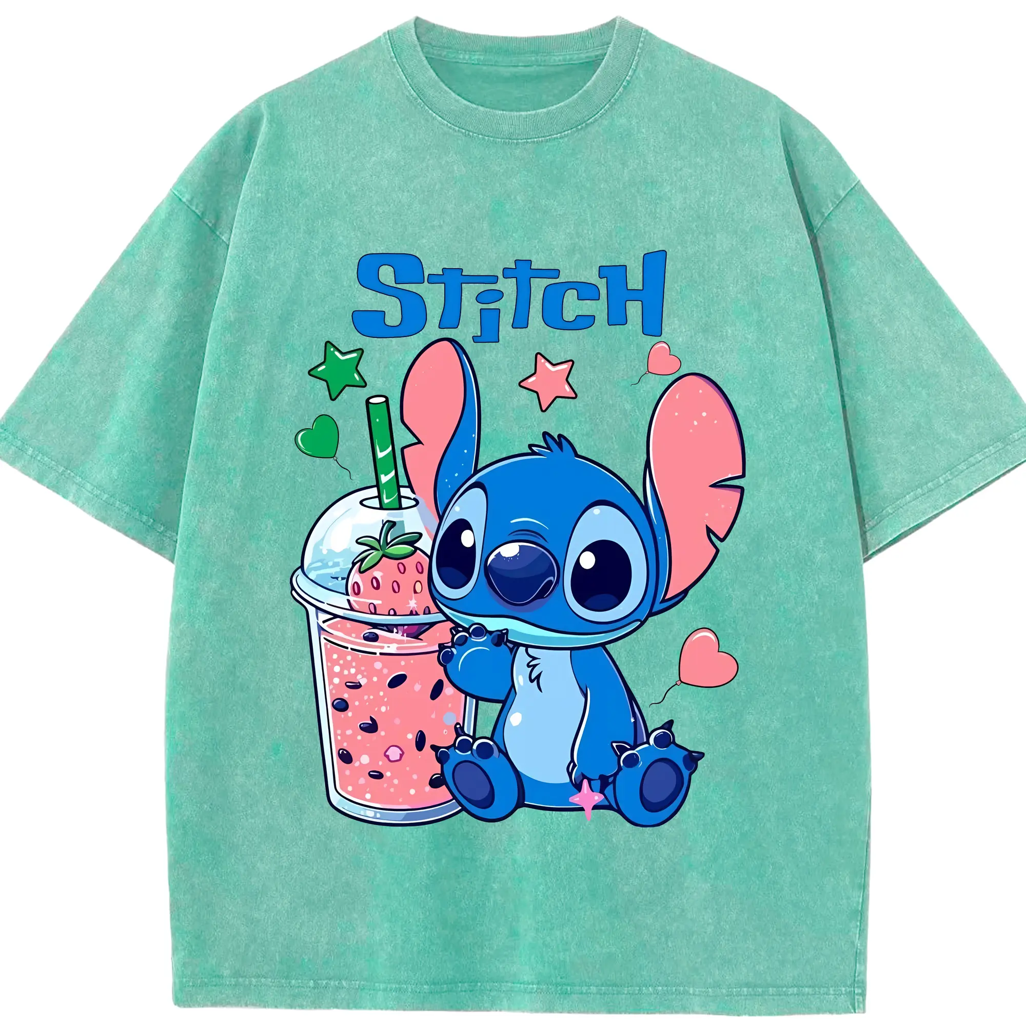 リロ&スティッチ グッズ スティッチ - 綿100% ヴィンテージ風 半袖Tシャツ ・ 背面プリント ・ 柔らか肌触り ・ 通気性 快適 ・ スポーツ カジュアル 外出用