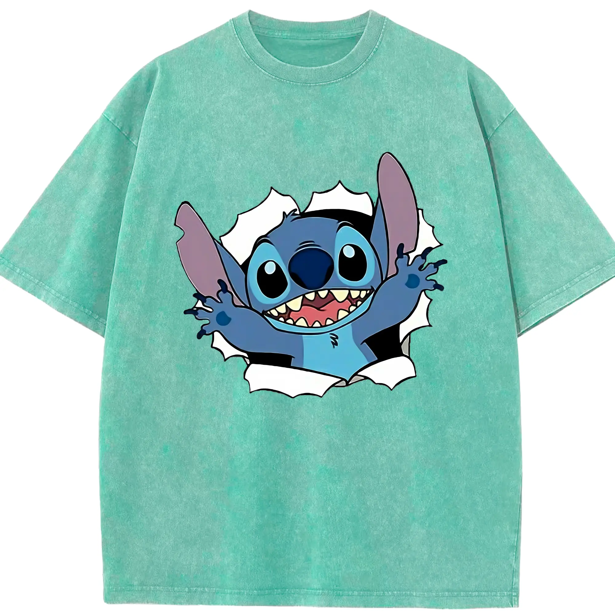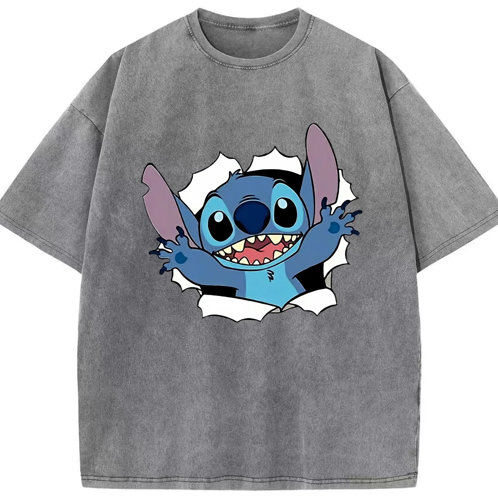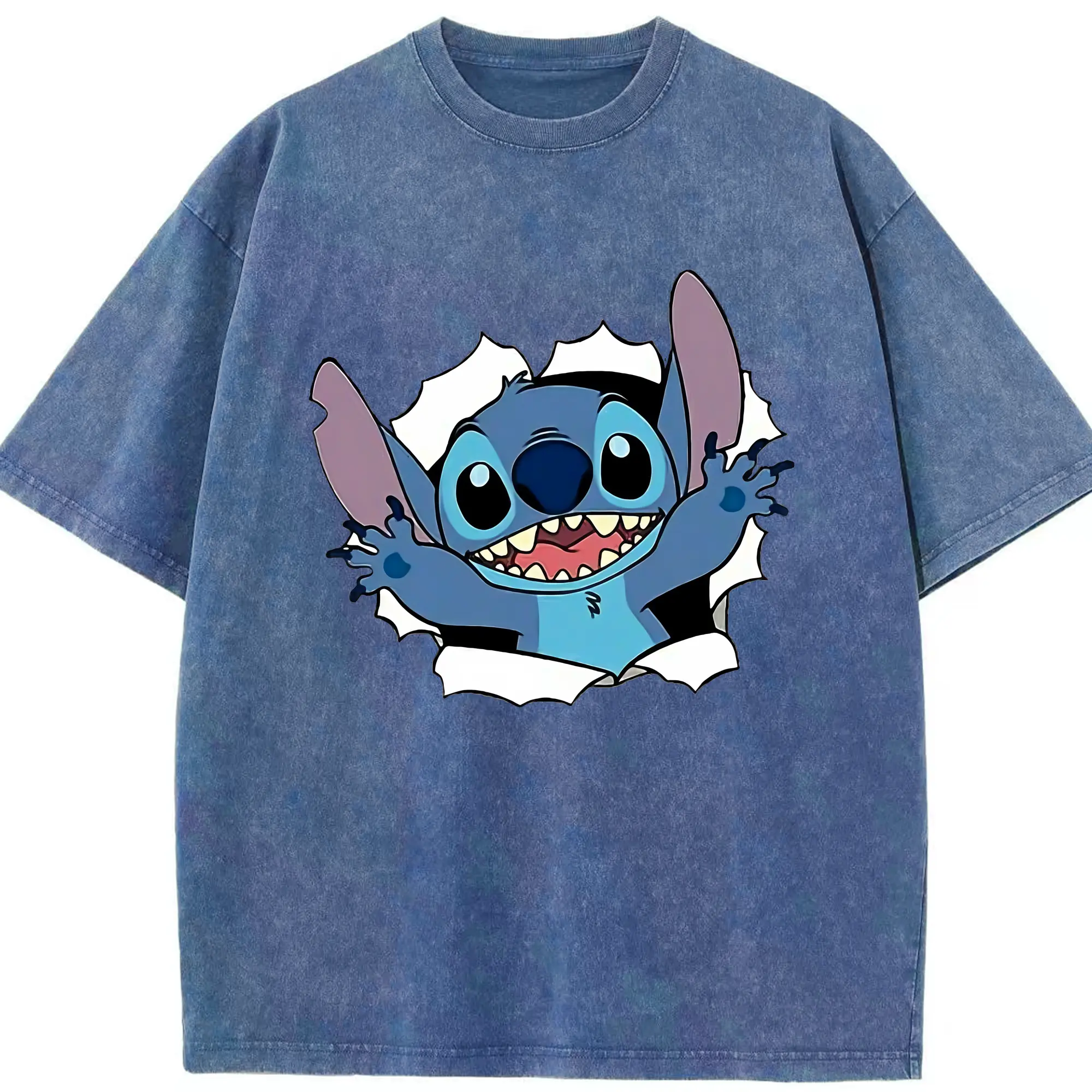 リロ&スティッチ グッズ スティッチ - 綿100% ヴィンテージ風 半袖Tシャツ ・ 背面プリント ・ 柔らか肌触り ・ 通気性 快適 ・ スポーツ カジュアル 外出用