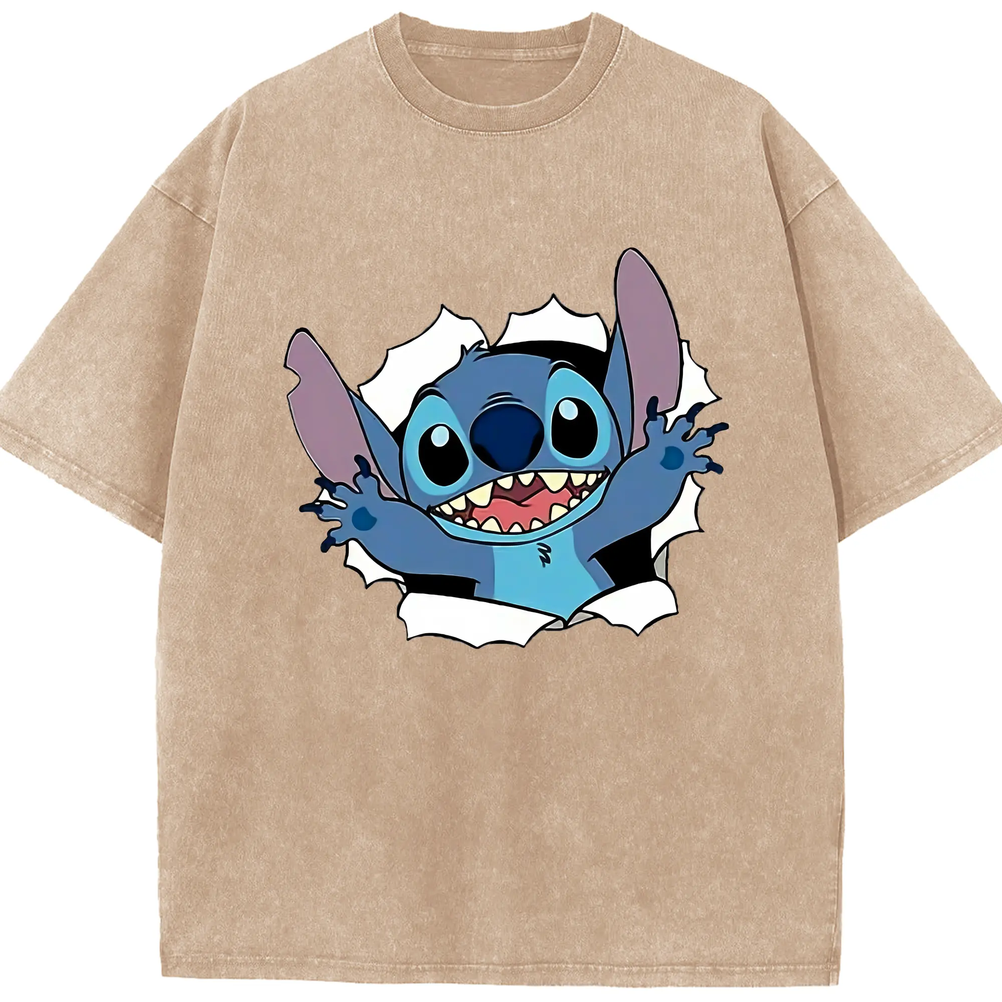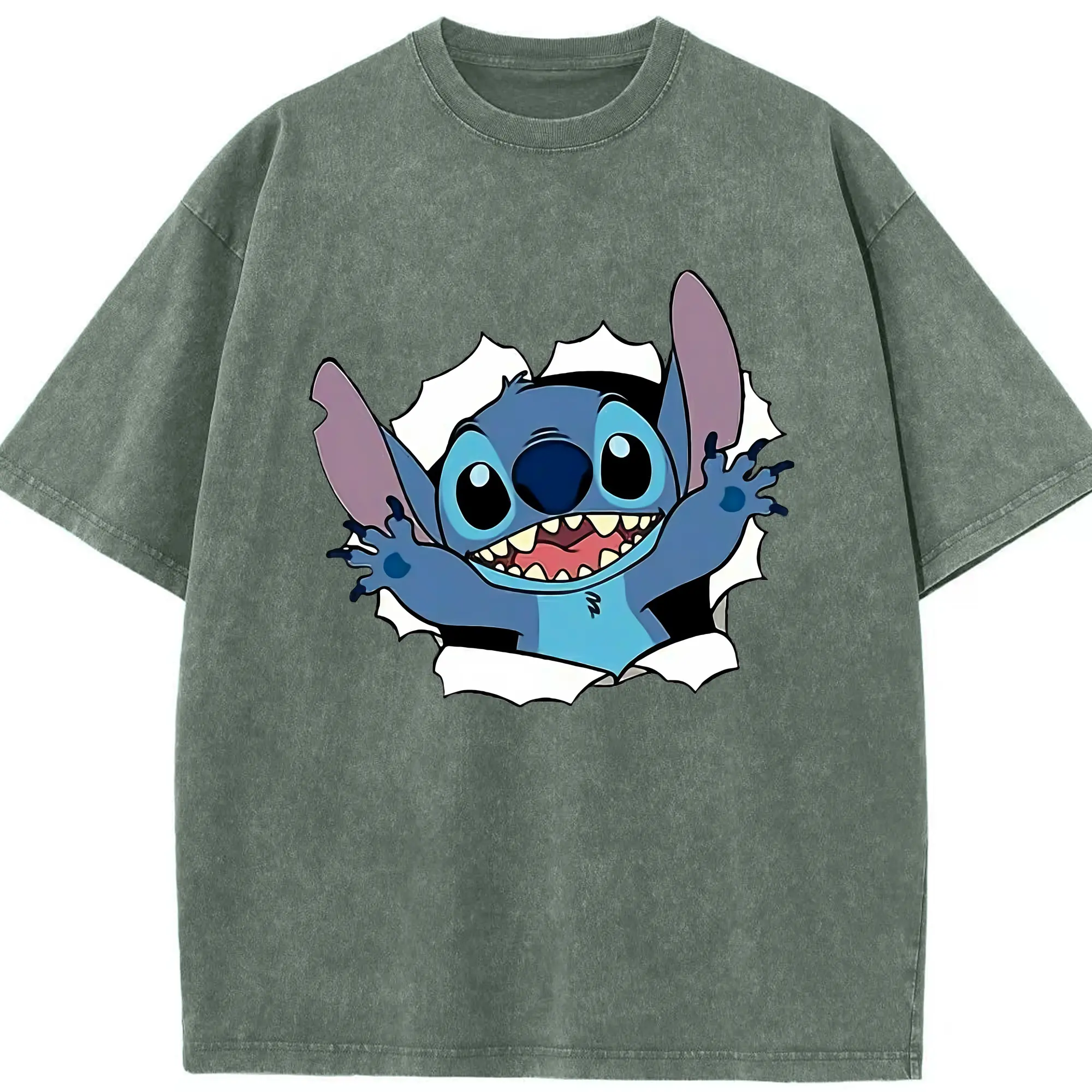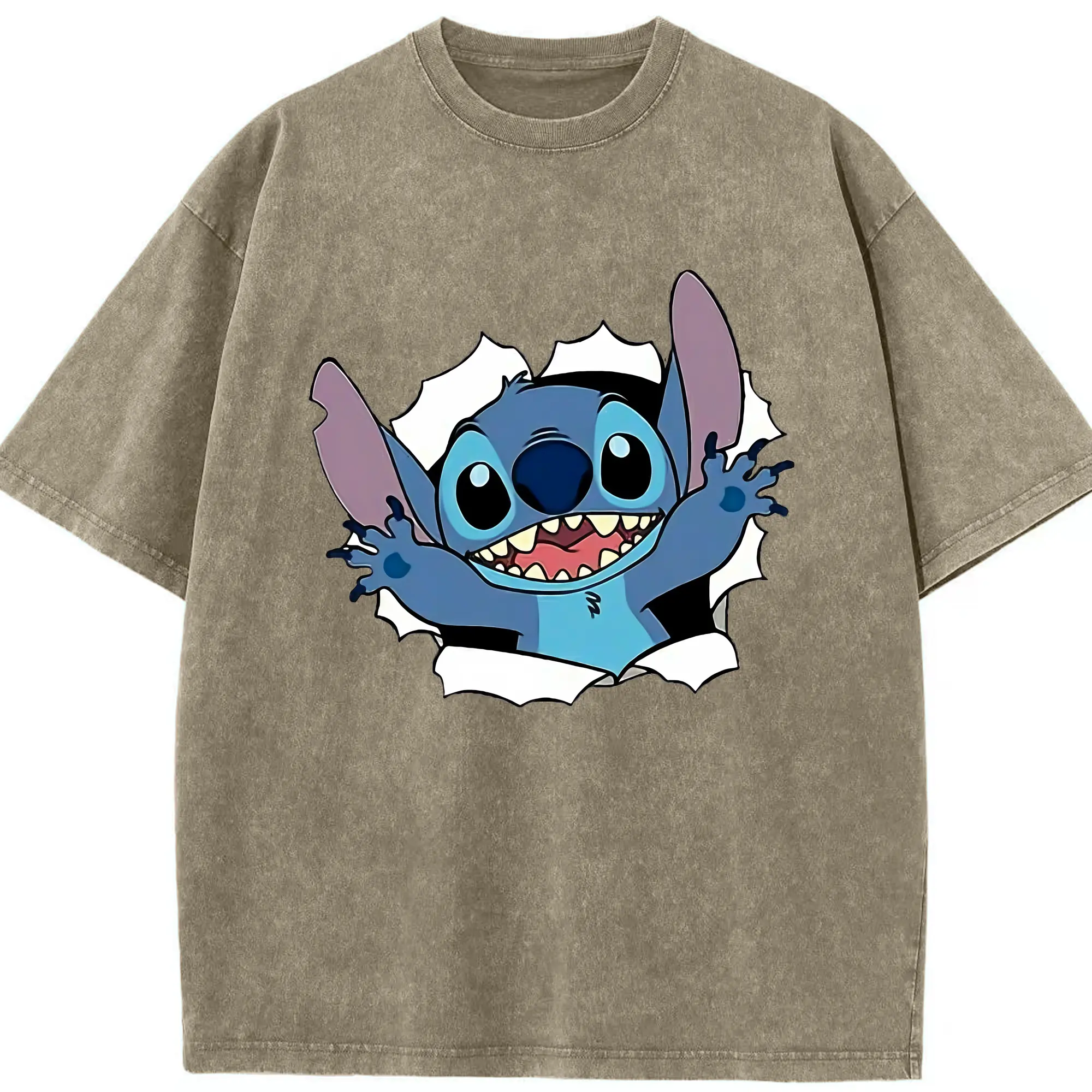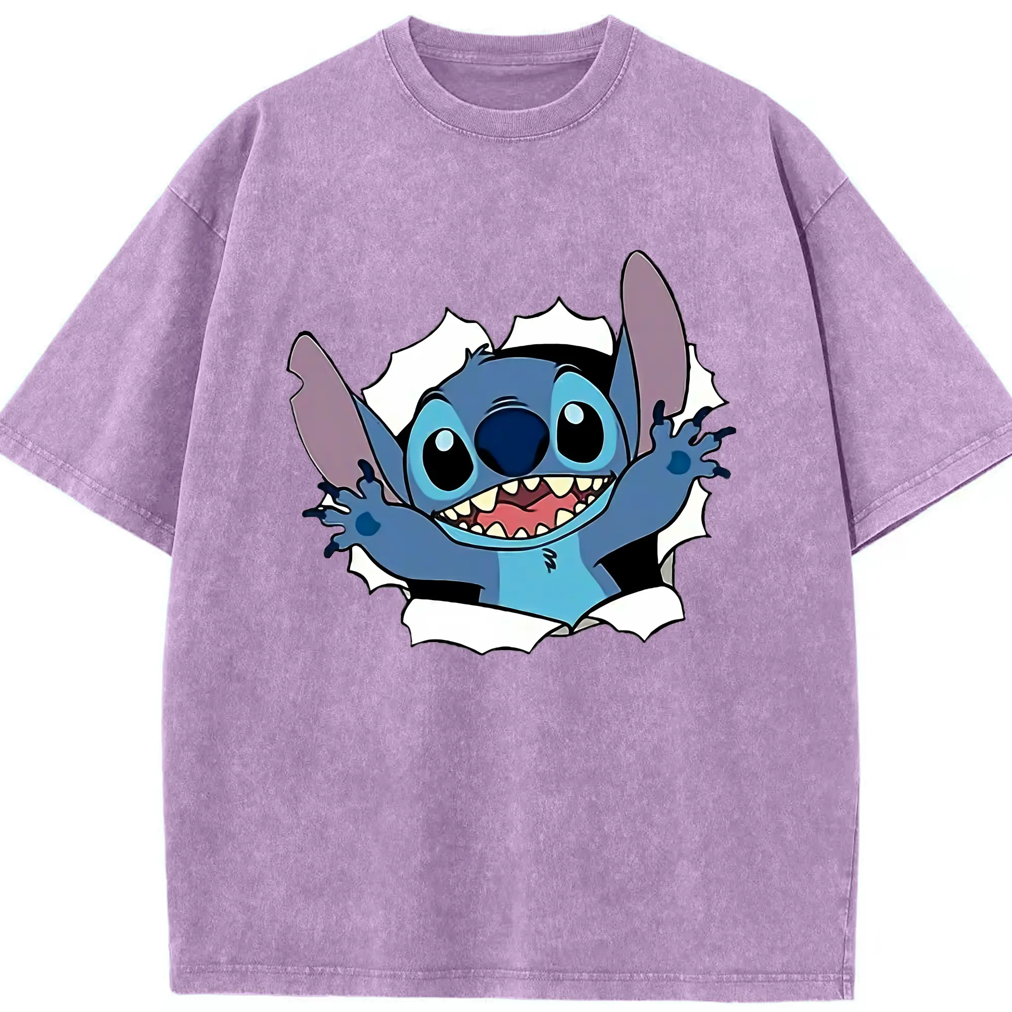 リロ&スティッチ グッズ スティッチ - 綿100% ヴィンテージ風 半袖Tシャツ ・ 背面プリント ・ 柔らか肌触り ・ 通気性 快適 ・ スポーツ カジュアル 外出用