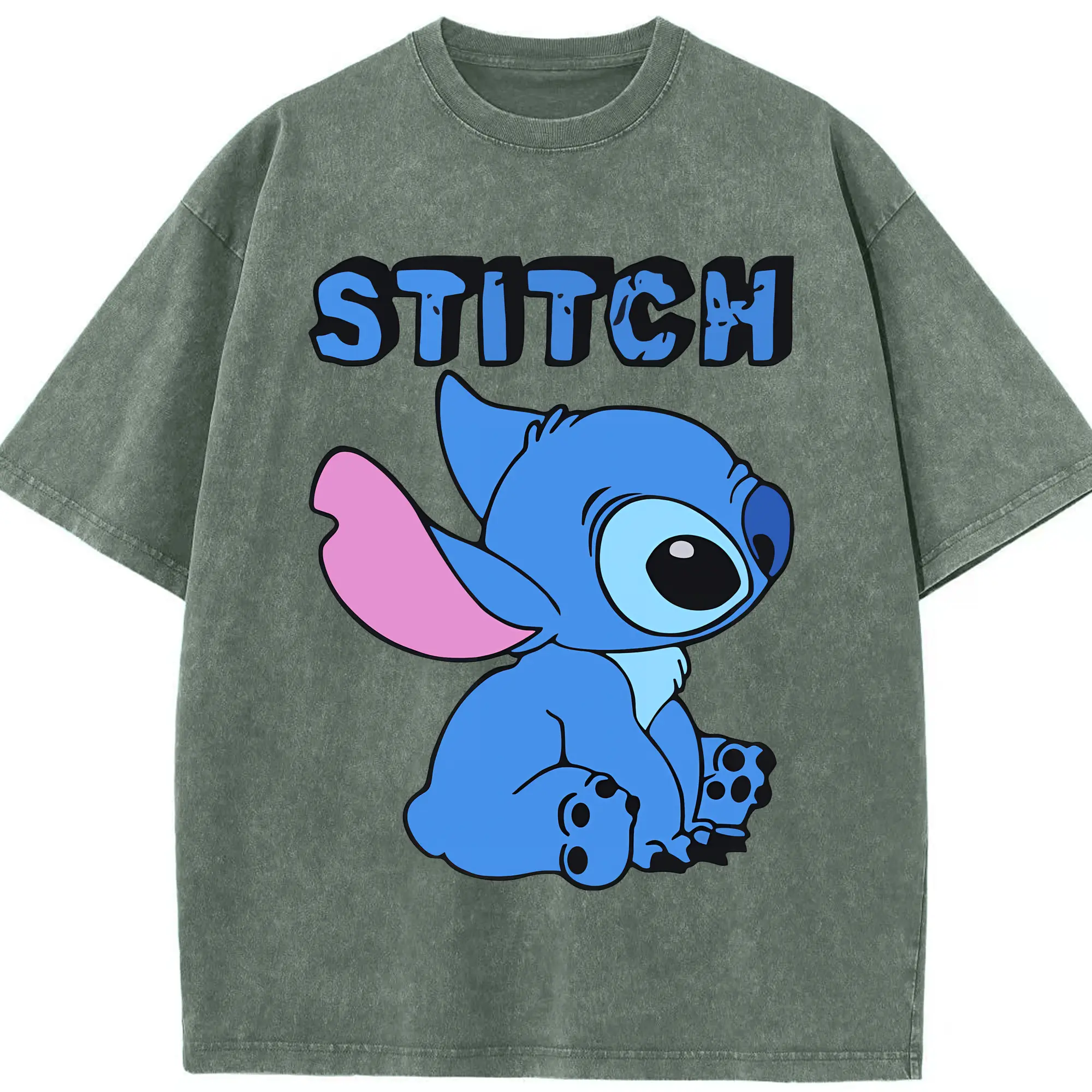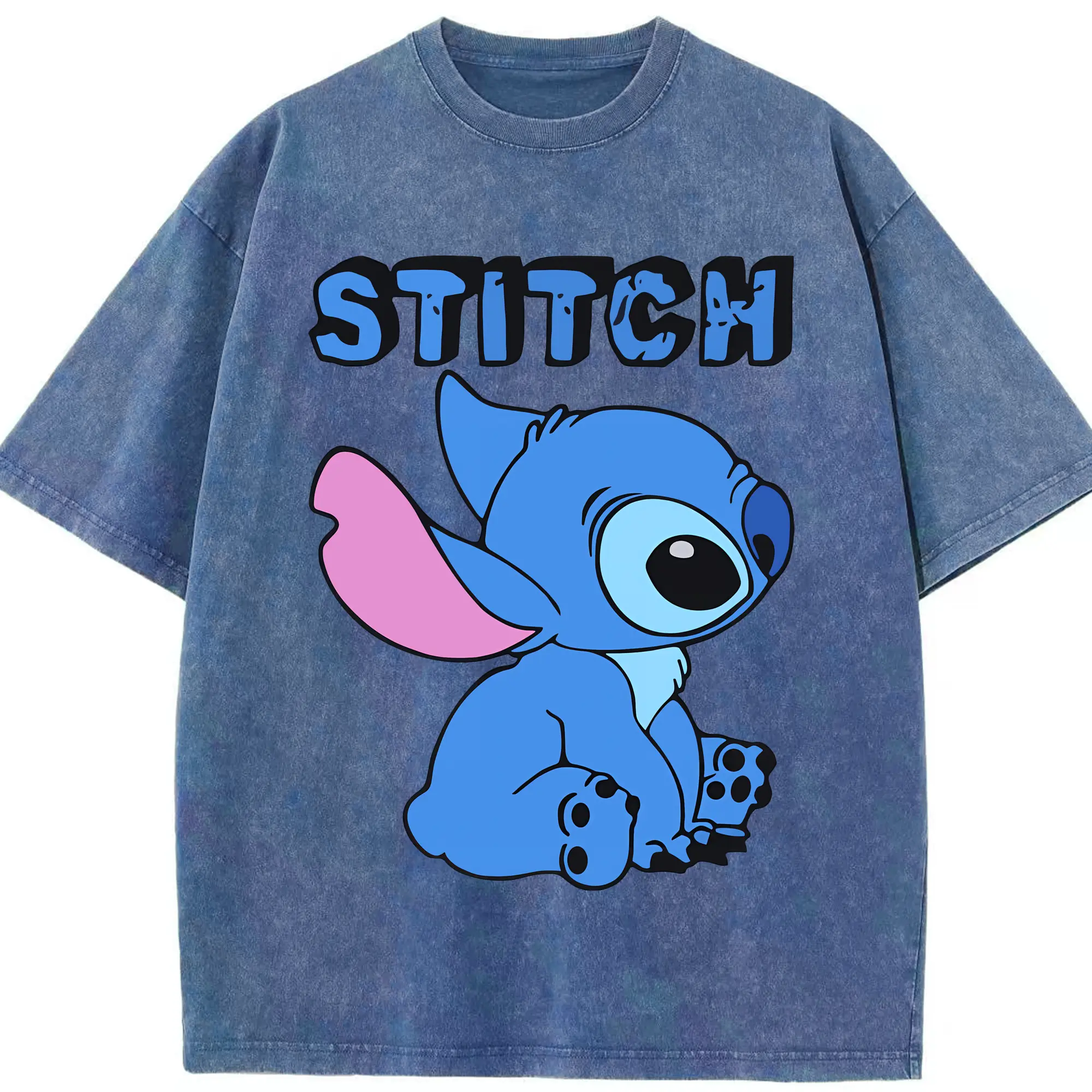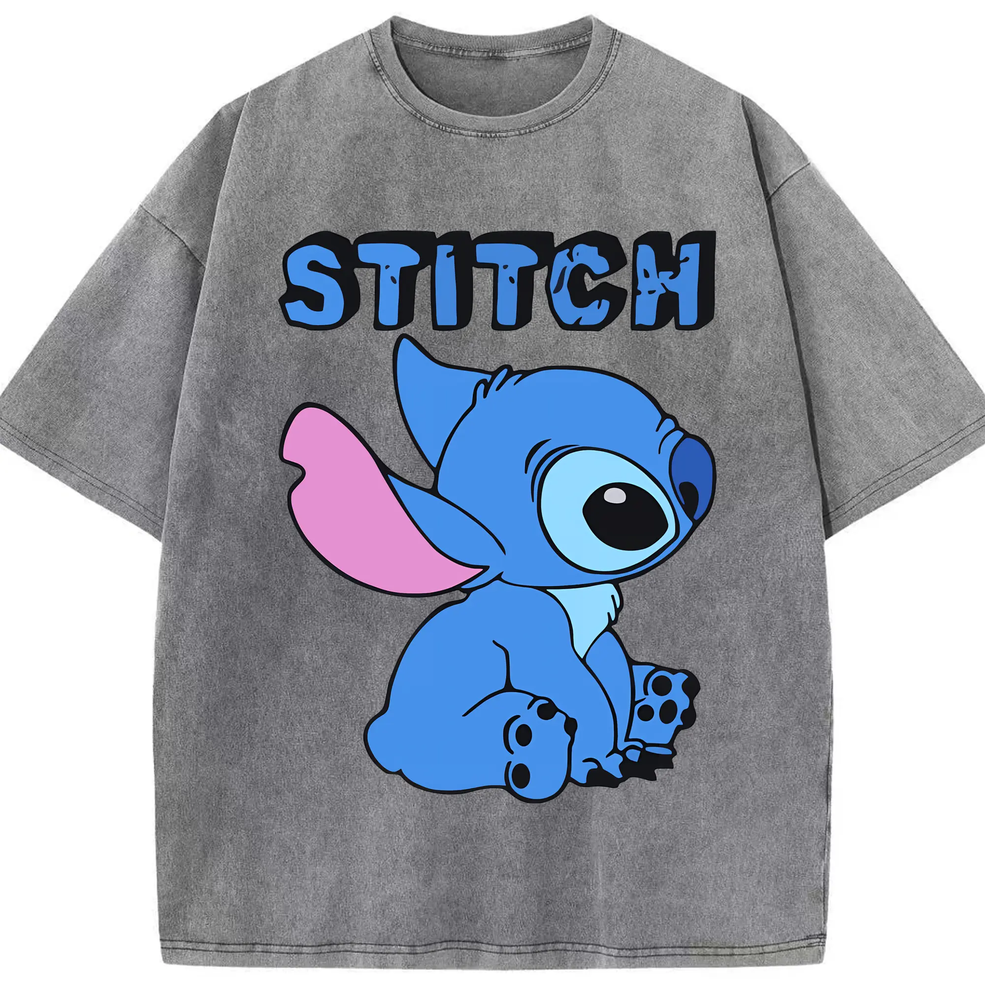 リロ&スティッチ グッズ スティッチ - 綿100% ヴィンテージ風 半袖Tシャツ ・ 背面プリント ・ 柔らか肌触り ・ 通気性 快適 ・ スポーツ カジュアル 外出用