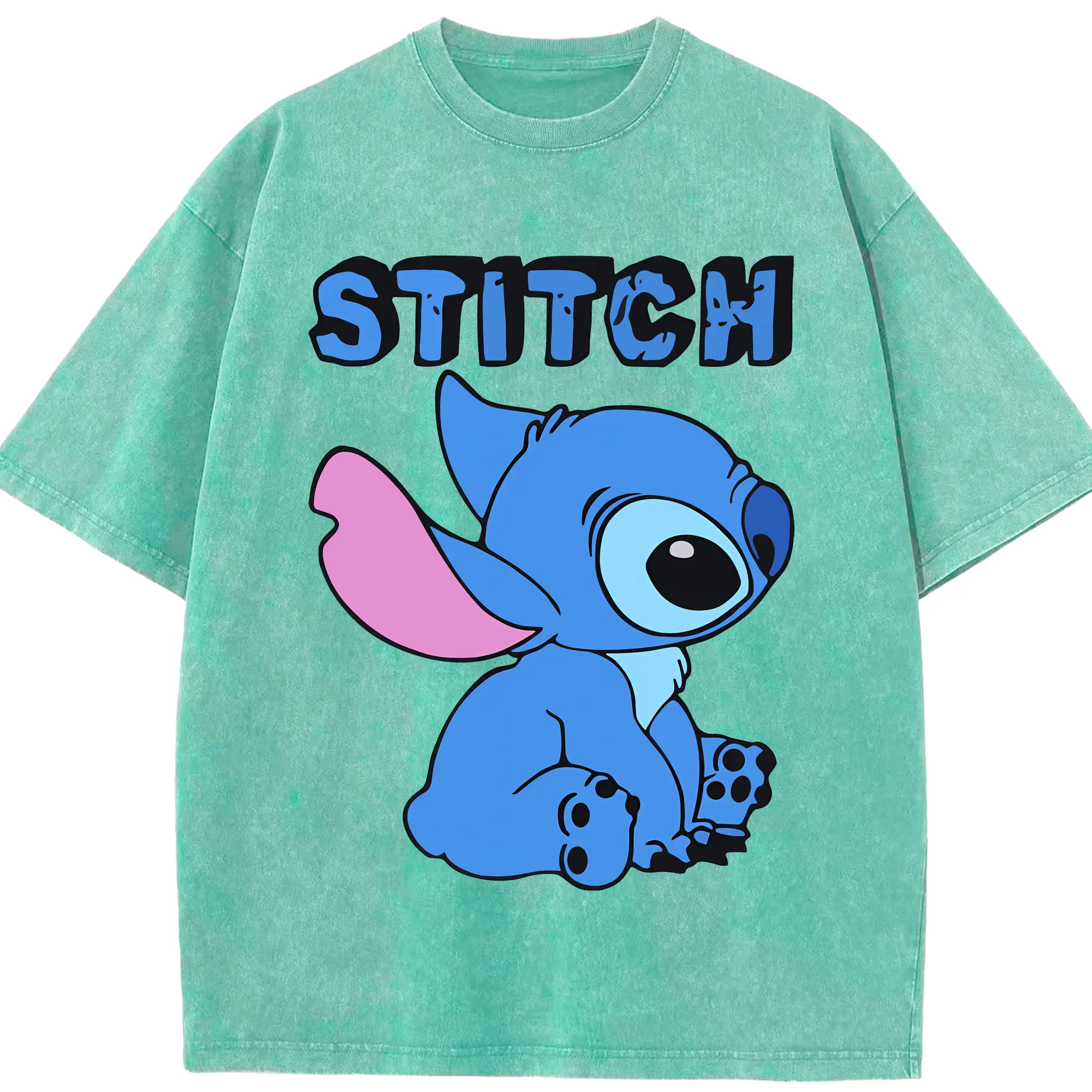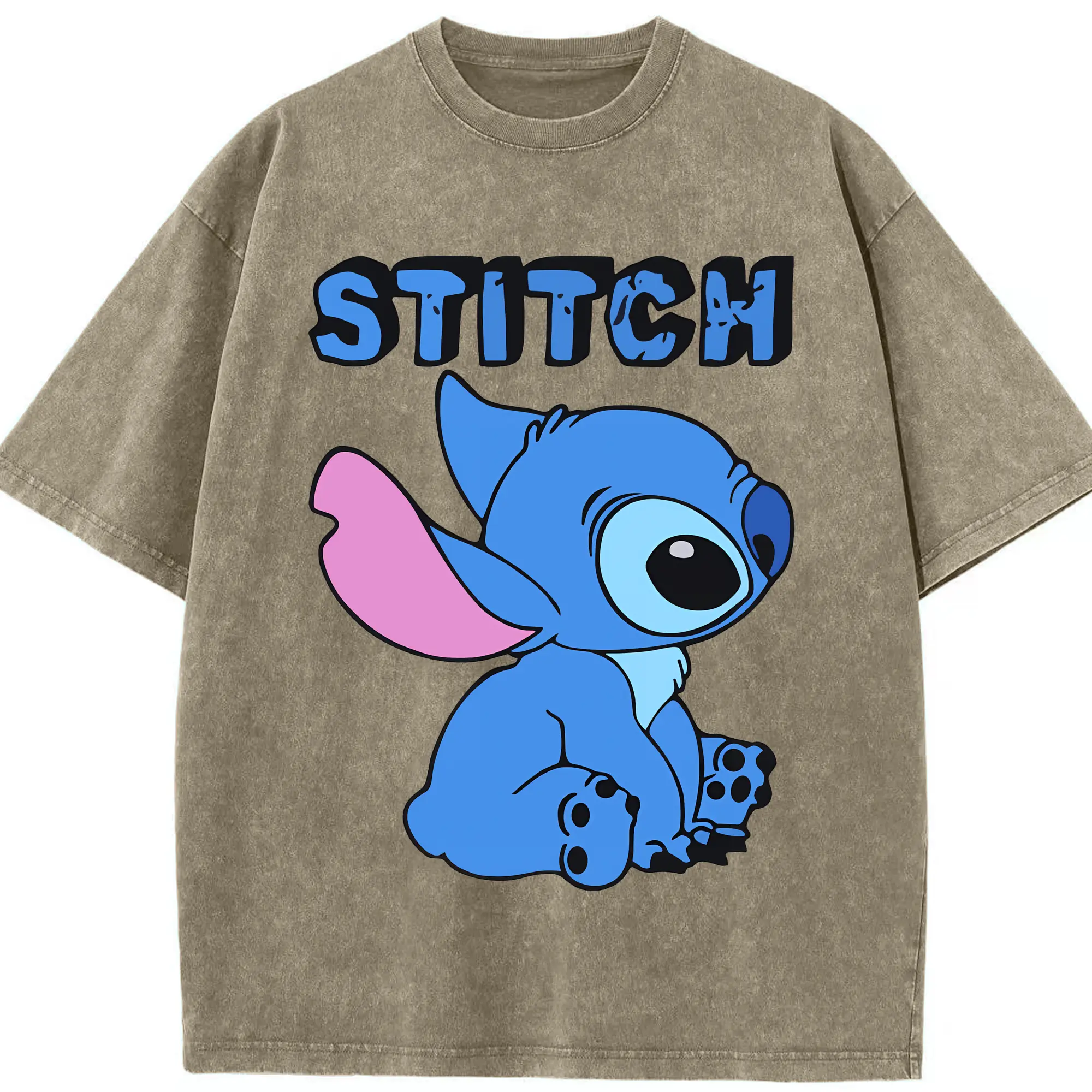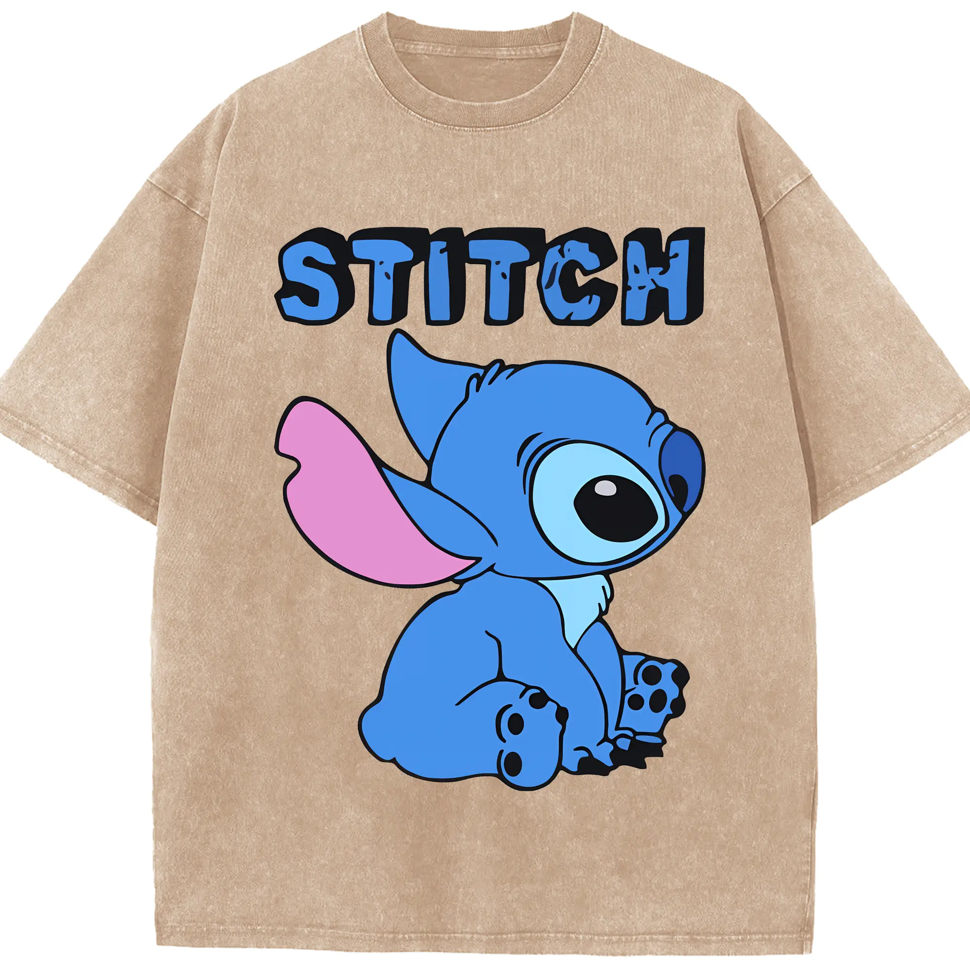 リロ&スティッチ グッズ スティッチ - 綿100% ヴィンテージ風 半袖Tシャツ ・ 背面プリント ・ 柔らか肌触り ・ 通気性 快適 ・ スポーツ カジュアル 外出用