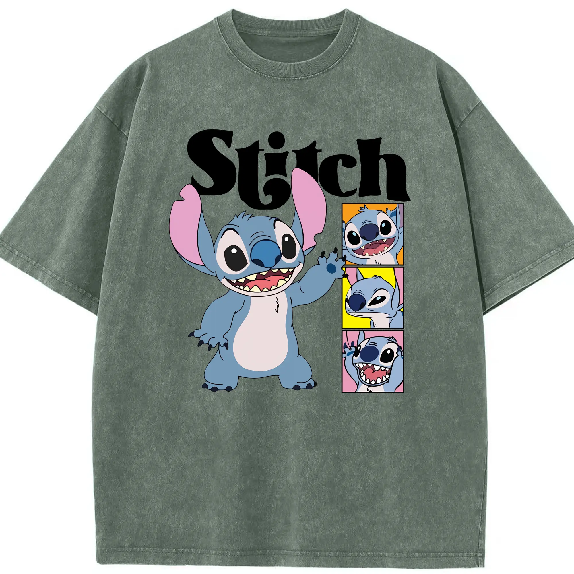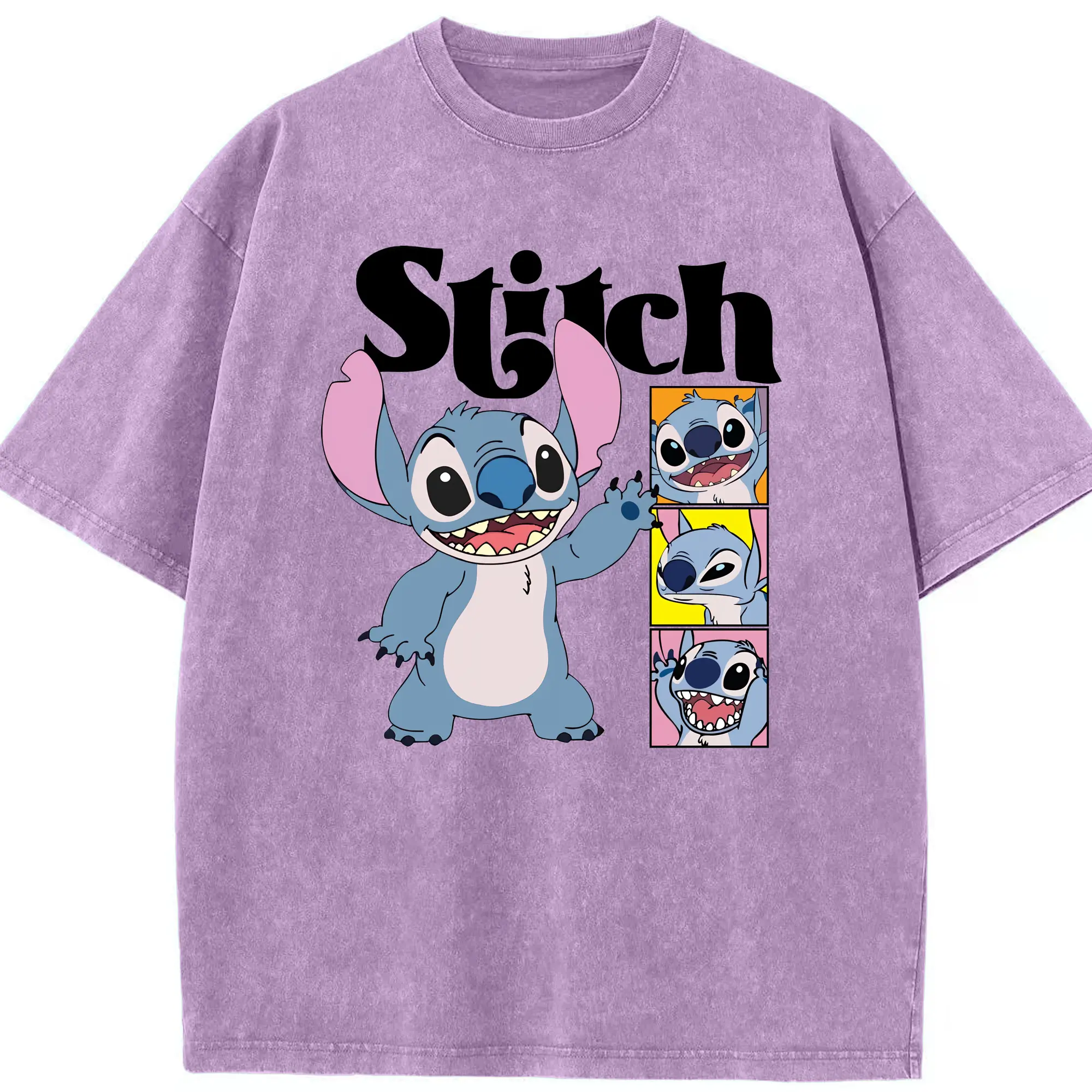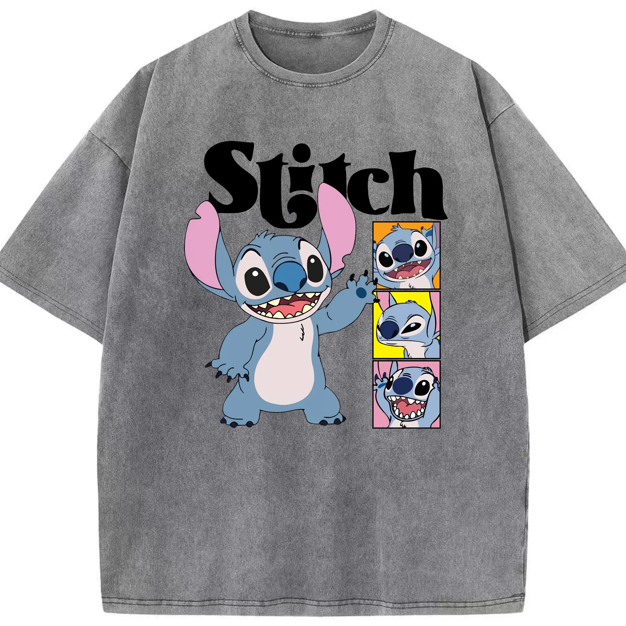リロ&スティッチ グッズ スティッチ - 綿100% ヴィンテージ風 半袖Tシャツ ・ 背面プリント ・ 柔らか肌触り ・ 通気性 快適 ・ スポーツ カジュアル 外出用
