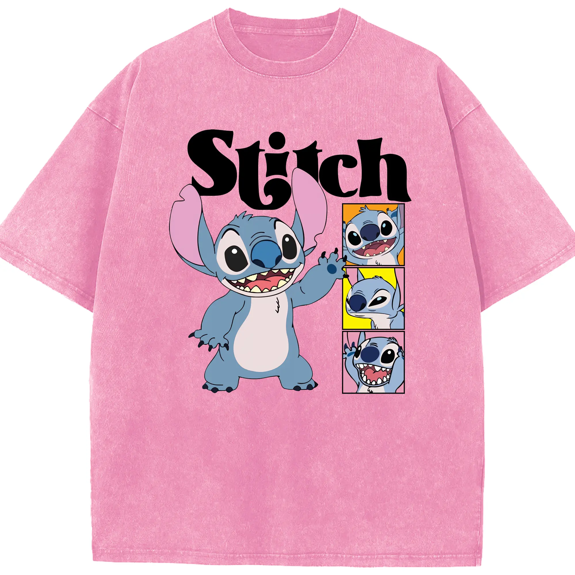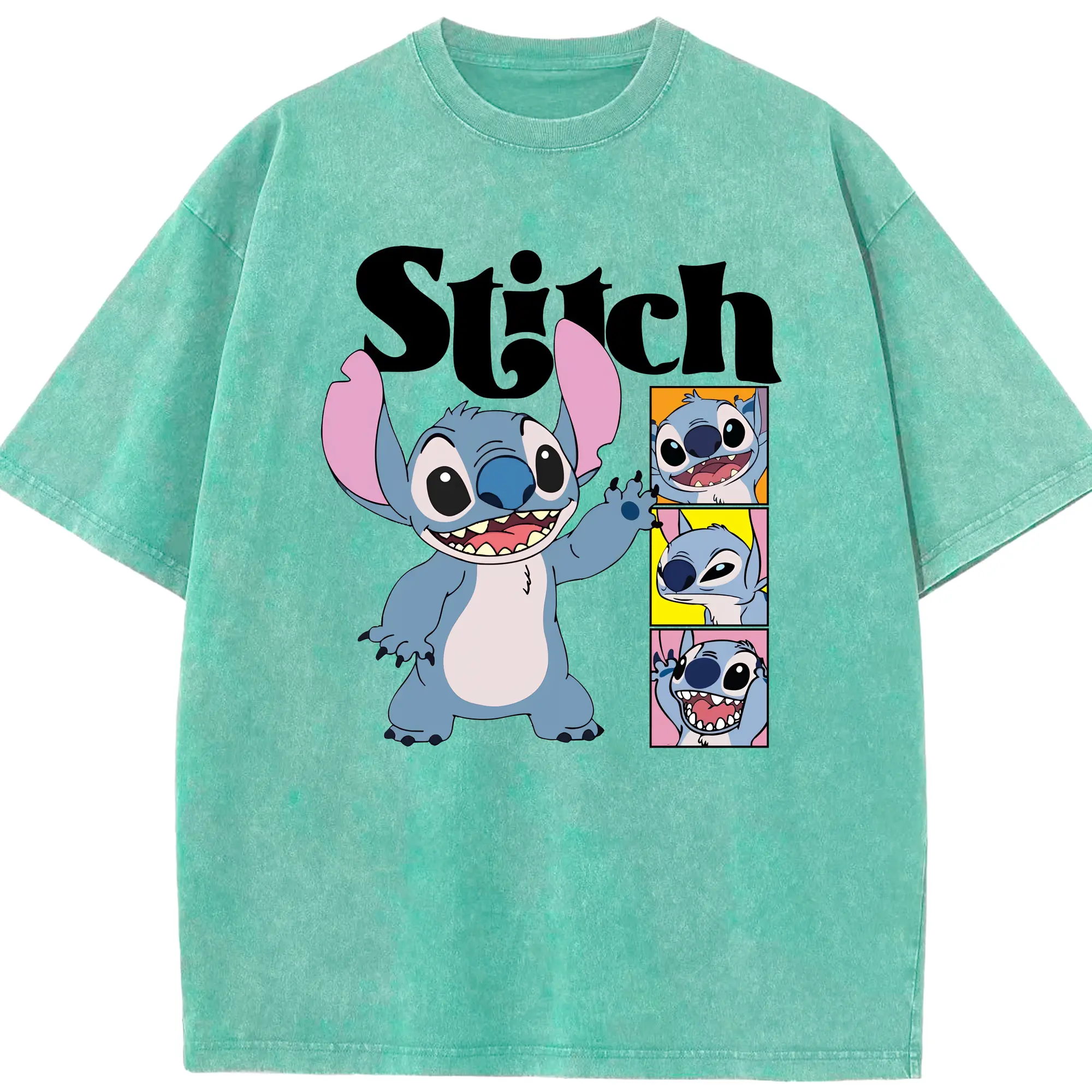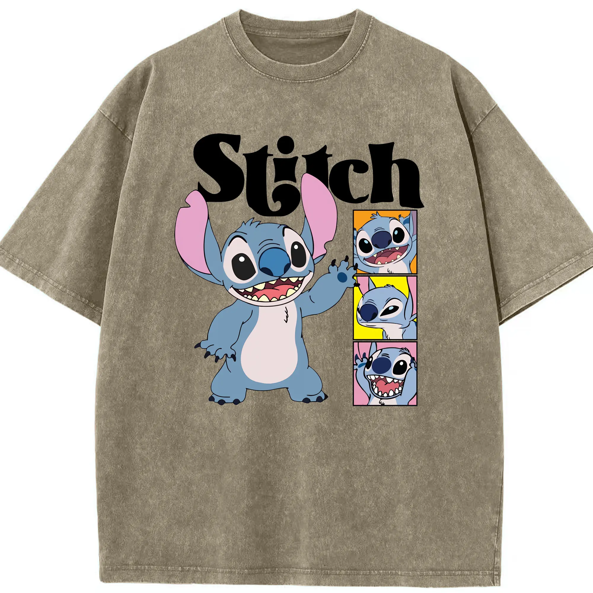 リロ&スティッチ グッズ スティッチ - 綿100% ヴィンテージ風 半袖Tシャツ ・ 背面プリント ・ 柔らか肌触り ・ 通気性 快適 ・ スポーツ カジュアル 外出用