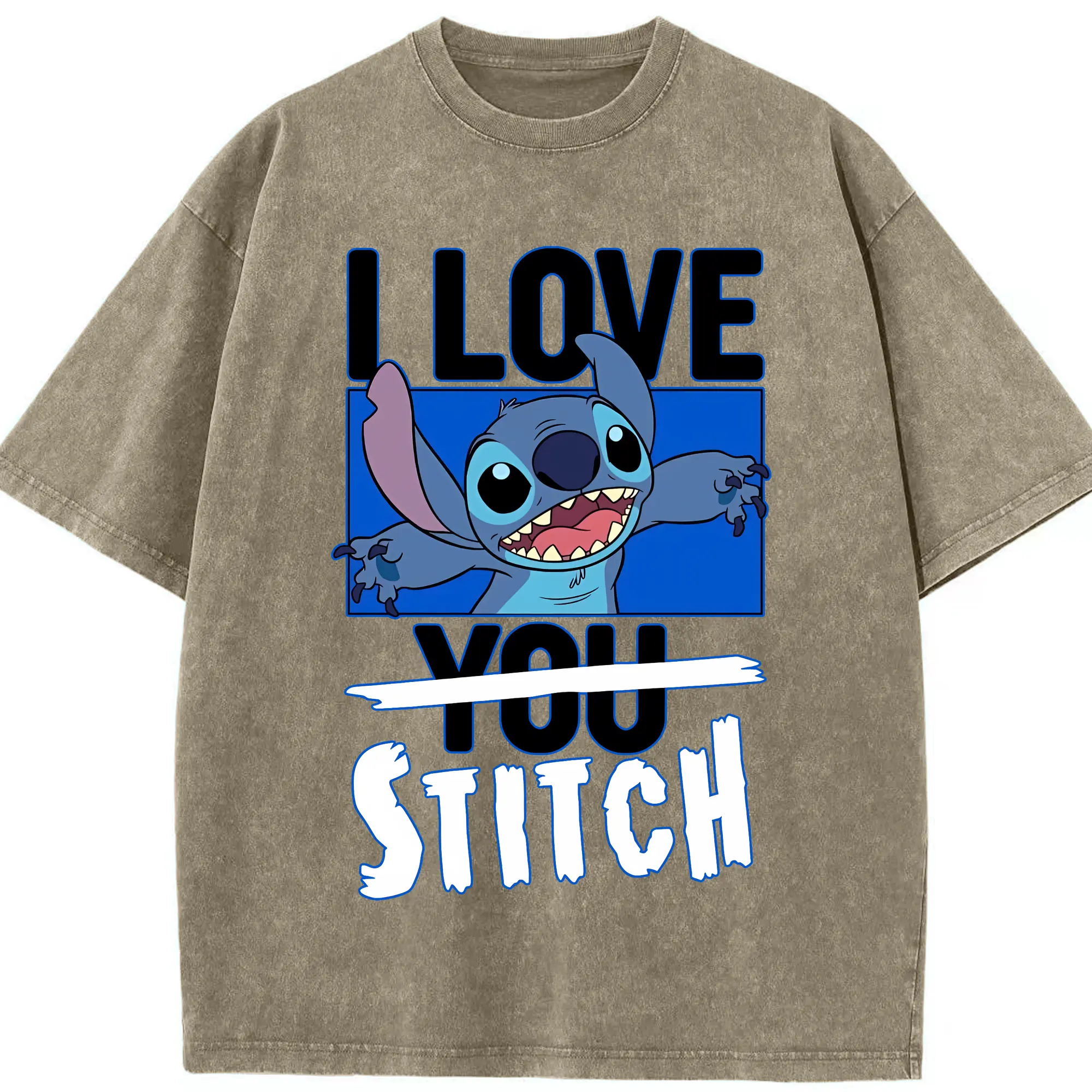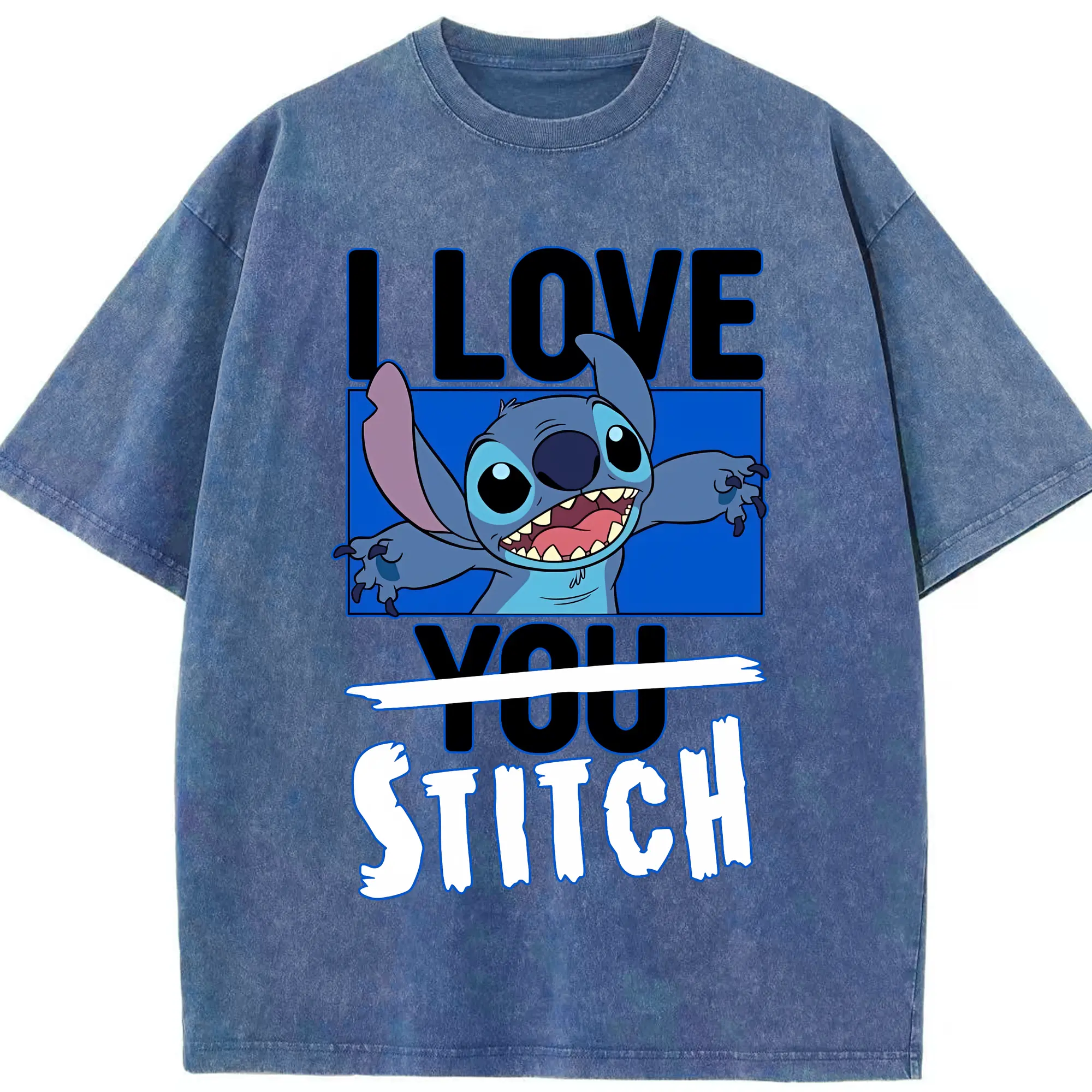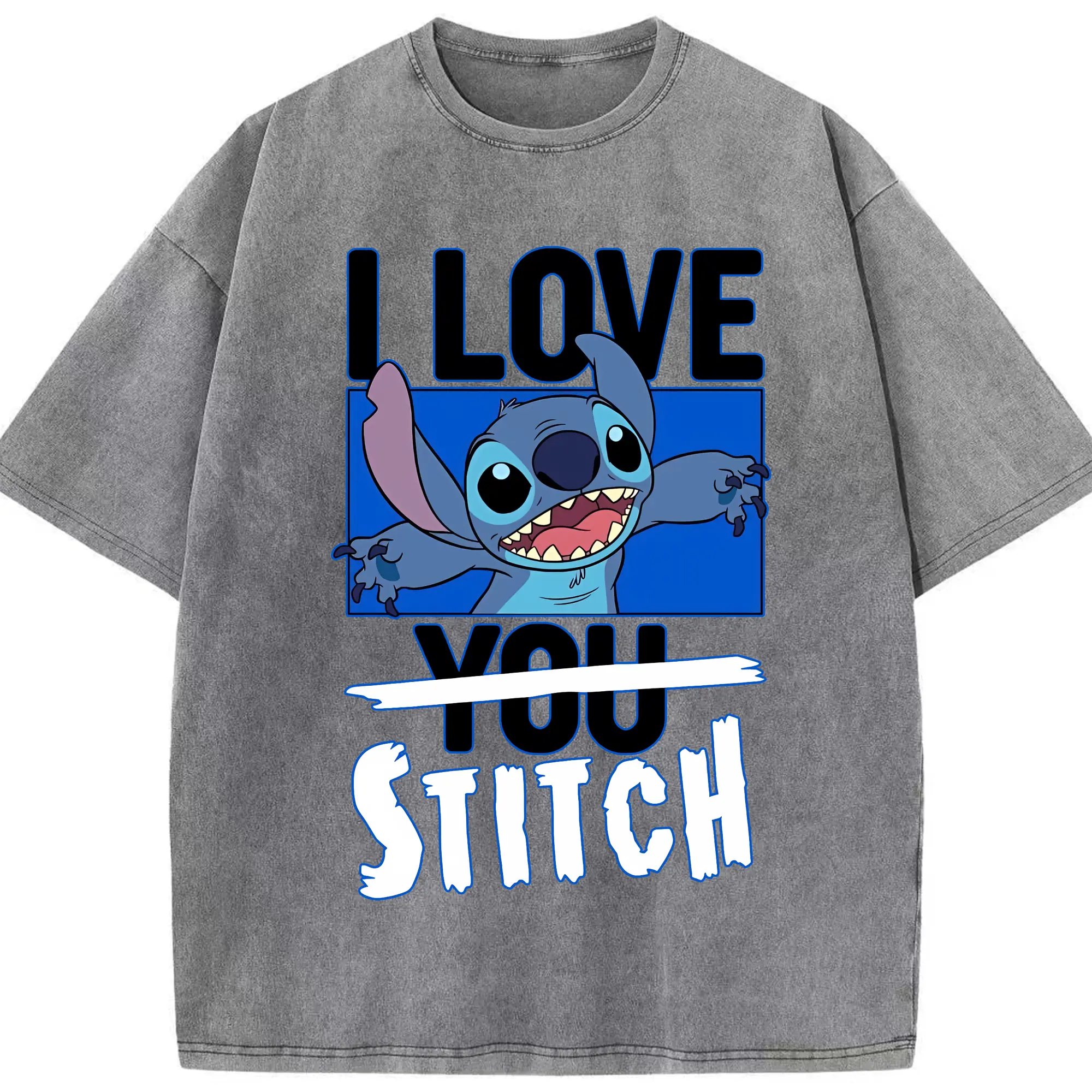 リロ&スティッチ グッズ スティッチ - 綿100% ヴィンテージ風 半袖Tシャツ ・ フロントプリント ・ 柔らか肌触り ・ 通気性 快適 ・ スポーツ カジュアル 外出用