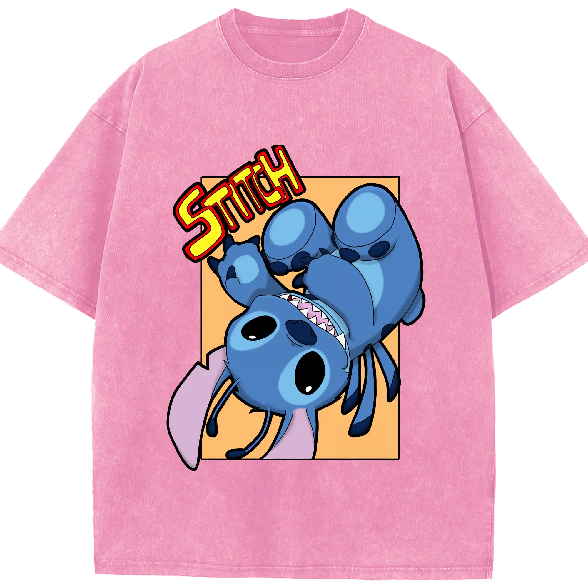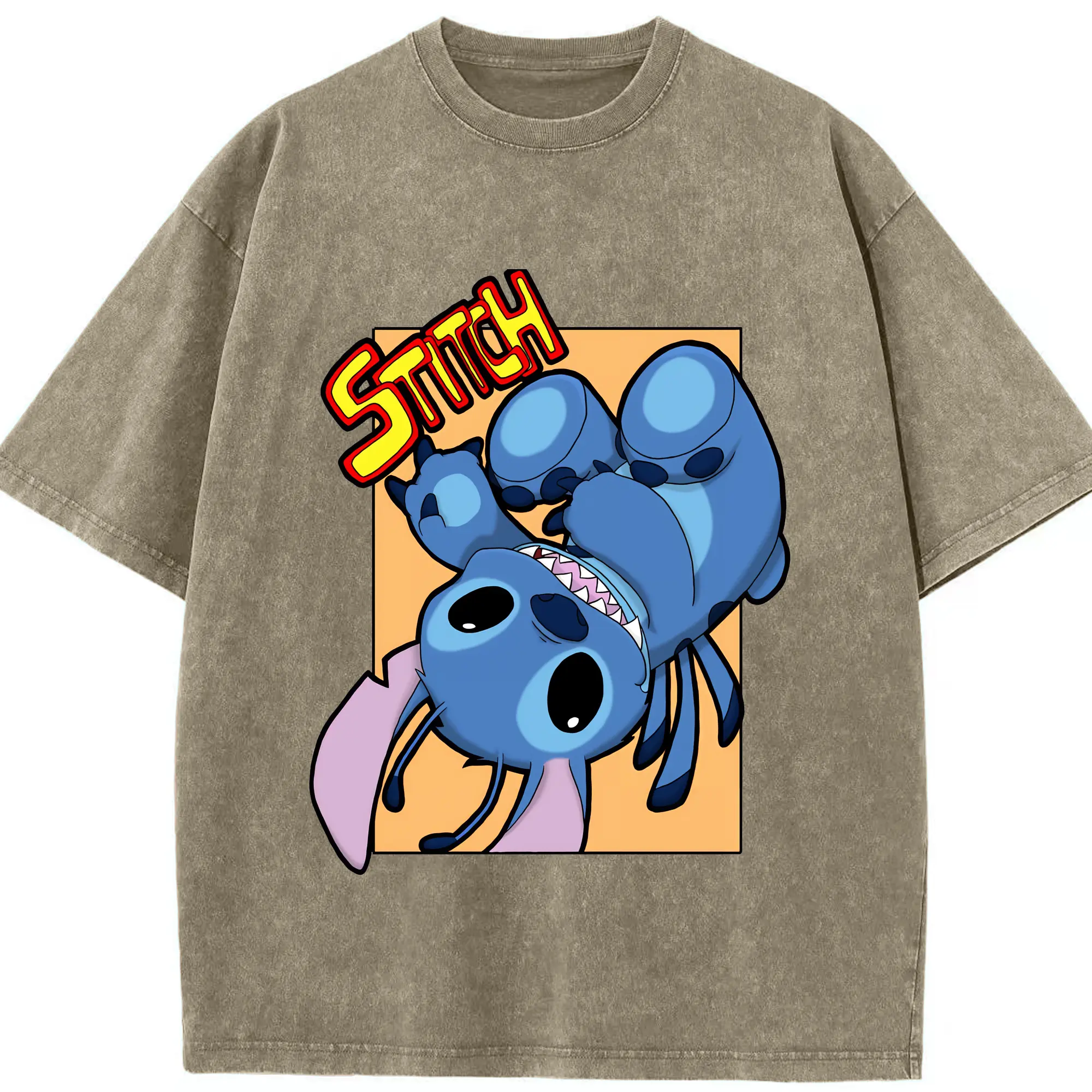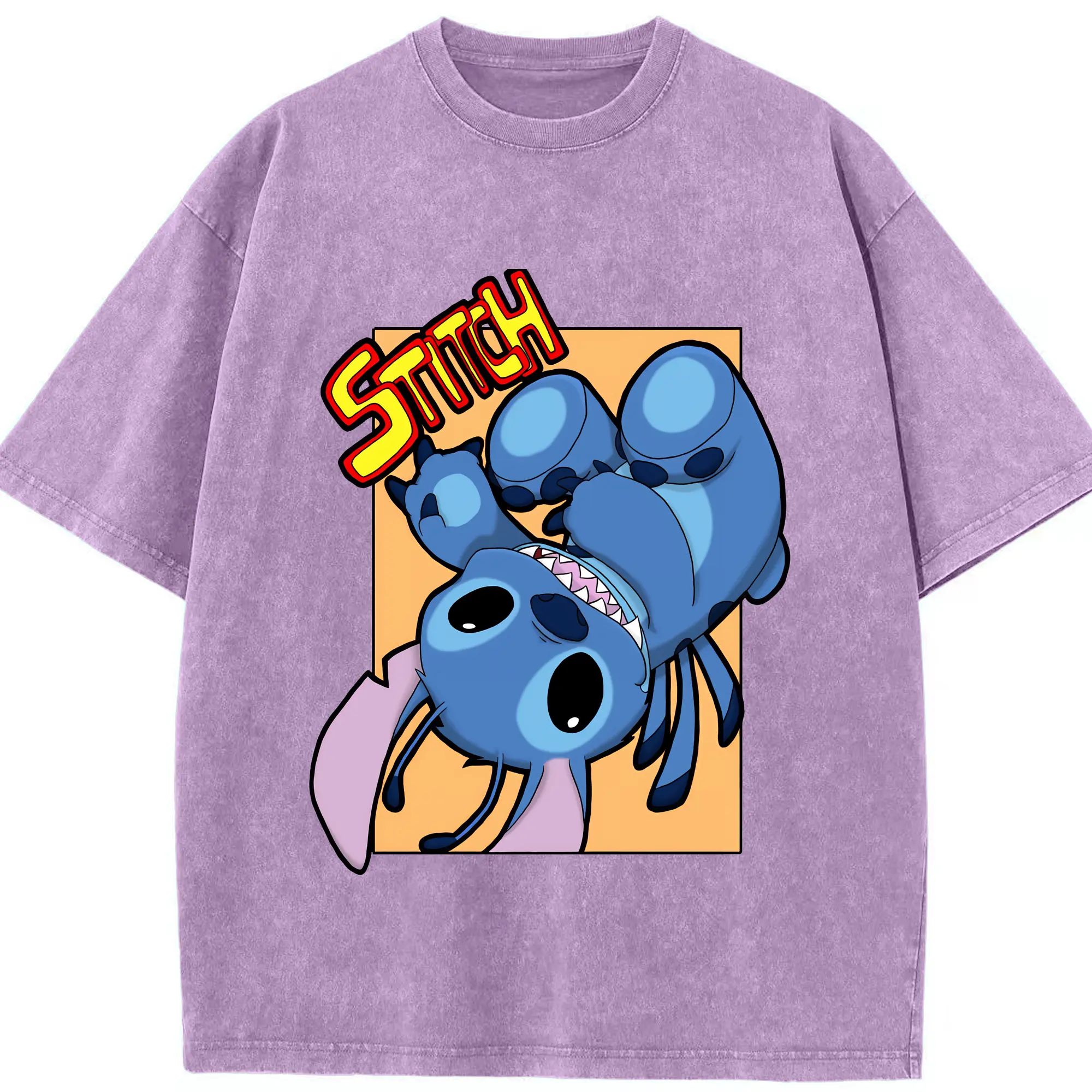 リロ&スティッチ グッズ スティッチ - 綿100% ヴィンテージ風 半袖Tシャツ ・ 背面プリント ・ 柔らか肌触り ・ 通気性 快適 ・ スポーツ カジュアル 外出用