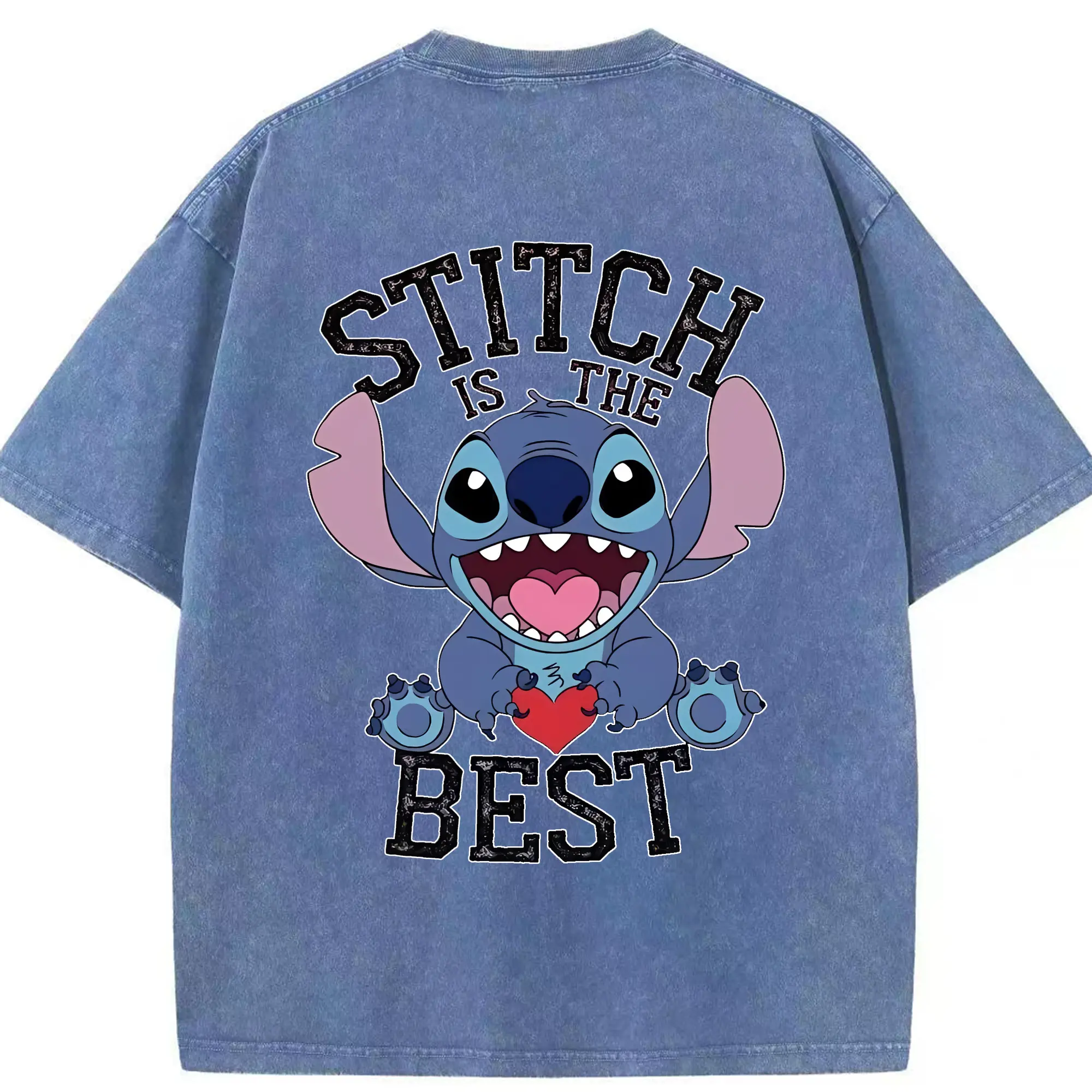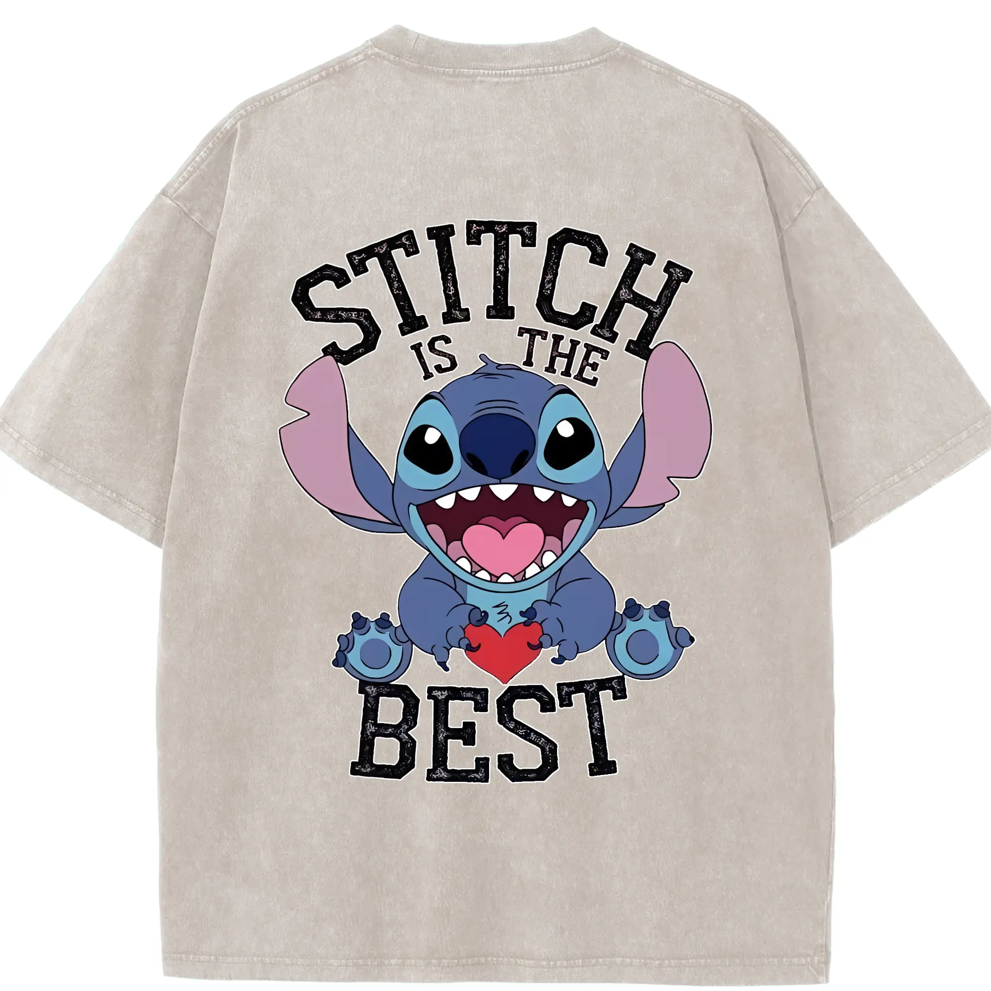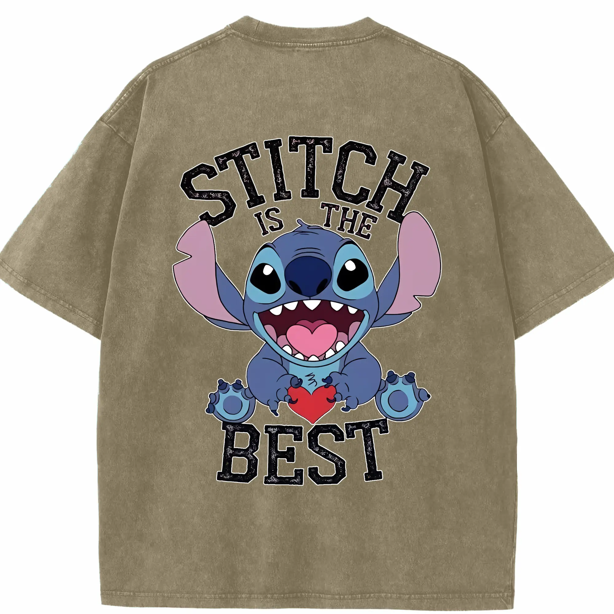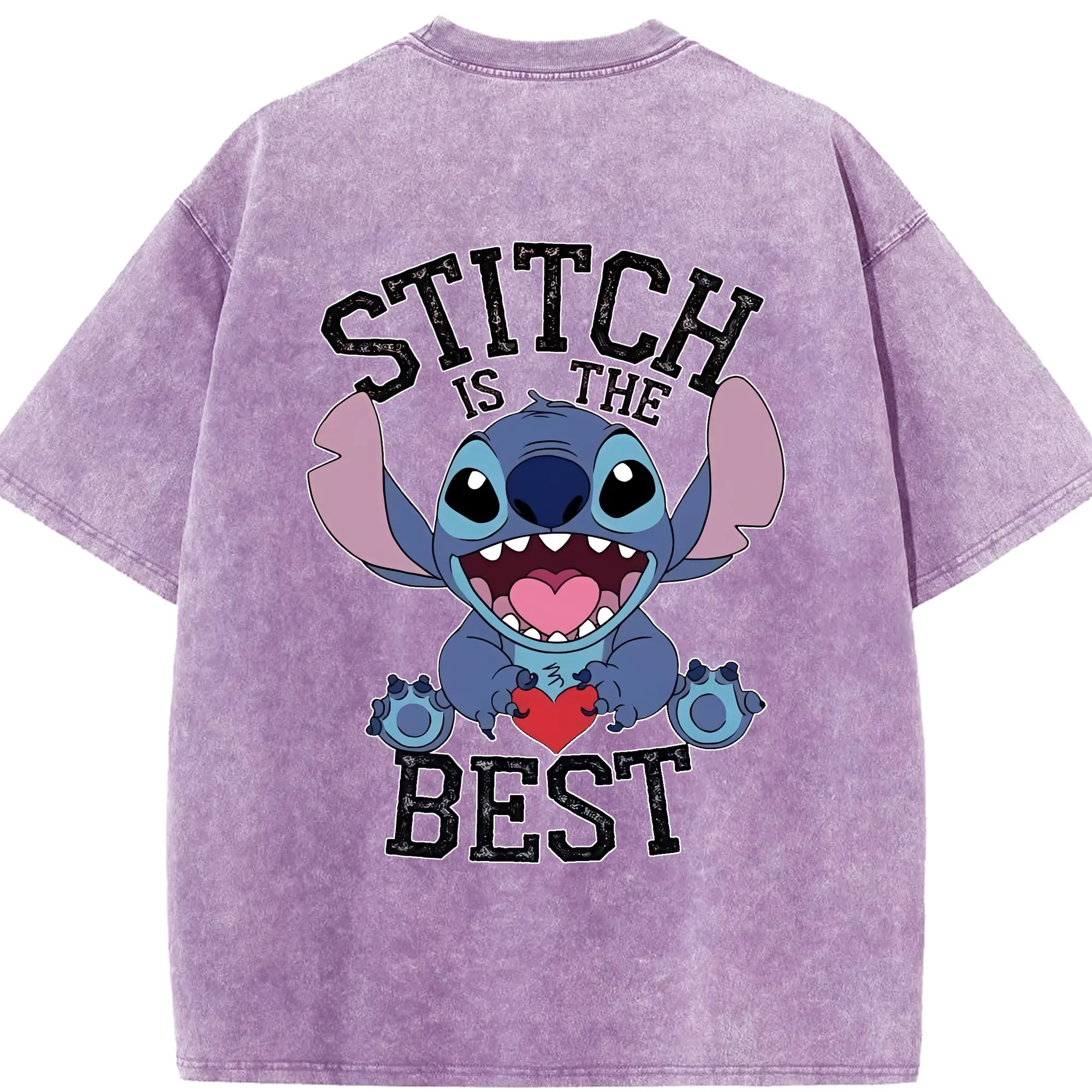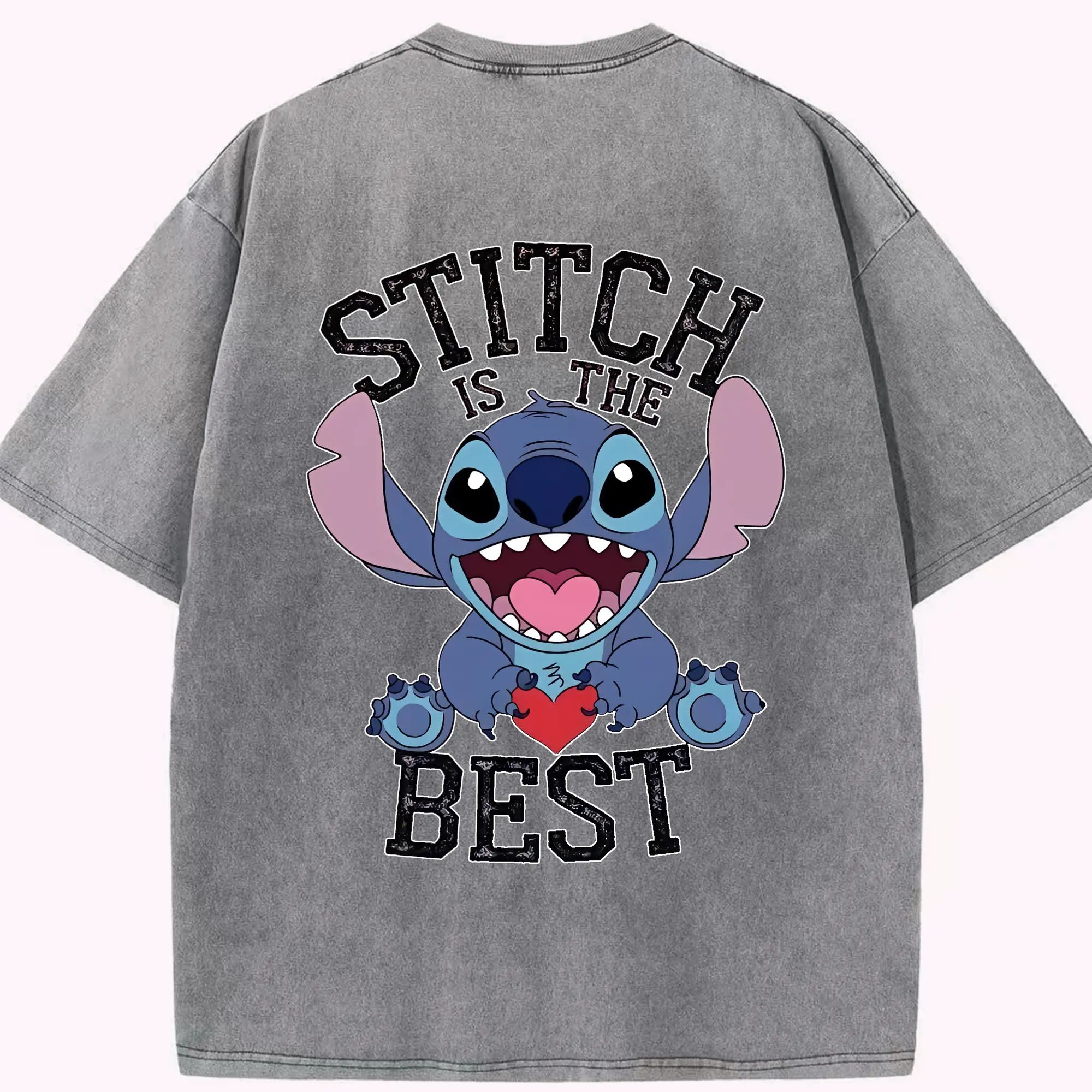 リロ&スティッチ グッズ スティッチ - 綿100% ヴィンテージ風 半袖Tシャツ ・ フロントプリント ・ 柔らか肌触り ・ 通気性 快適 ・ スポーツ カジュアル 外出用