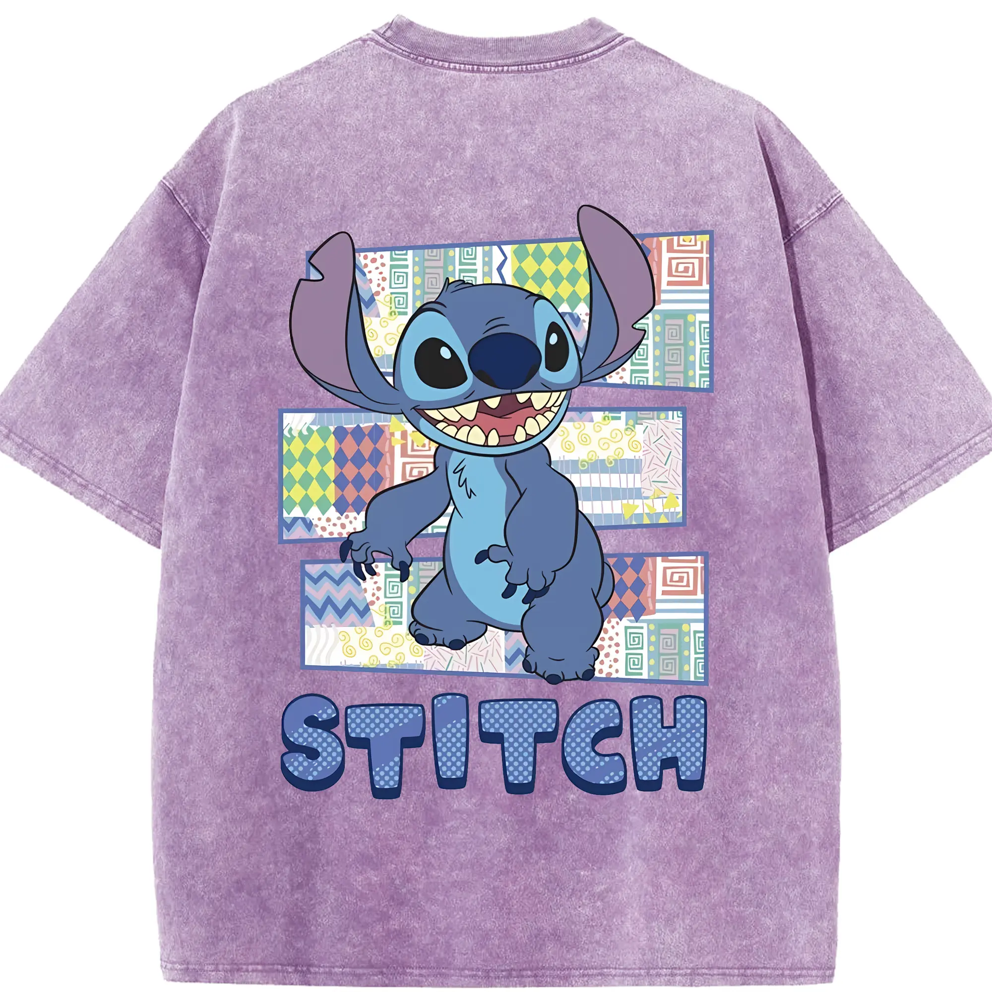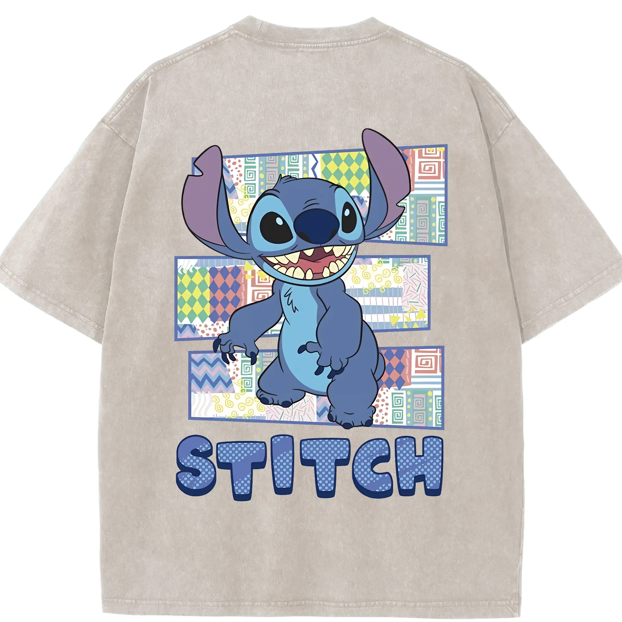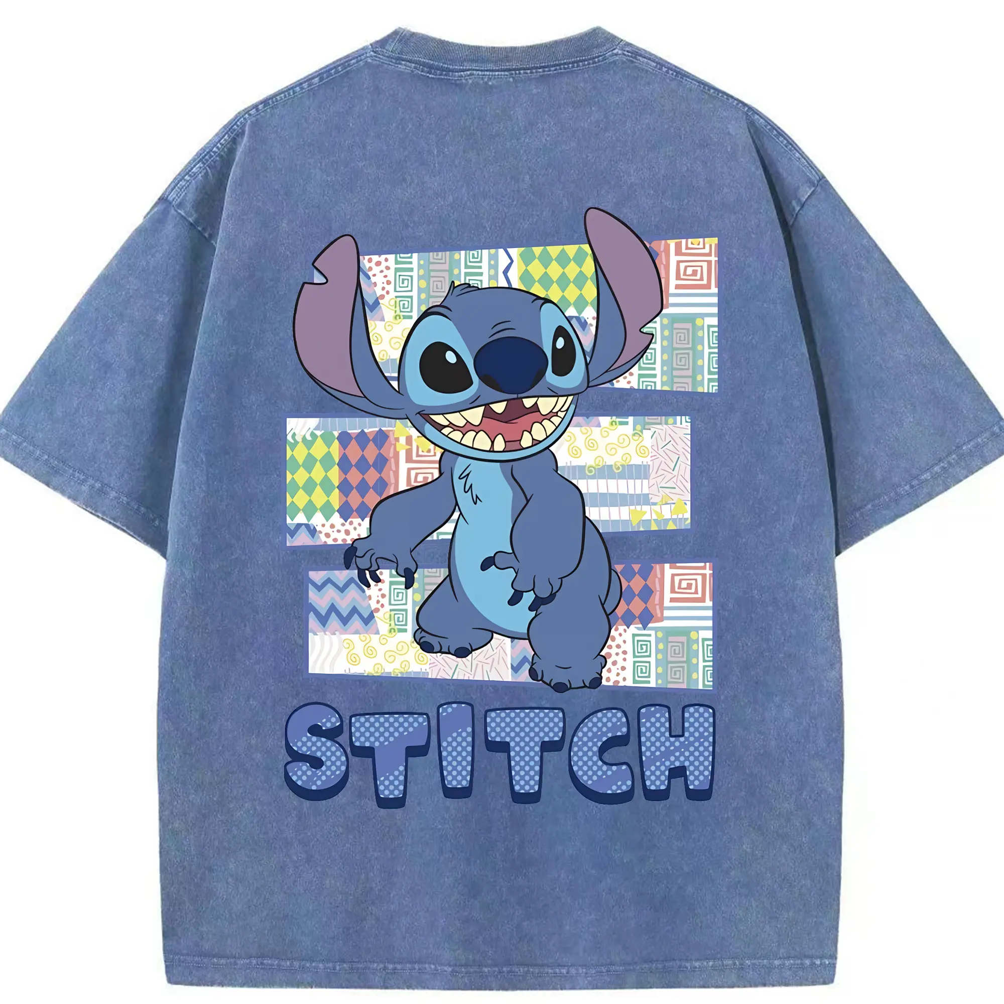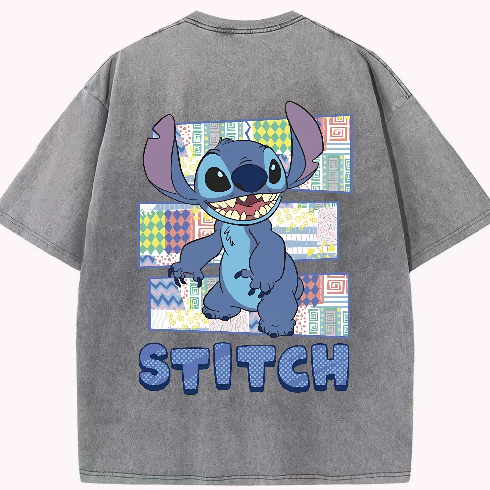 リロ&スティッチ グッズ スティッチ - 綿100% ヴィンテージ風 半袖Tシャツ ・ フロントプリント ・ 柔らか肌触り ・ 通気性 快適 ・ スポーツ カジュアル 外出用