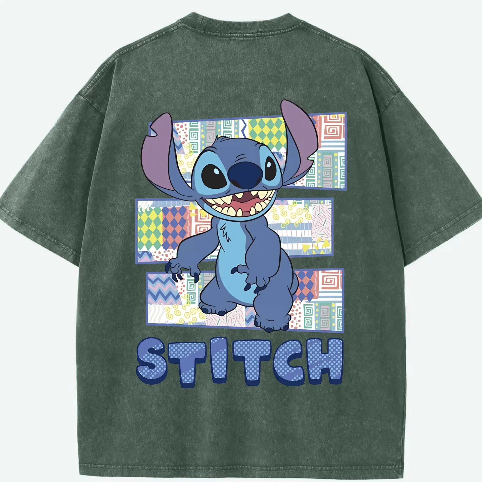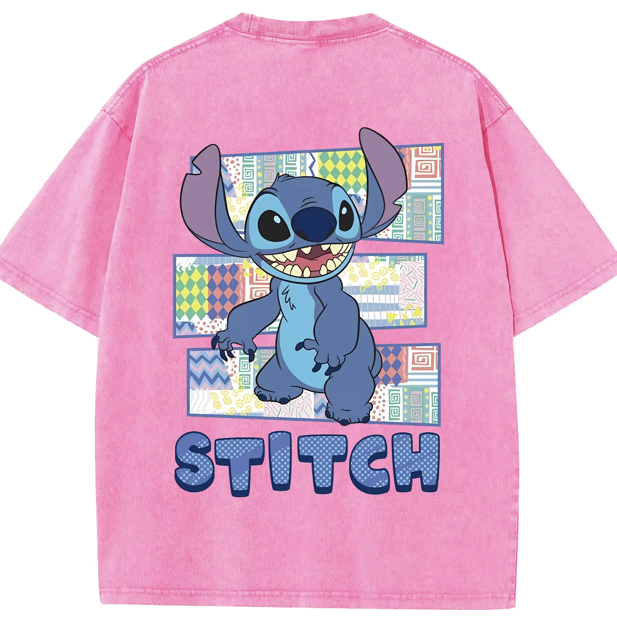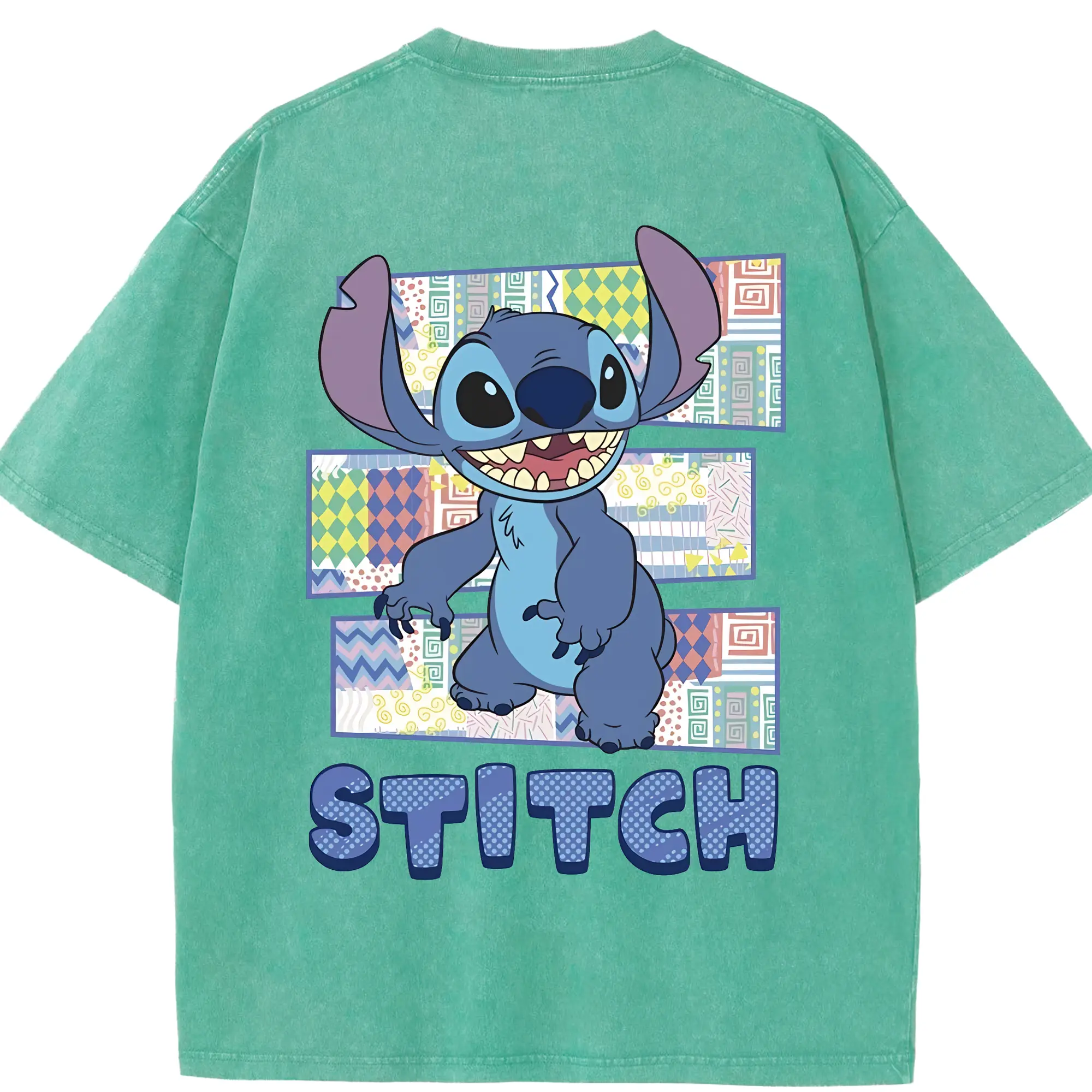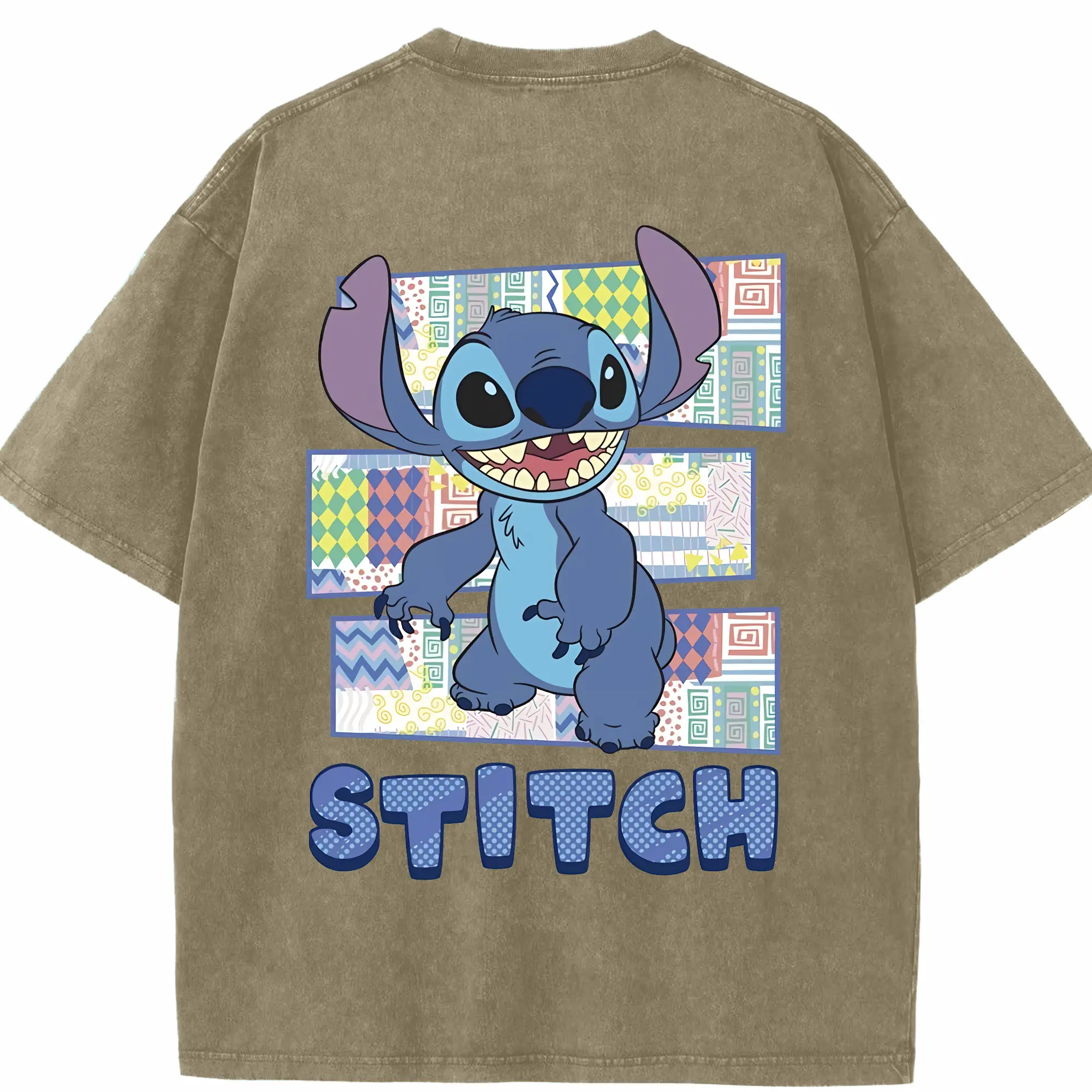 リロ&スティッチ グッズ スティッチ - 綿100% ヴィンテージ風 半袖Tシャツ ・ フロントプリント ・ 柔らか肌触り ・ 通気性 快適 ・ スポーツ カジュアル 外出用