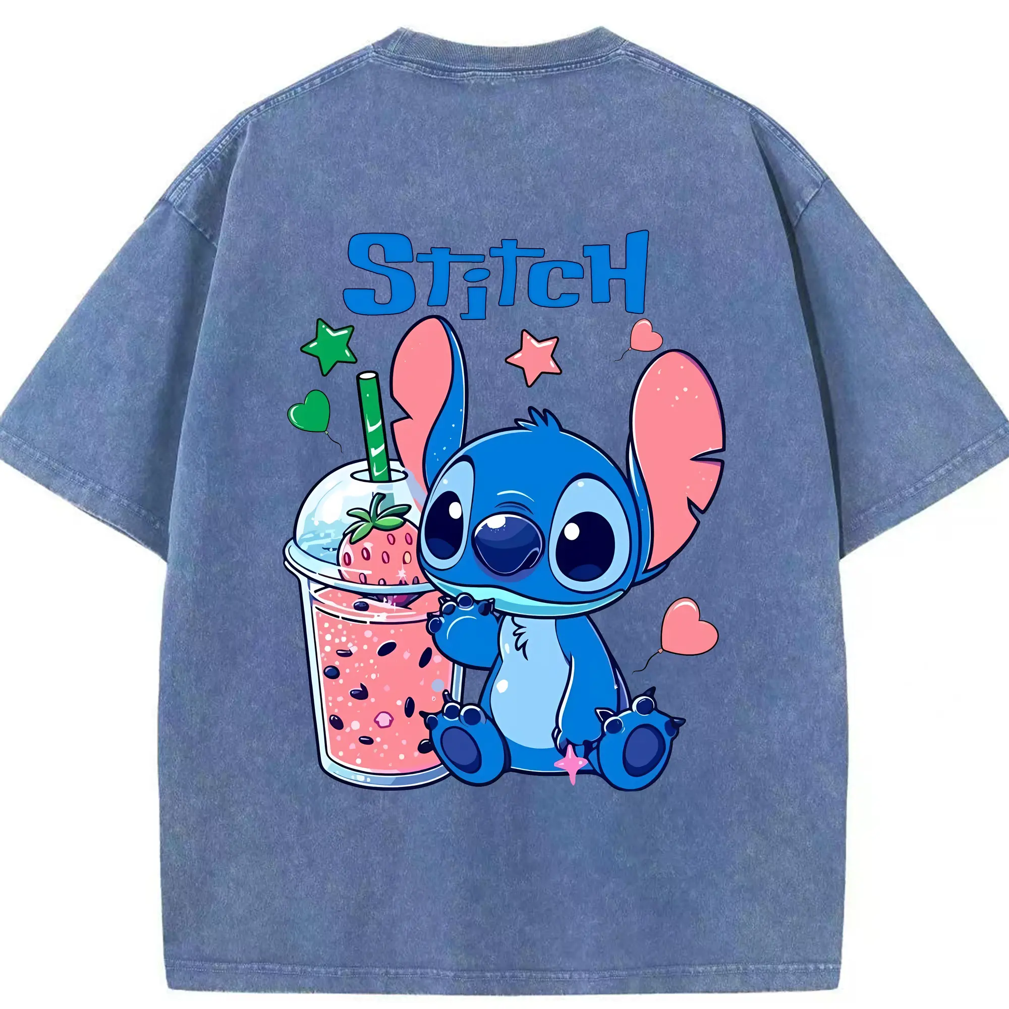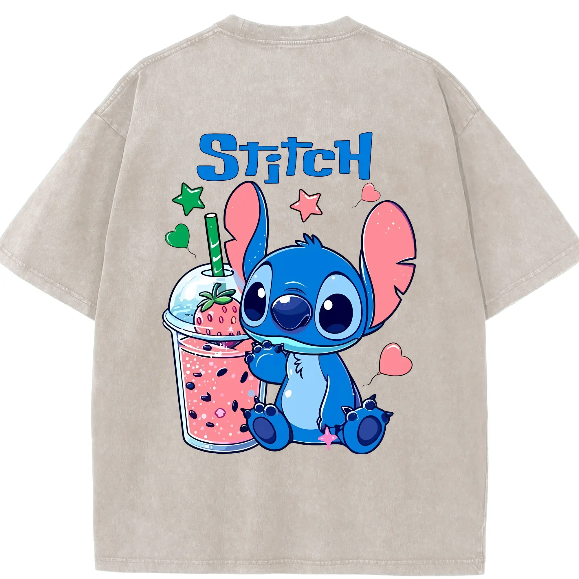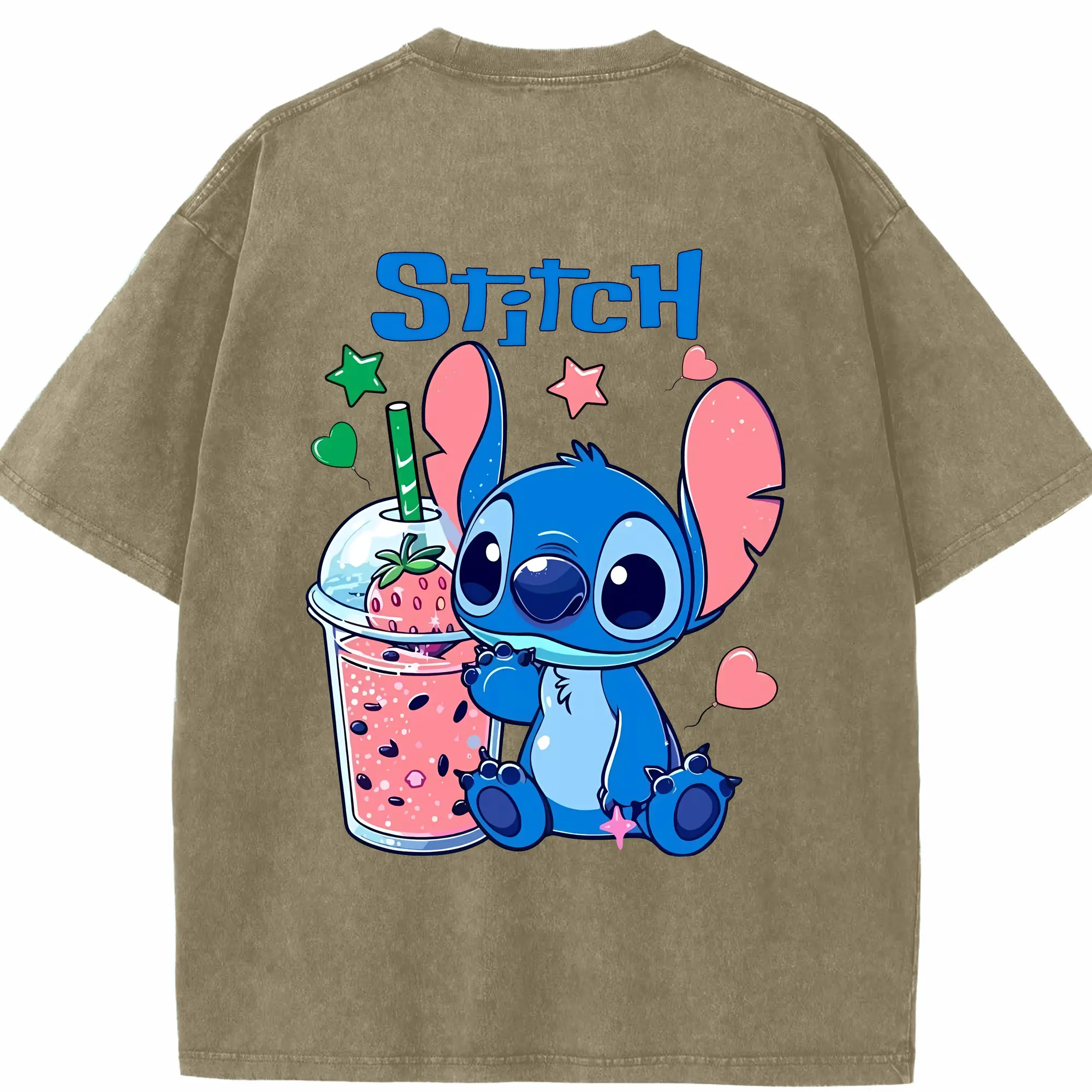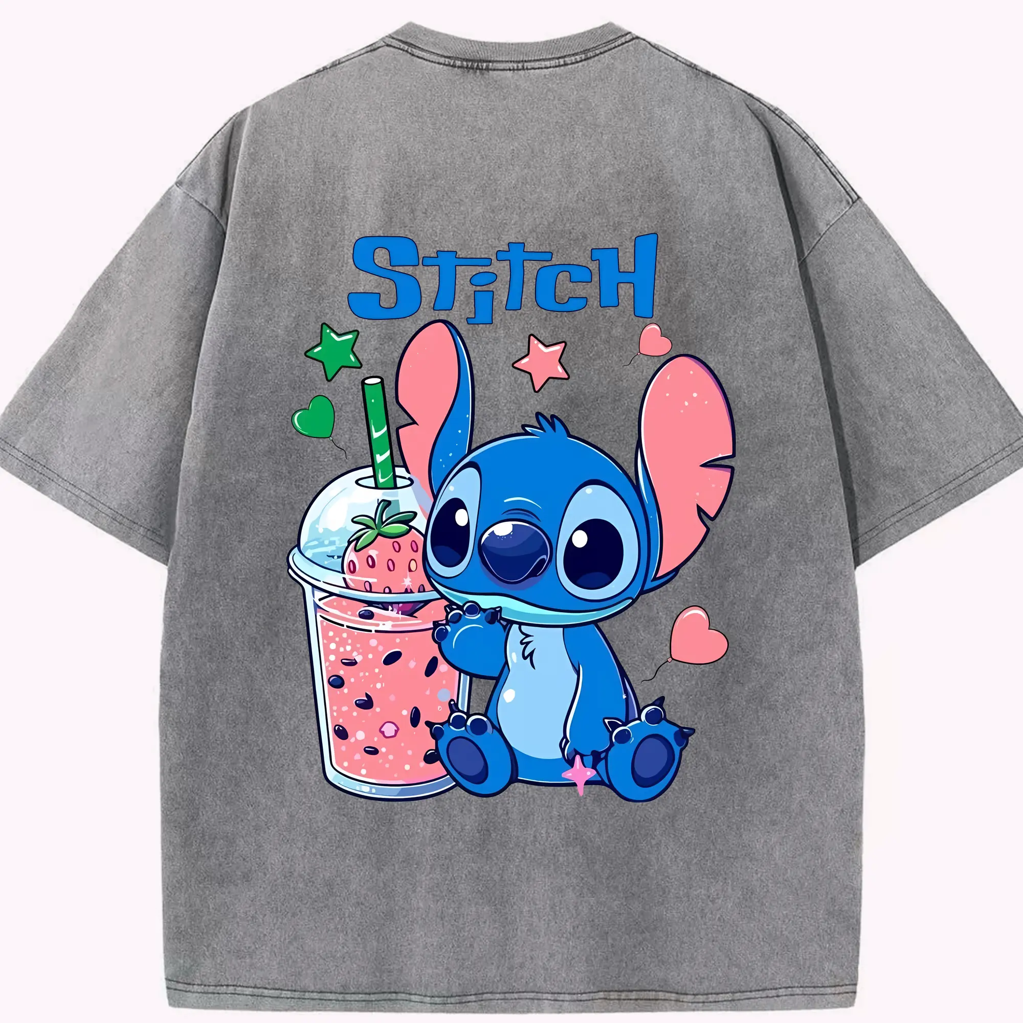 リロ&スティッチ グッズ スティッチ - 綿100% ヴィンテージ風 半袖Tシャツ ・ フロントプリント ・ 柔らか肌触り ・ 通気性 快適 ・ スポーツ カジュアル 外出用