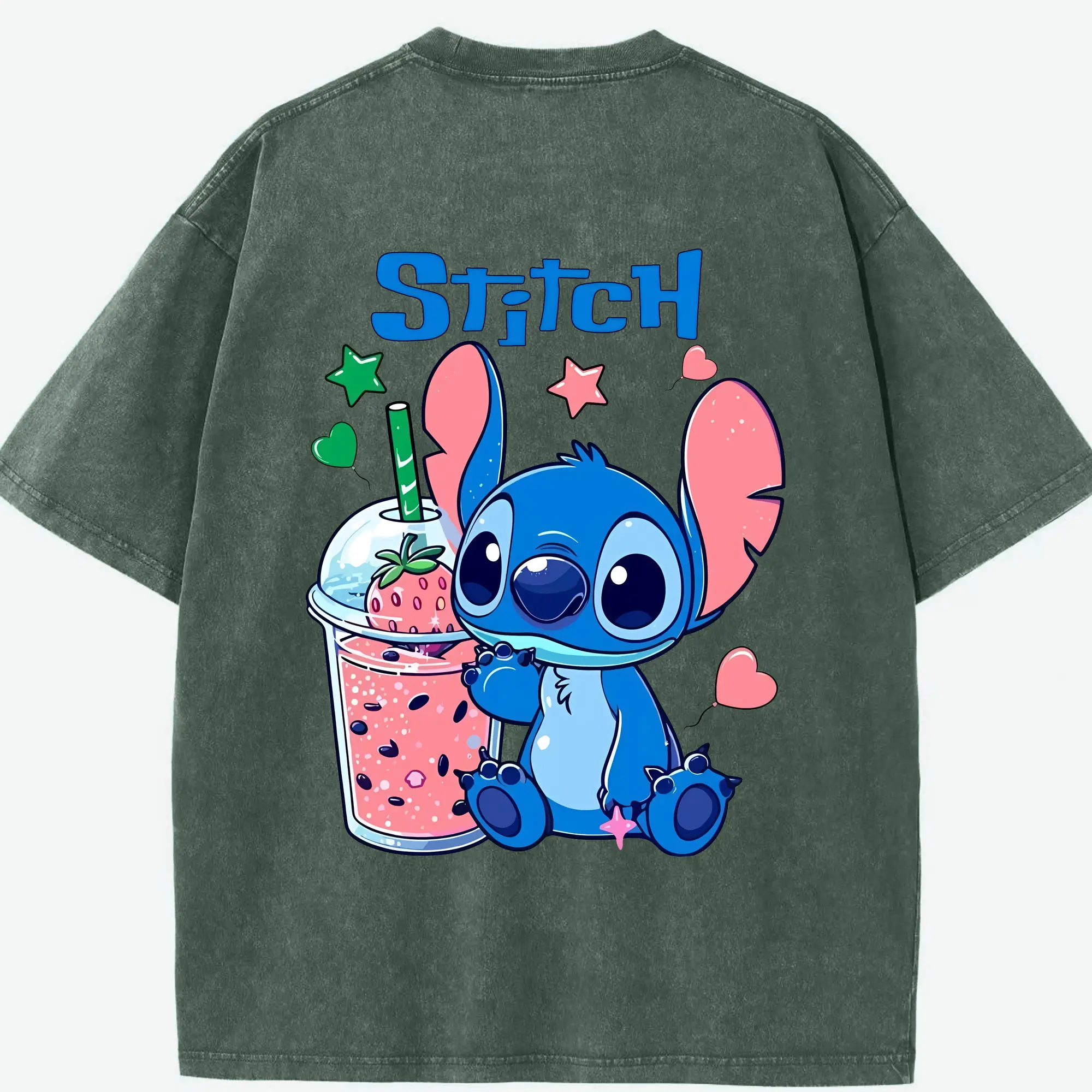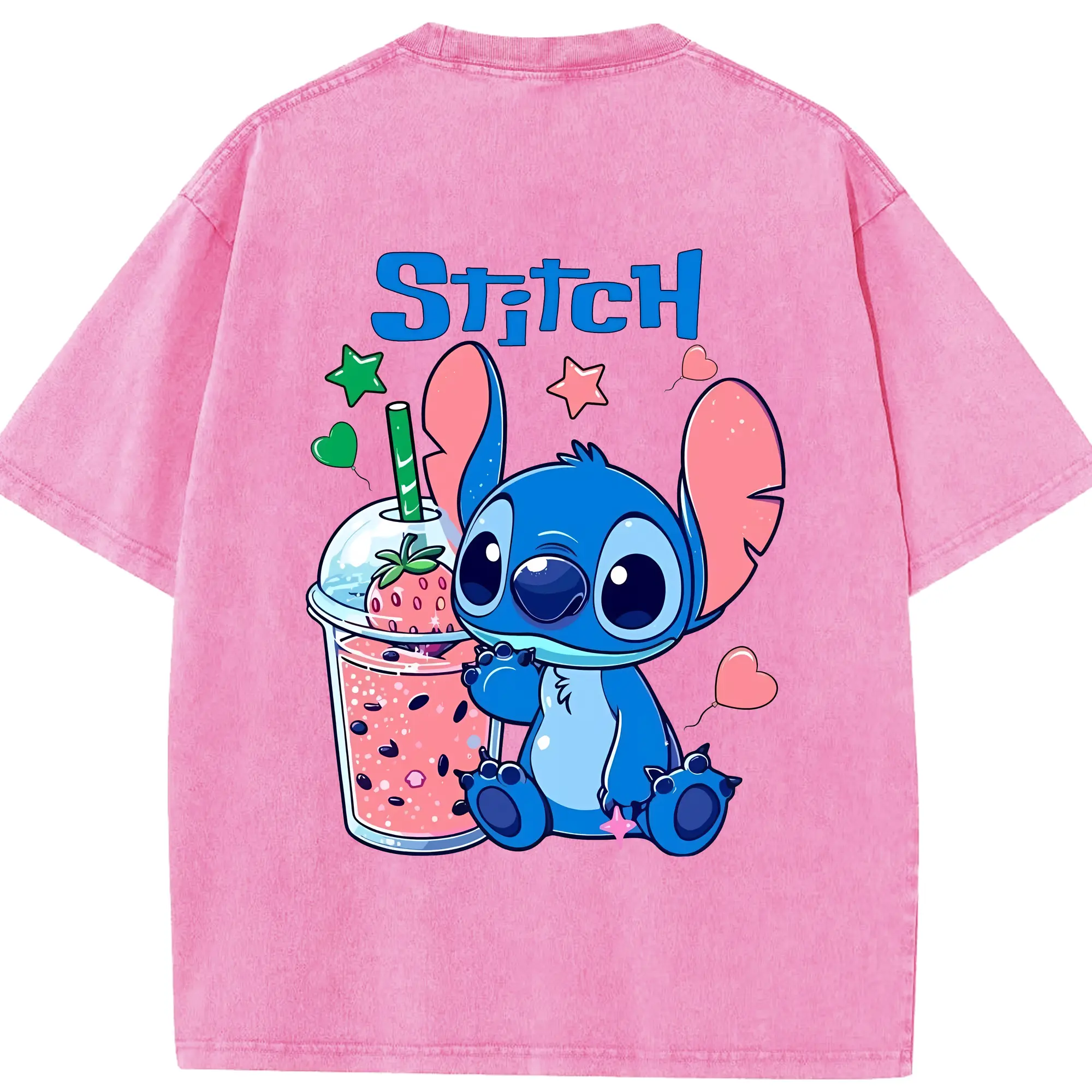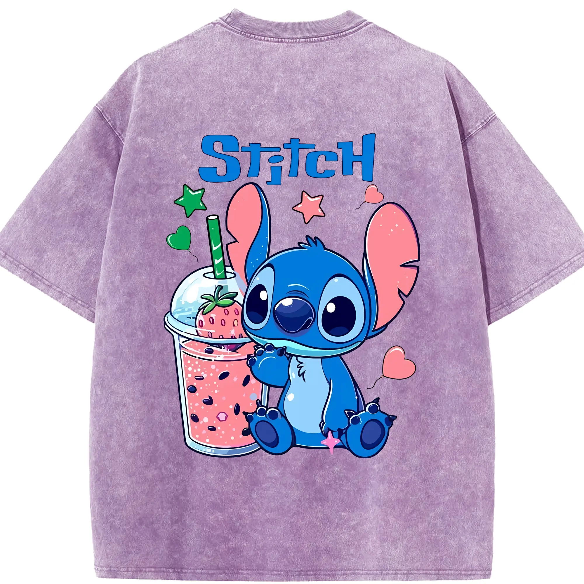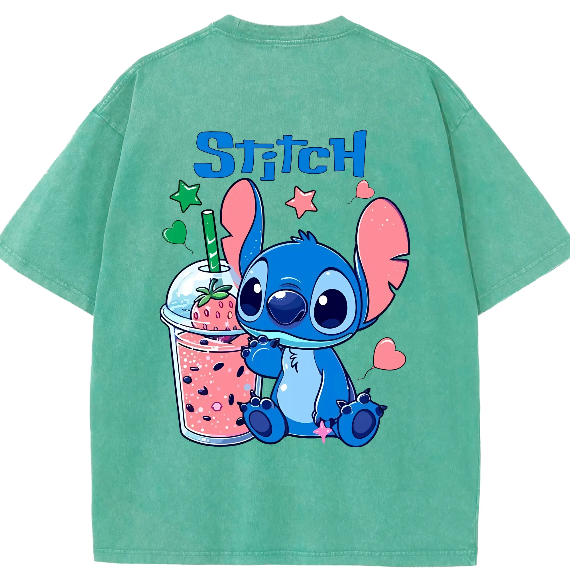 リロ&スティッチ グッズ スティッチ - 綿100% ヴィンテージ風 半袖Tシャツ ・ フロントプリント ・ 柔らか肌触り ・ 通気性 快適 ・ スポーツ カジュアル 外出用