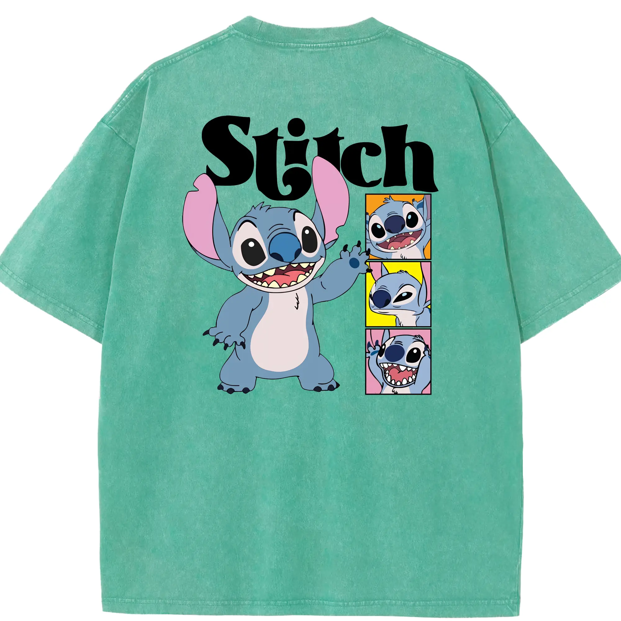 リロ&スティッチ グッズ スティッチ - 綿100% ヴィンテージ風 半袖Tシャツ ・ フロントプリント ・ 柔らか肌触り ・ 通気性 快適 ・ スポーツ カジュアル 外出用