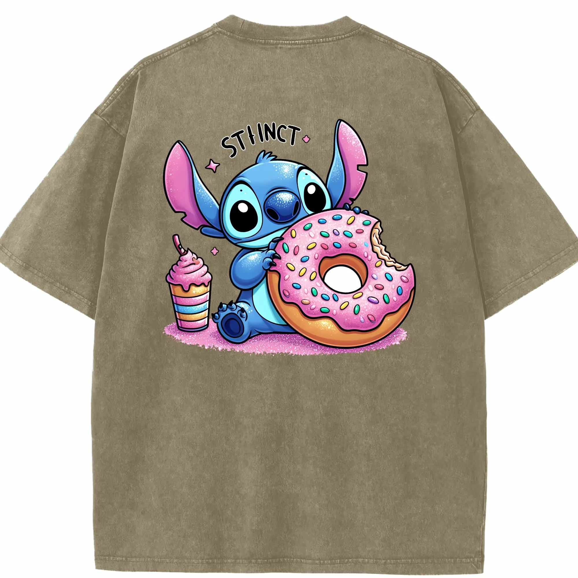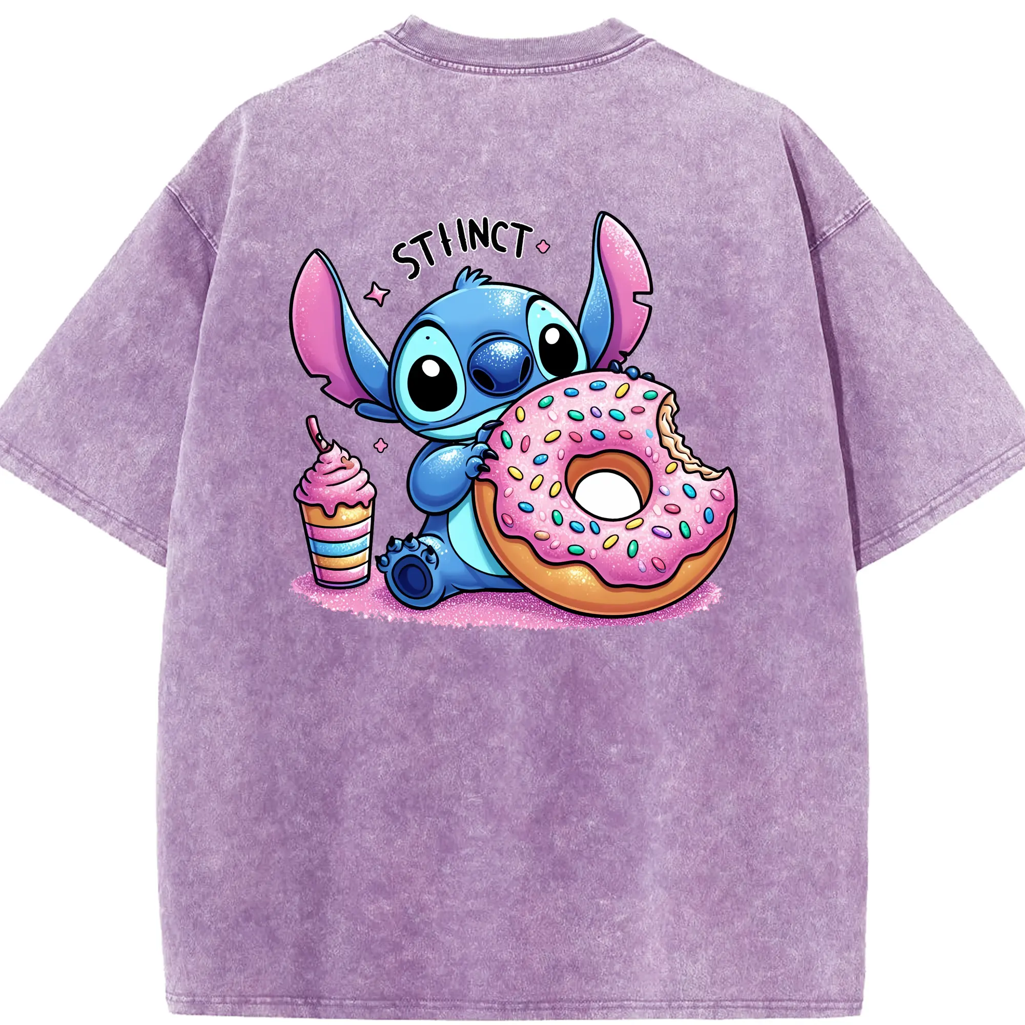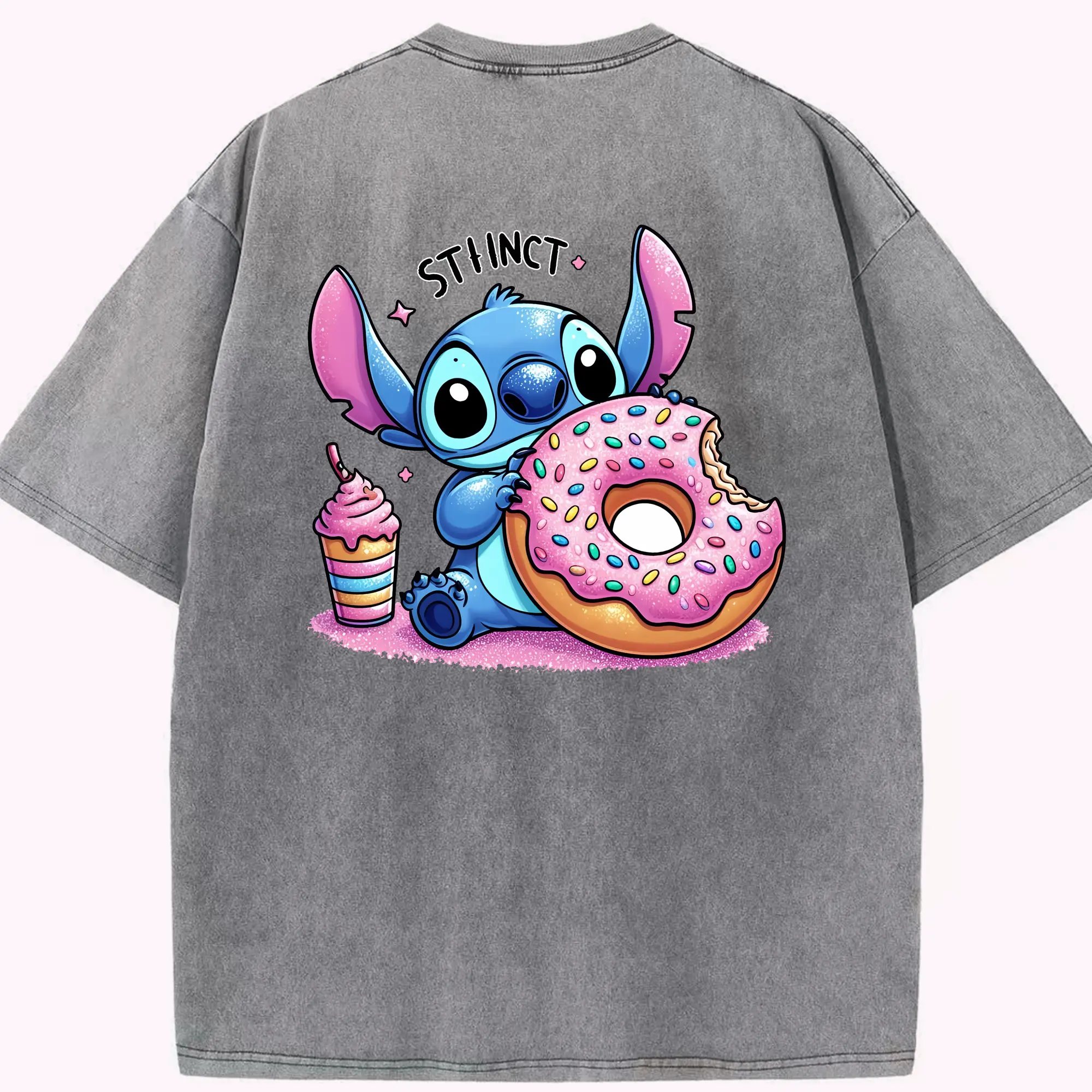 リロ&スティッチ グッズ スティッチ - 綿100% ヴィンテージ風 半袖Tシャツ ・ フロントプリント ・ 柔らか肌触り ・ 通気性 快適 ・ スポーツ カジュアル 外出用