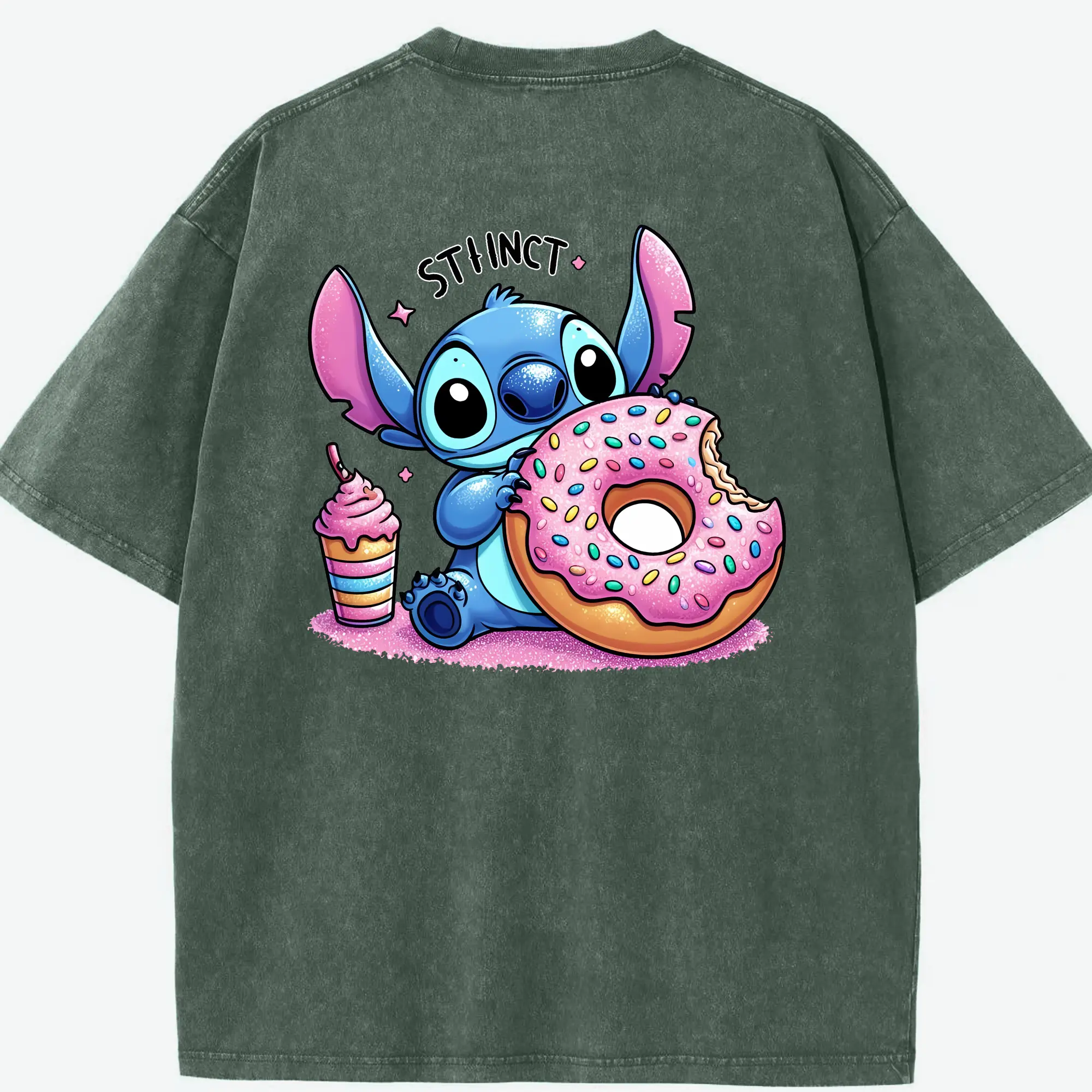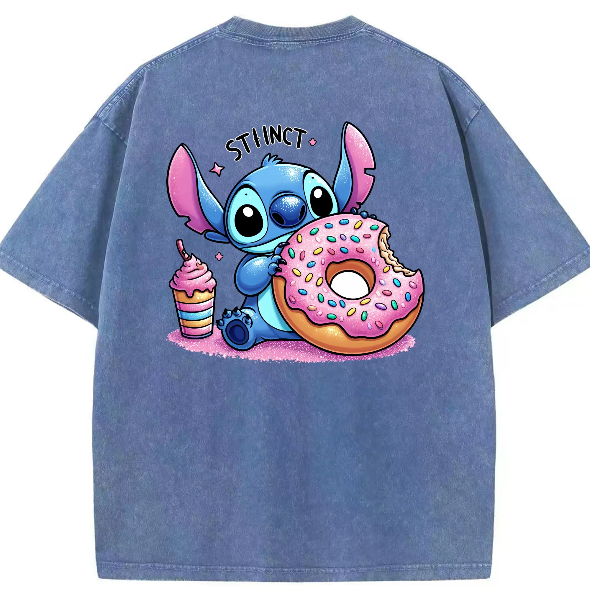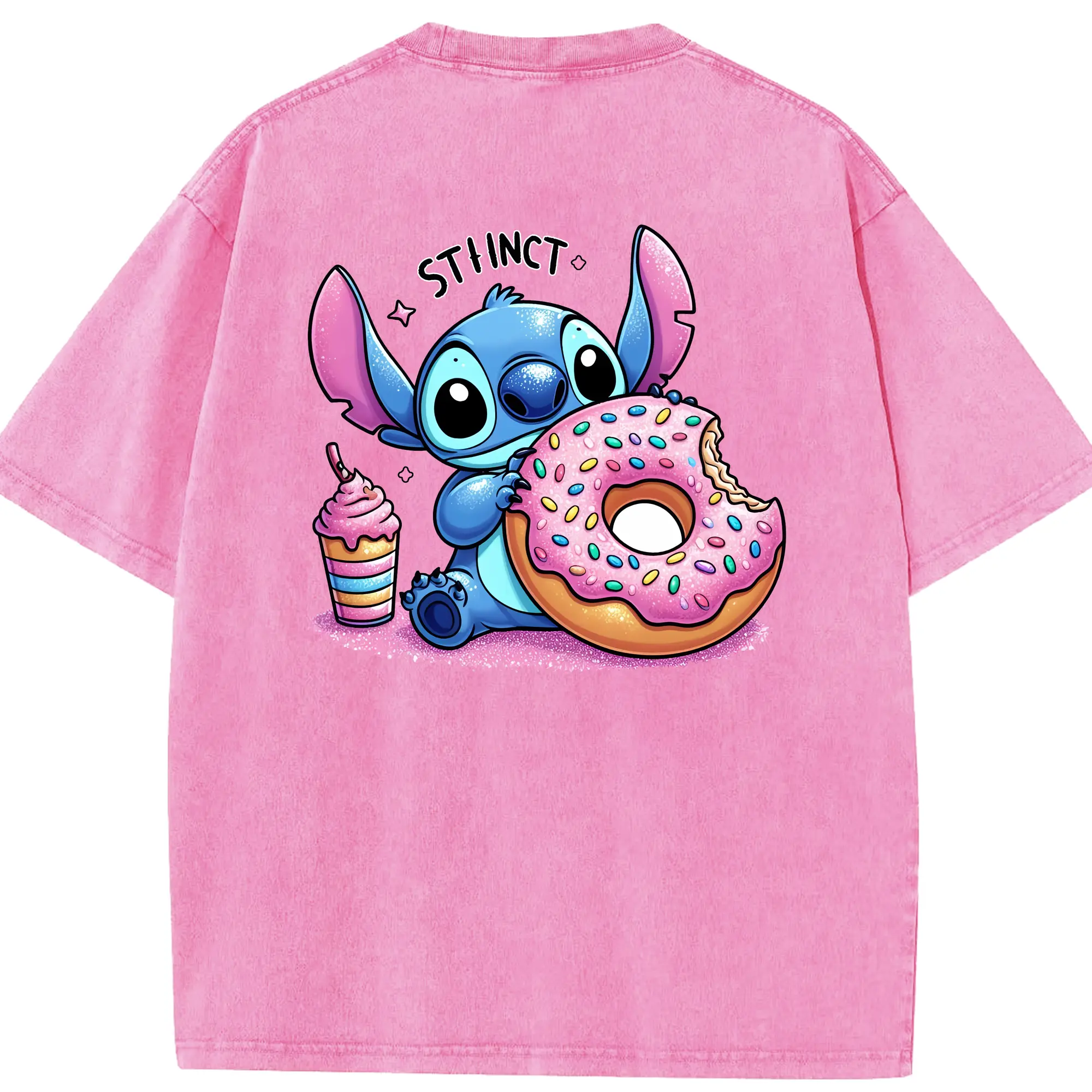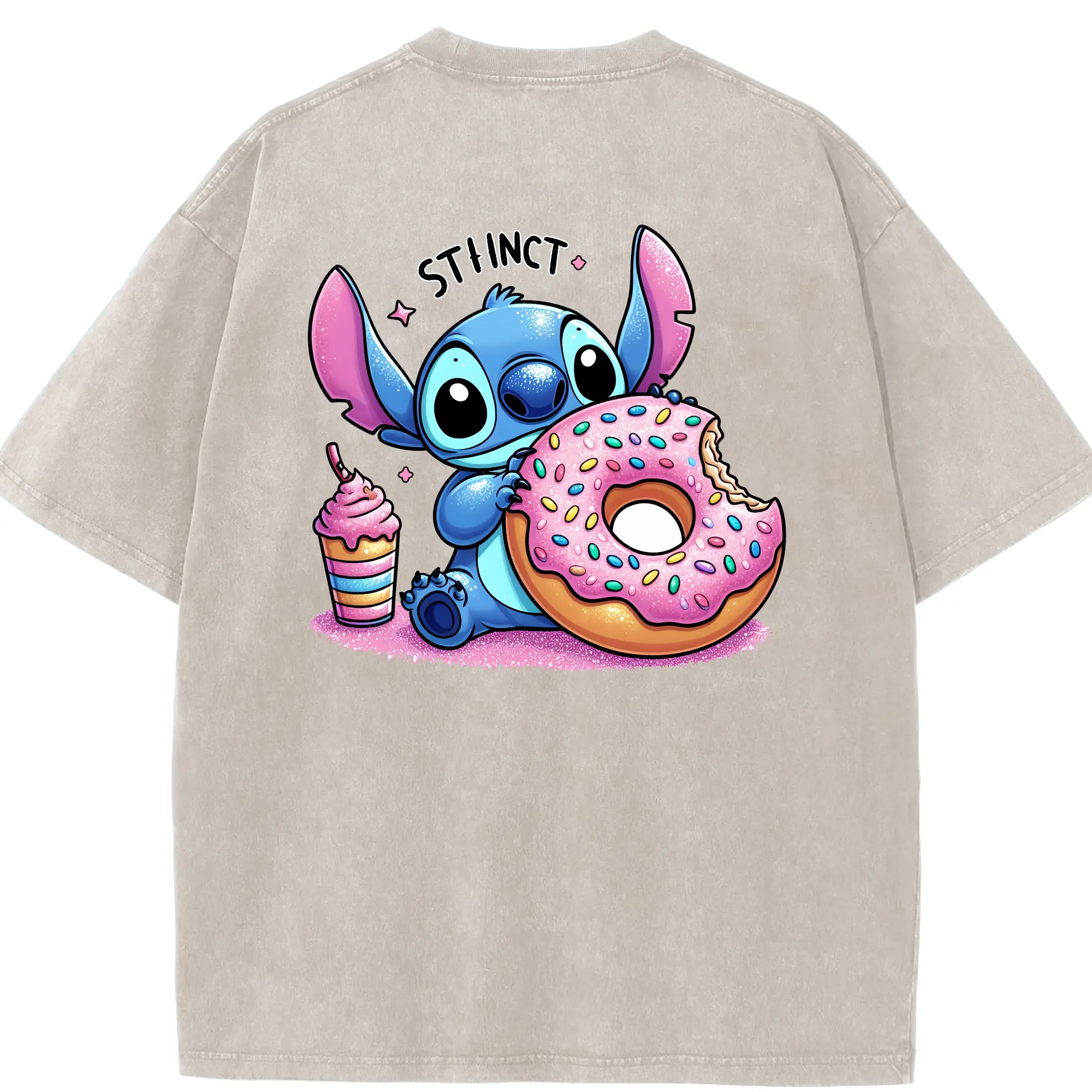 リロ&スティッチ グッズ スティッチ - 綿100% ヴィンテージ風 半袖Tシャツ ・ フロントプリント ・ 柔らか肌触り ・ 通気性 快適 ・ スポーツ カジュアル 外出用