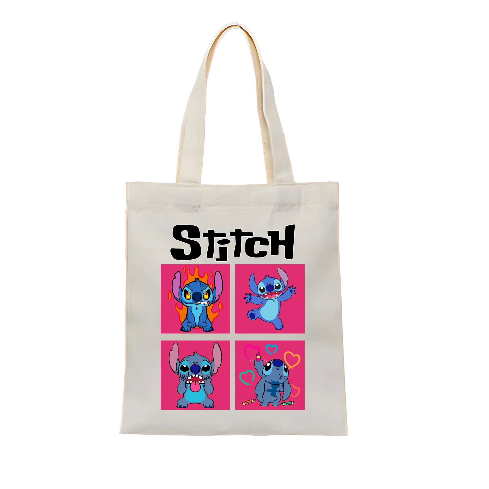 リロ&スティッチ グッズ スティッチ - 縦型キャンバス手提げバッグ(トートバッグ) ・ キャンバス素材 ・ ショッピング用 ・ 軽量 丈夫 お手入れ簡単