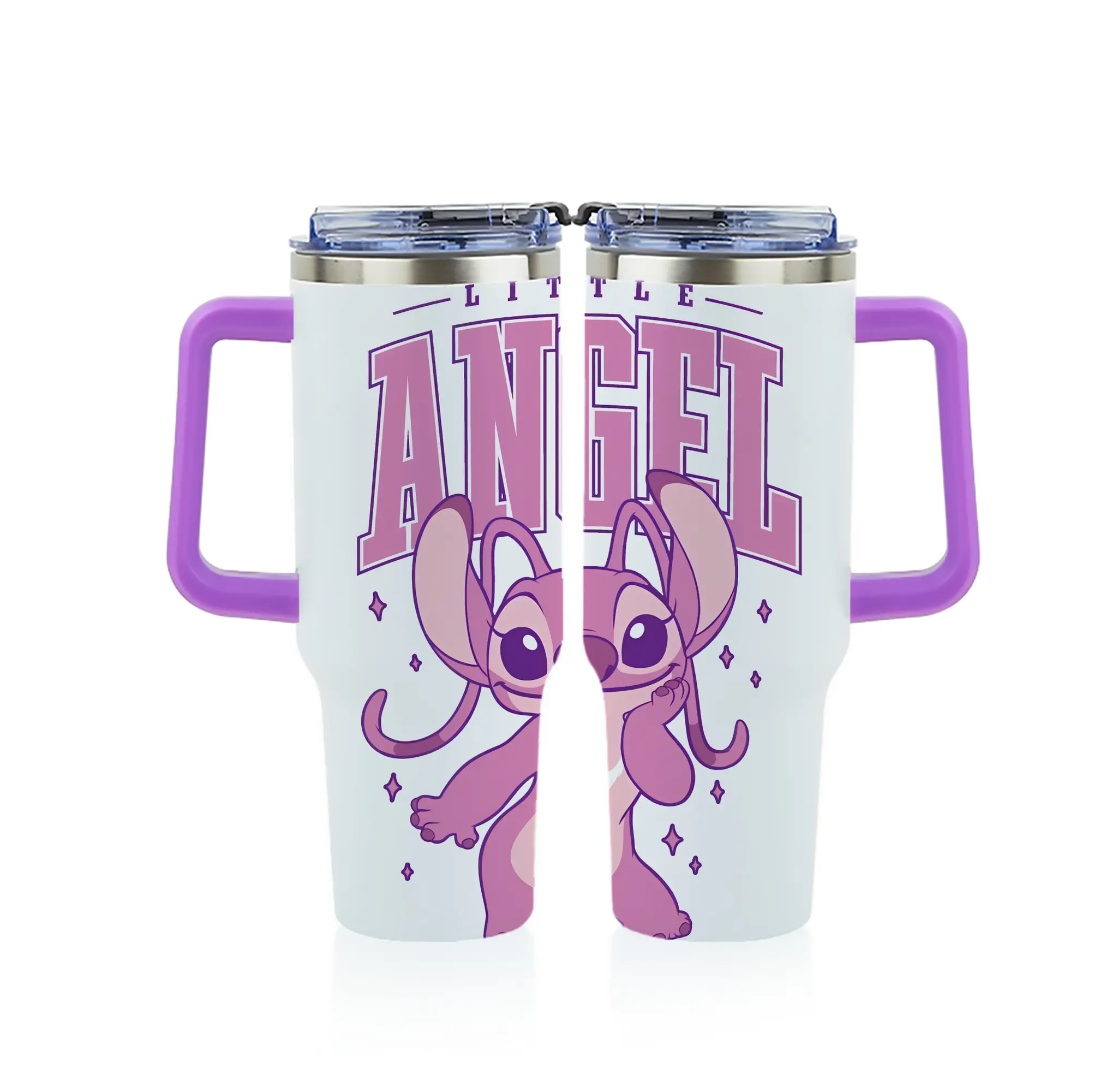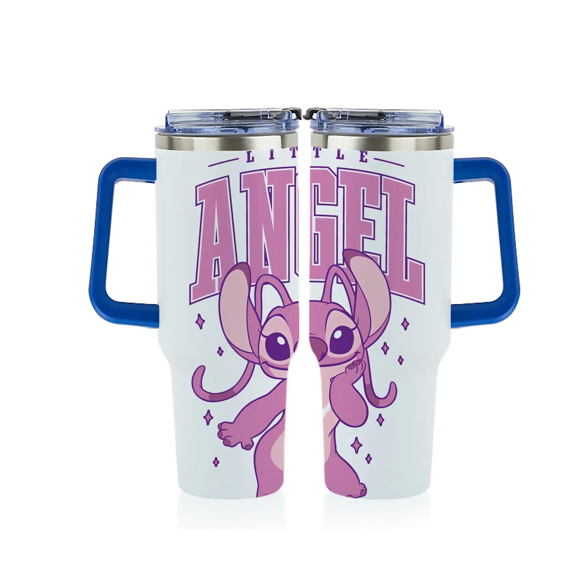 リロ&スティッチ グッズ エンジェル - 1200mL フルプリント車用タンブラー ・ 304ステンレス 内側 ・ 201ステンレス 外側 ・ 保温 保冷 ・ 通勤 ドライブ アウトドア用