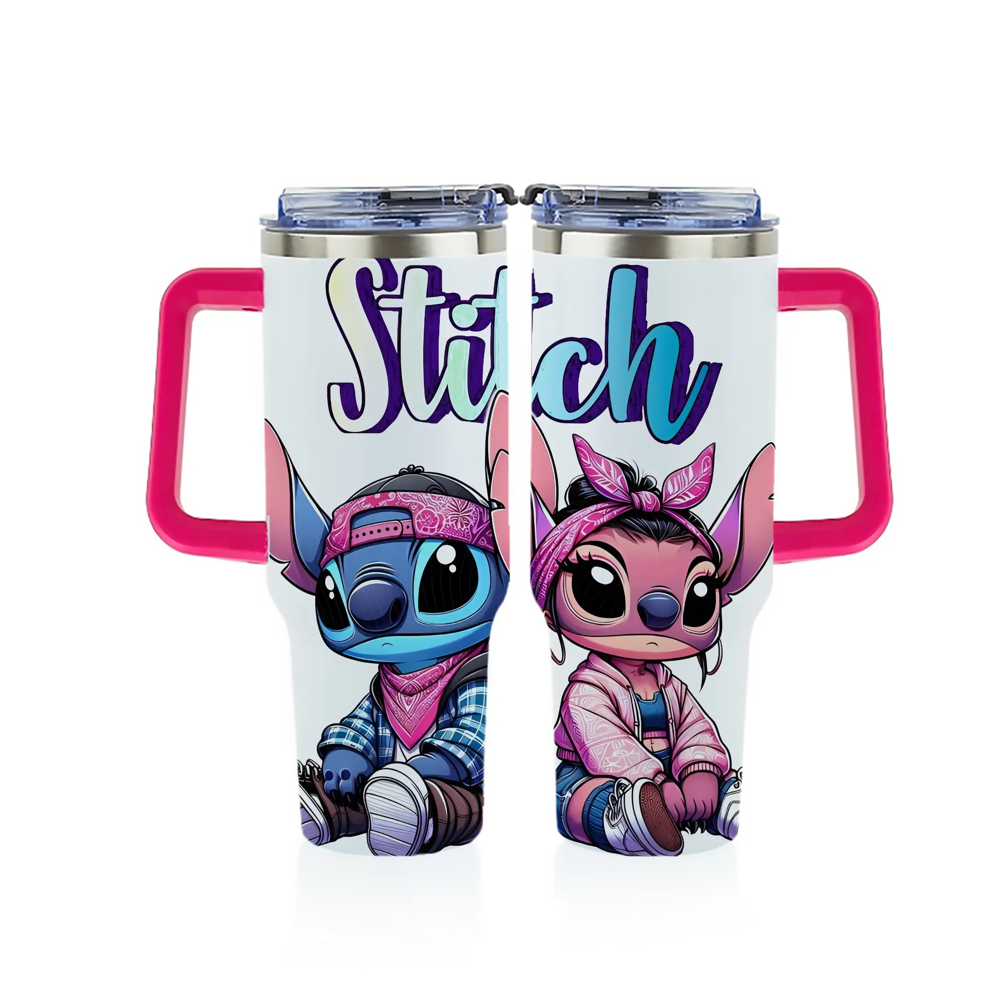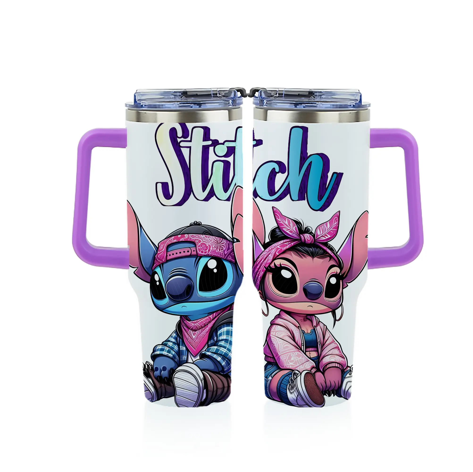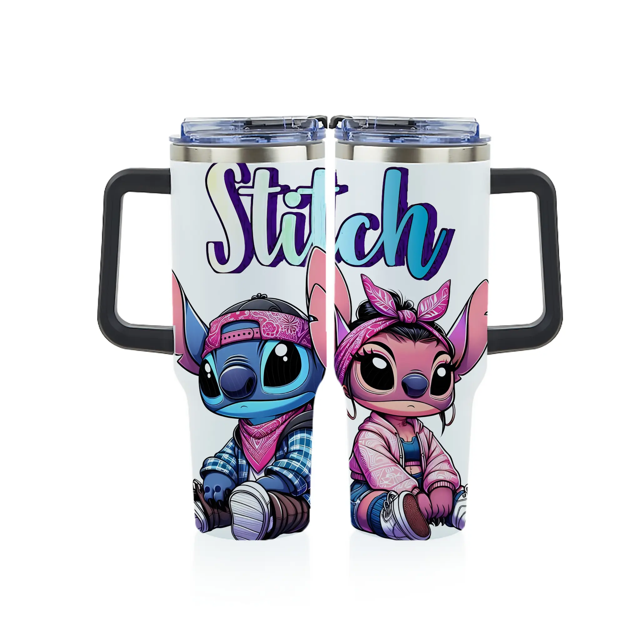 リロ&スティッチ グッズ エンジェル - 1200mL フルプリント車用タンブラー ・ 304ステンレス 内側 ・ 201ステンレス 外側 ・ 保温 保冷 ・ 通勤 ドライブ アウトドア用