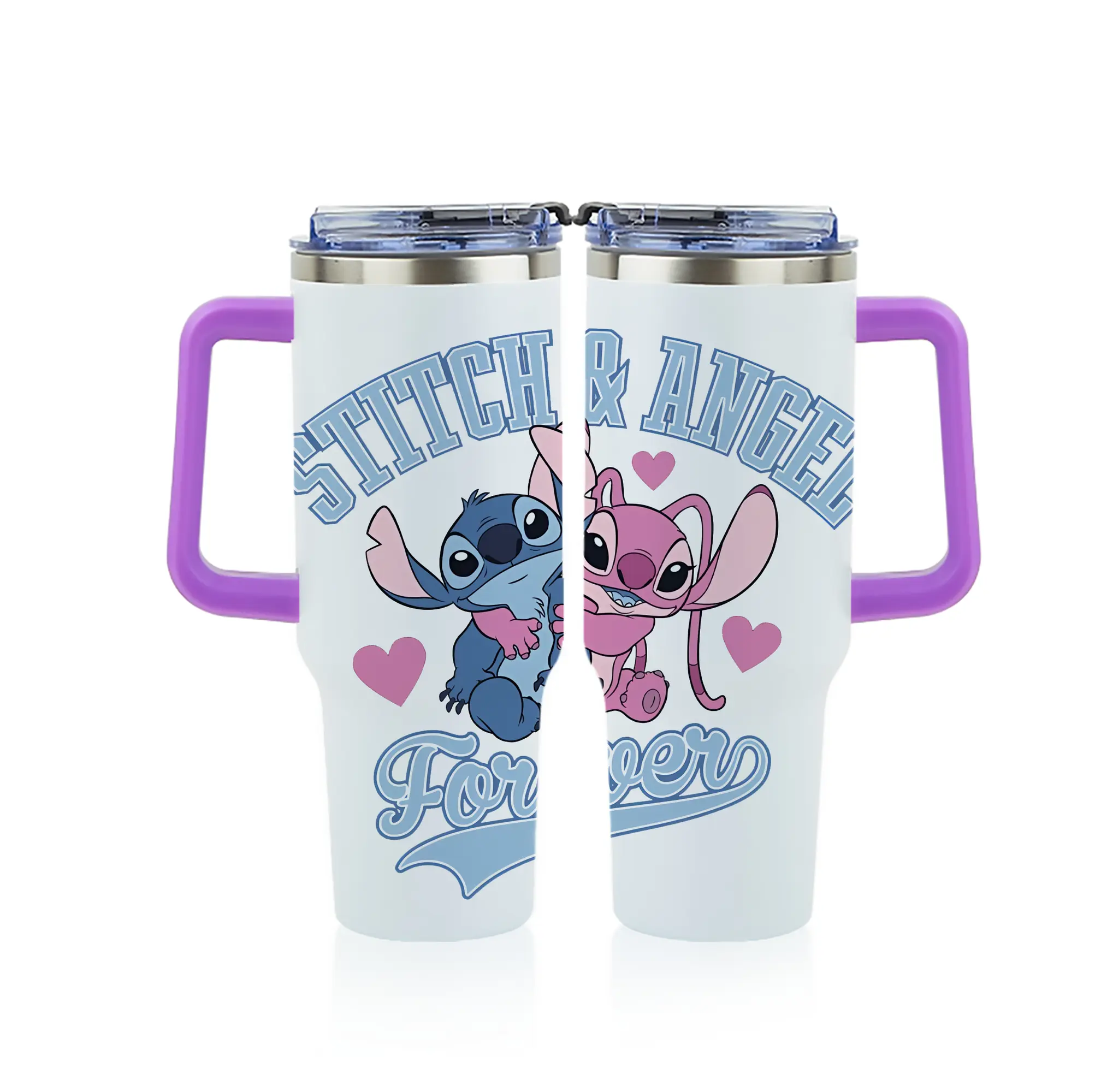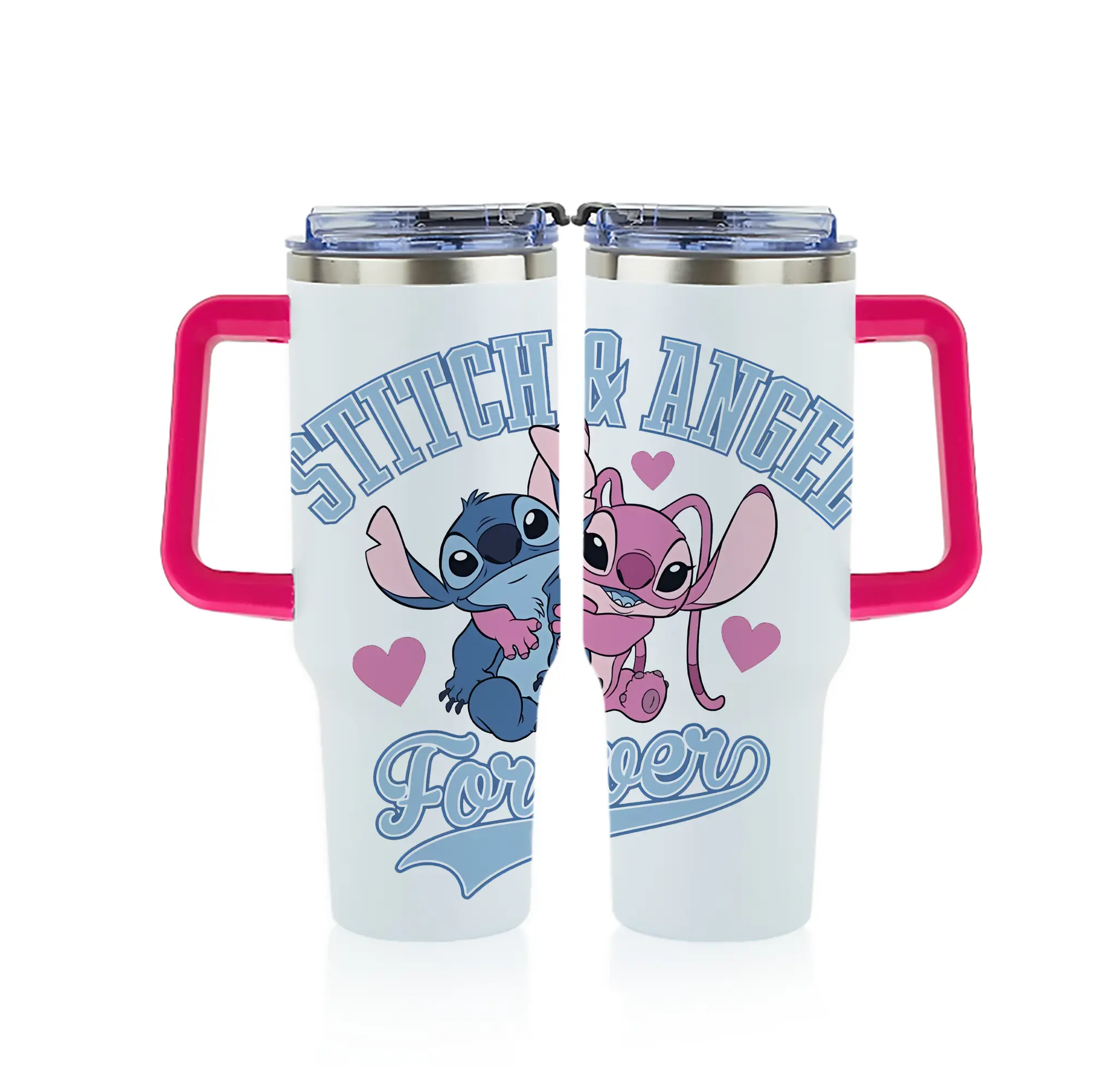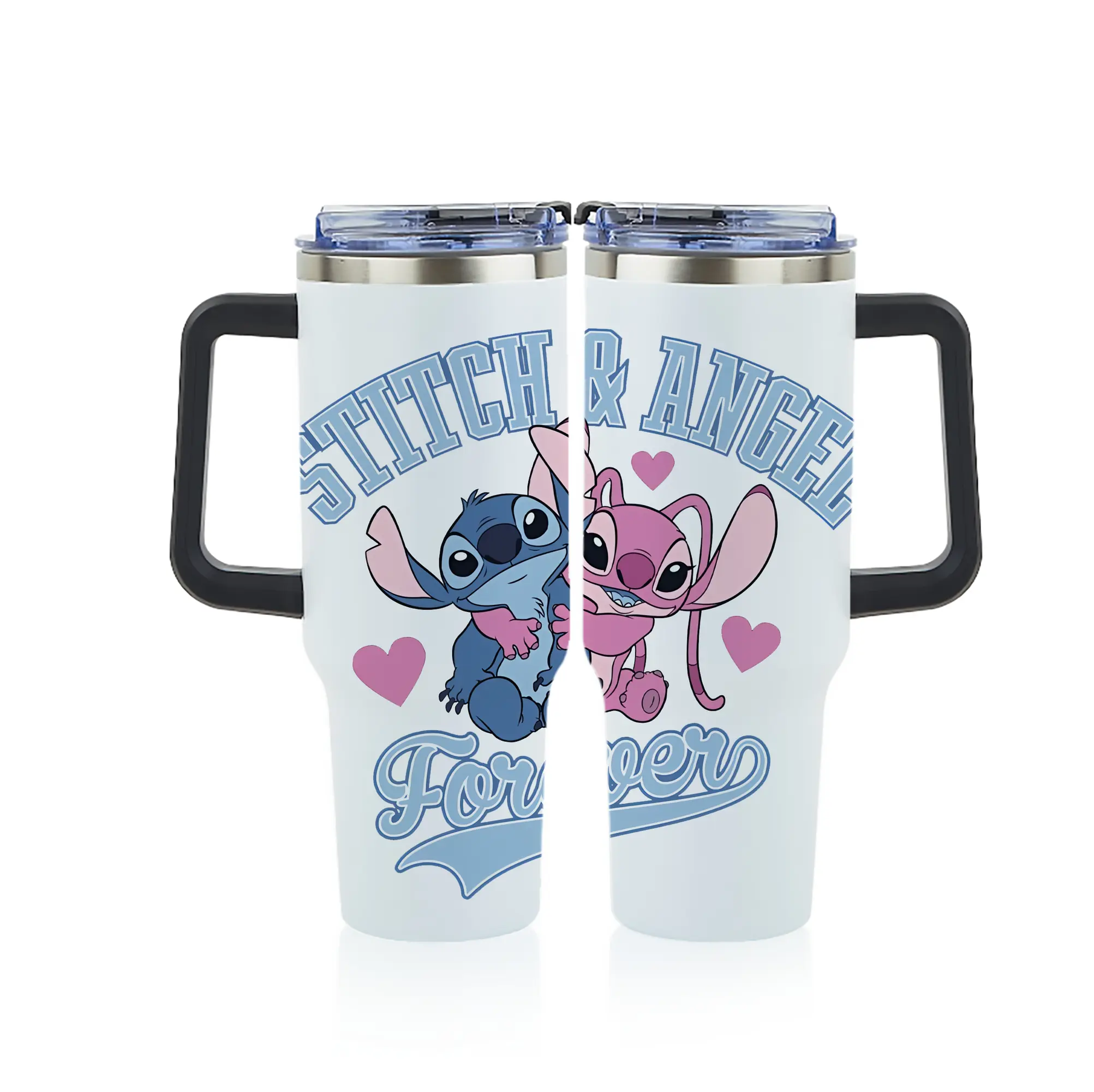 リロ&スティッチ グッズ エンジェル - 1200mL フルプリント車用タンブラー ・ 304ステンレス 内側 ・ 201ステンレス 外側 ・ 保温 保冷 ・ 通勤 ドライブ アウトドア用