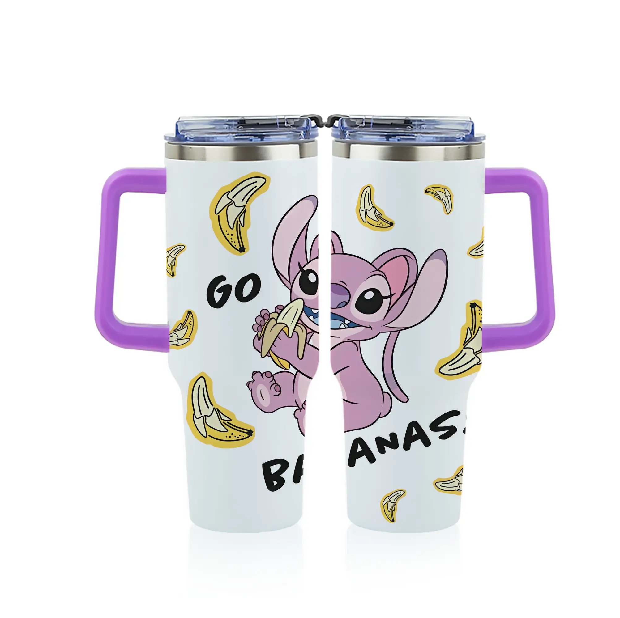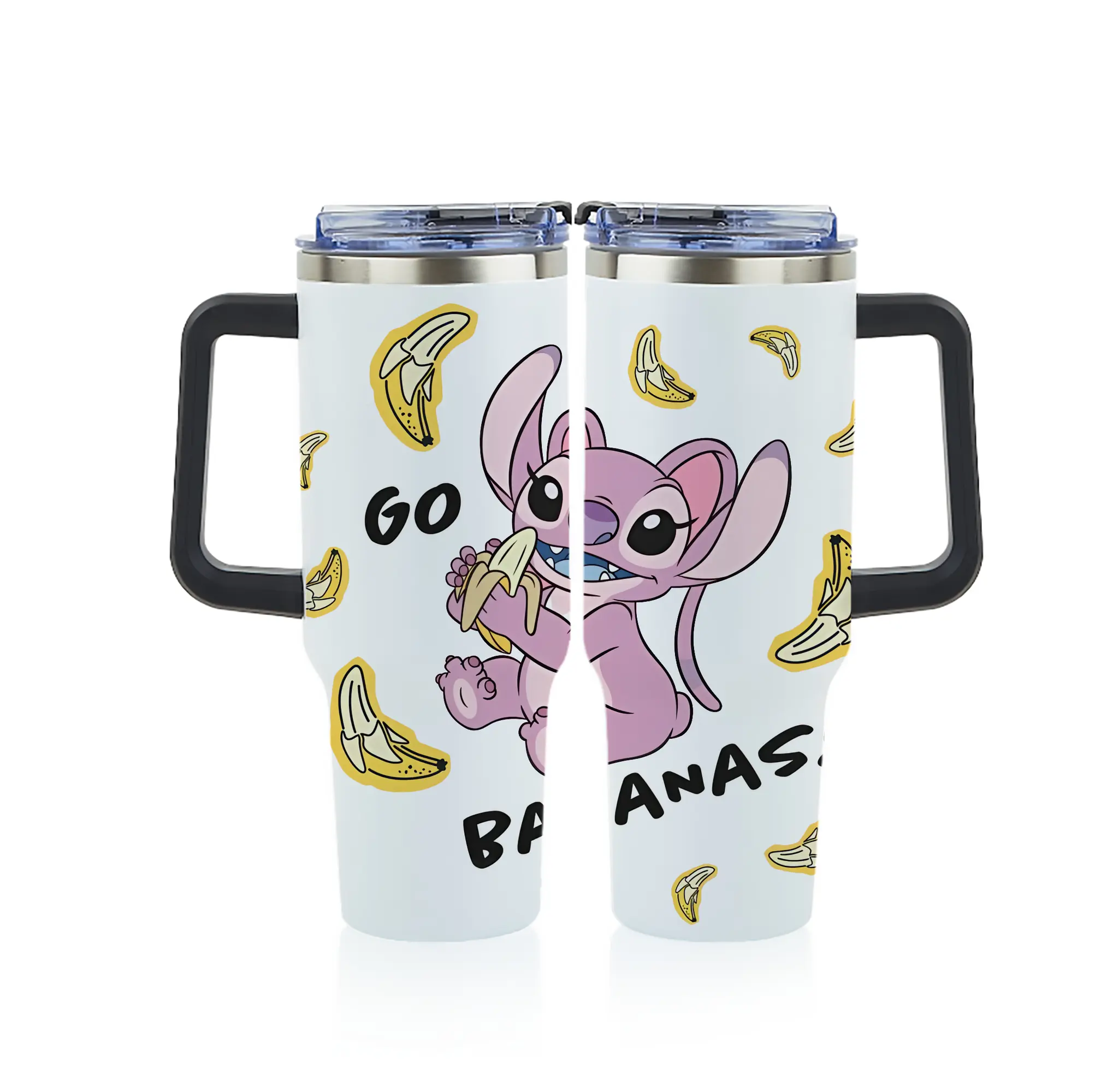 リロ&スティッチ グッズ エンジェル - 1200mL フルプリント車用タンブラー ・ 304ステンレス 内側 ・ 201ステンレス 外側 ・ 保温 保冷 ・ 通勤 ドライブ アウトドア用