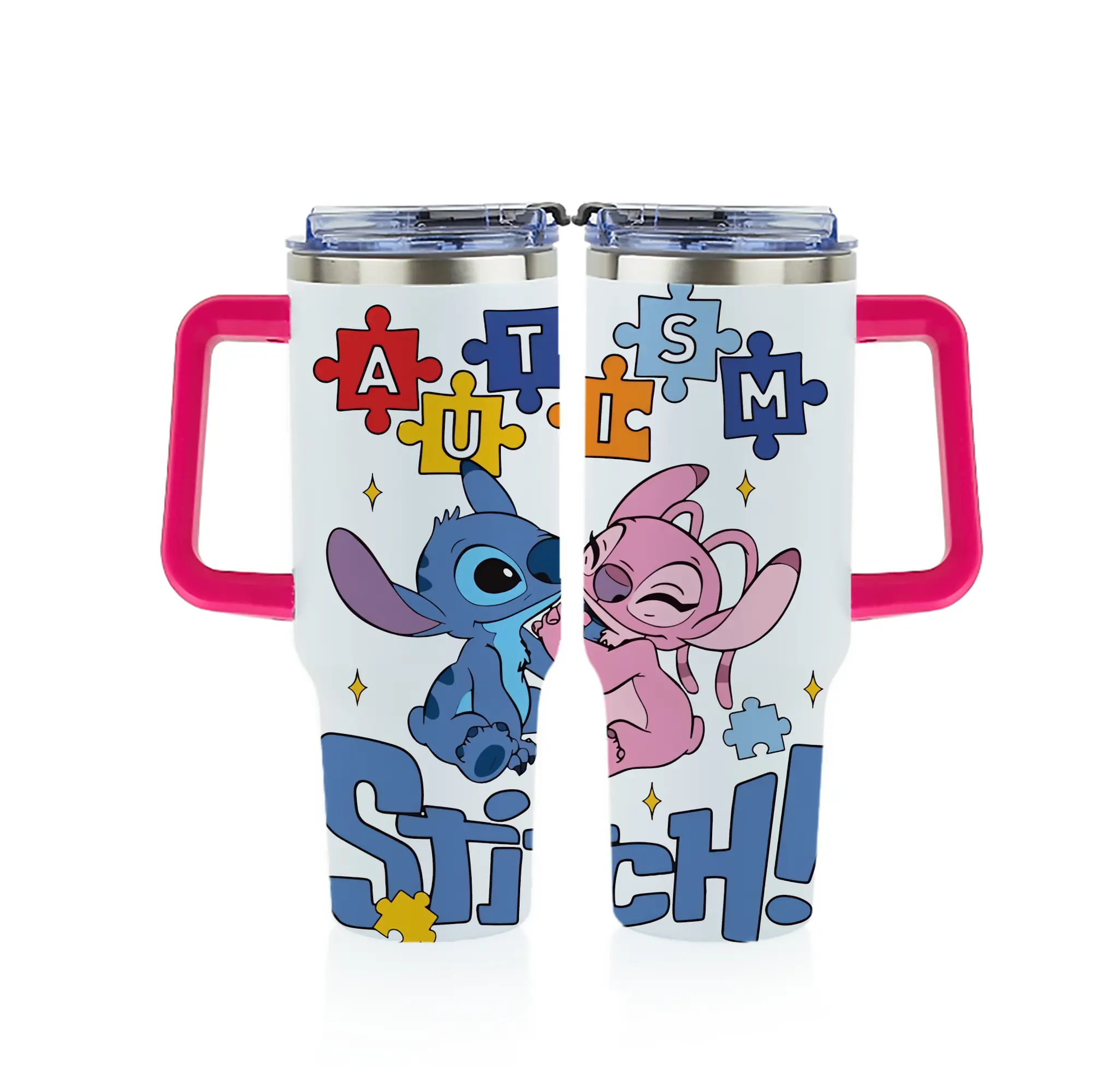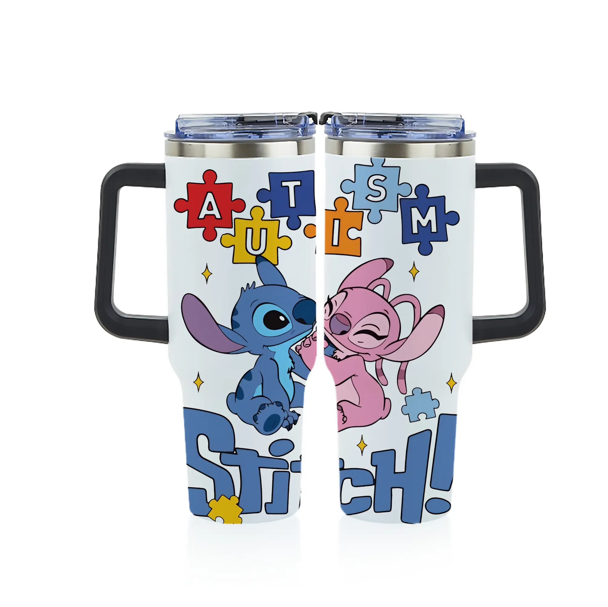 リロ&スティッチ グッズ エンジェル - 1200mL フルプリント車用タンブラー ・ 304ステンレス 内側 ・ 201ステンレス 外側 ・ 保温 保冷 ・ 通勤 ドライブ アウトドア用