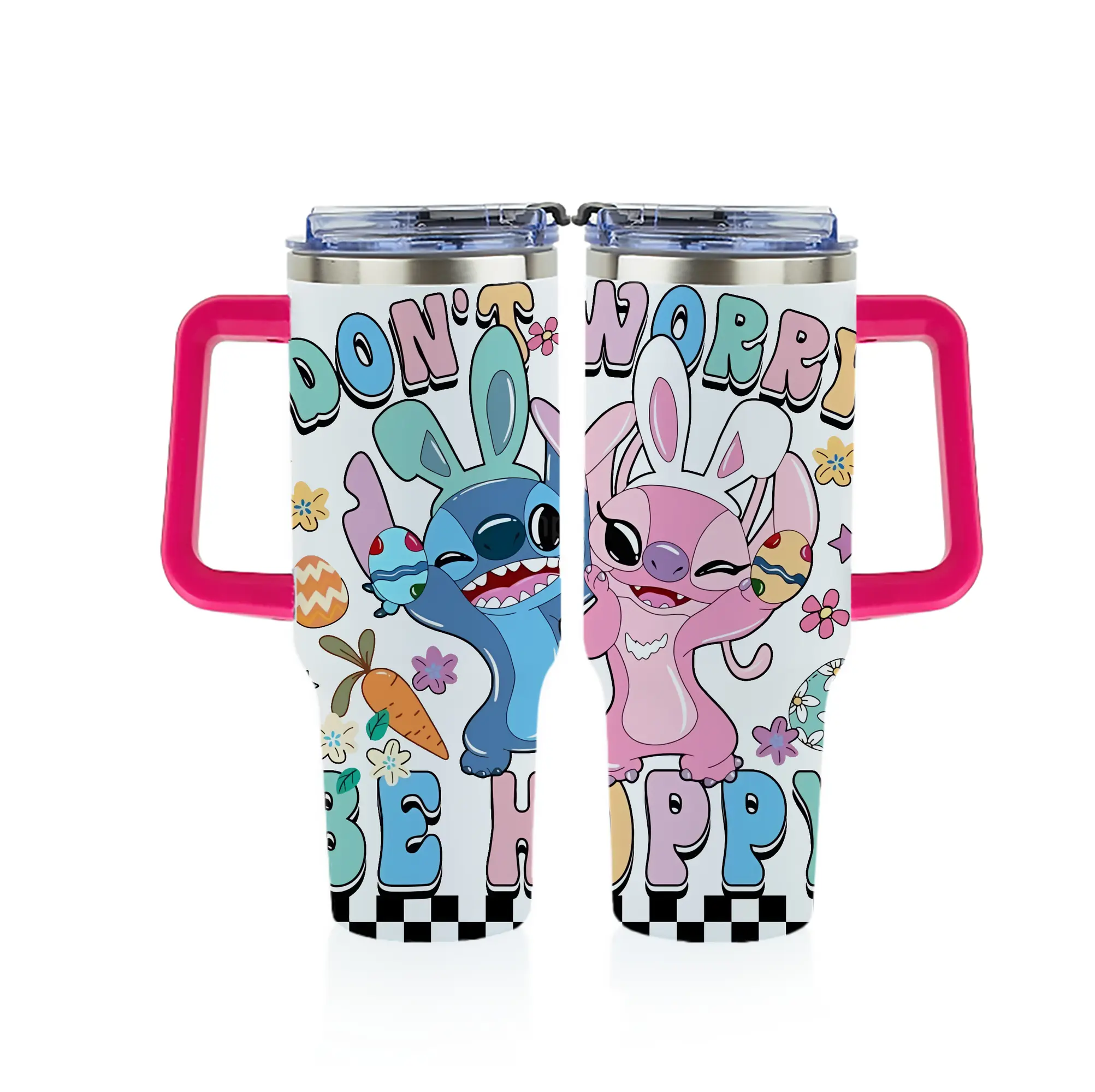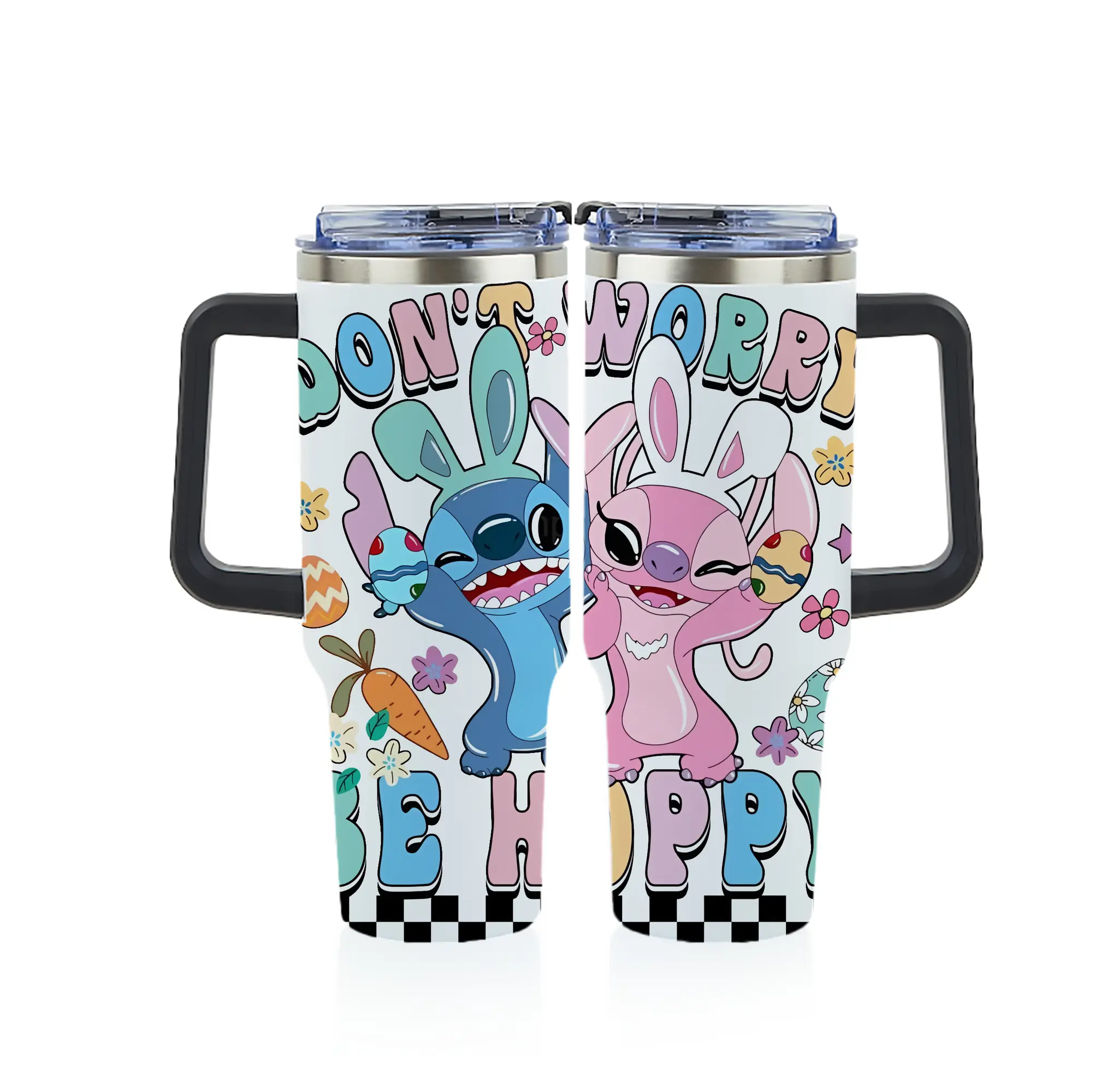 リロ&スティッチ グッズ エンジェル - 1200mL フルプリント車用タンブラー ・ 304ステンレス 内側 ・ 201ステンレス 外側 ・ 保温 保冷 ・ 通勤 ドライブ アウトドア用