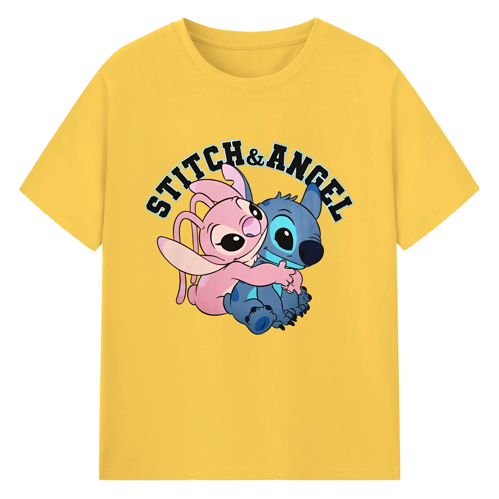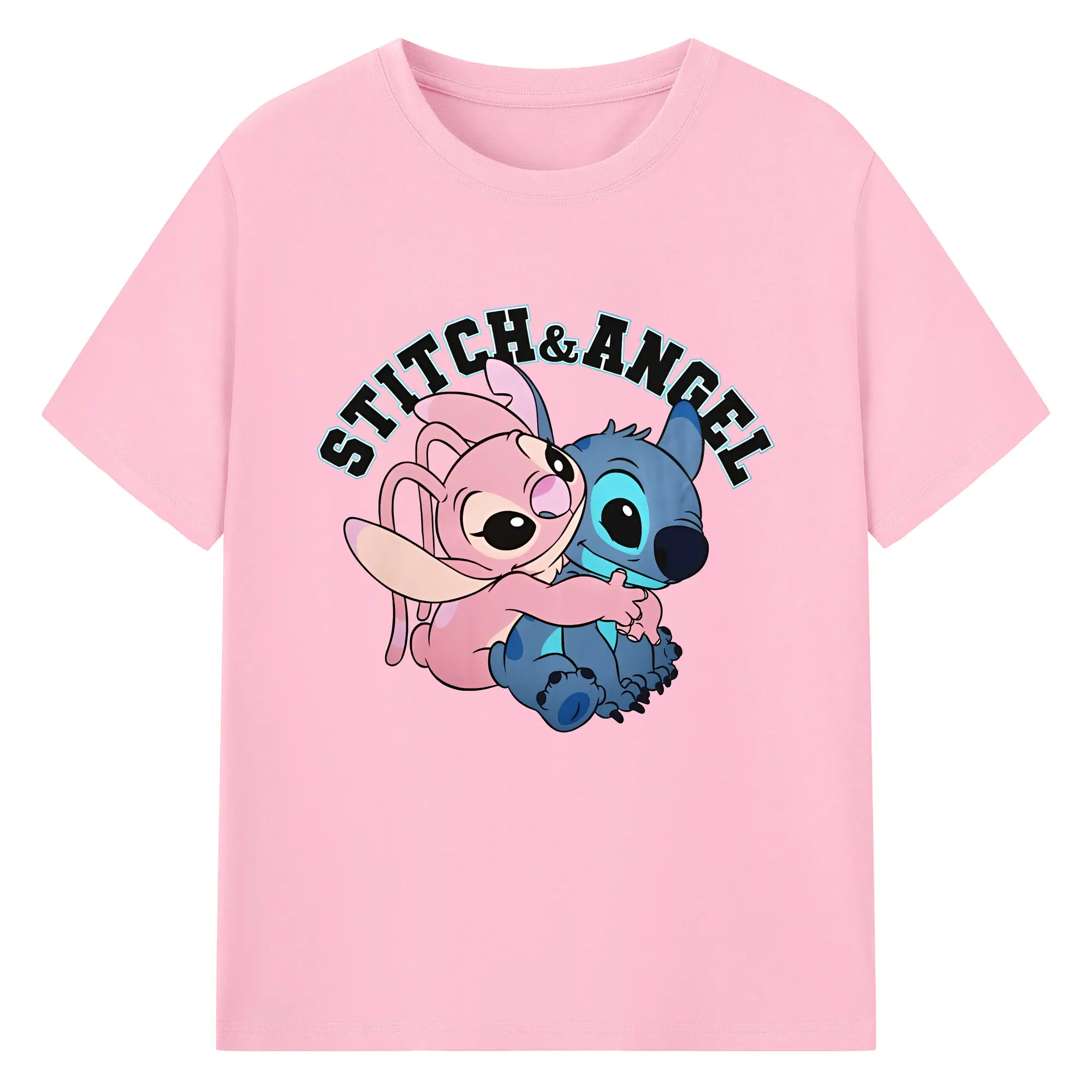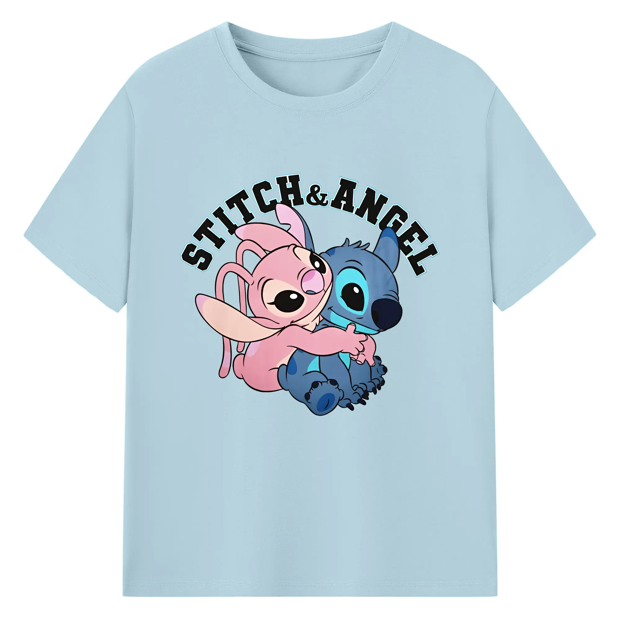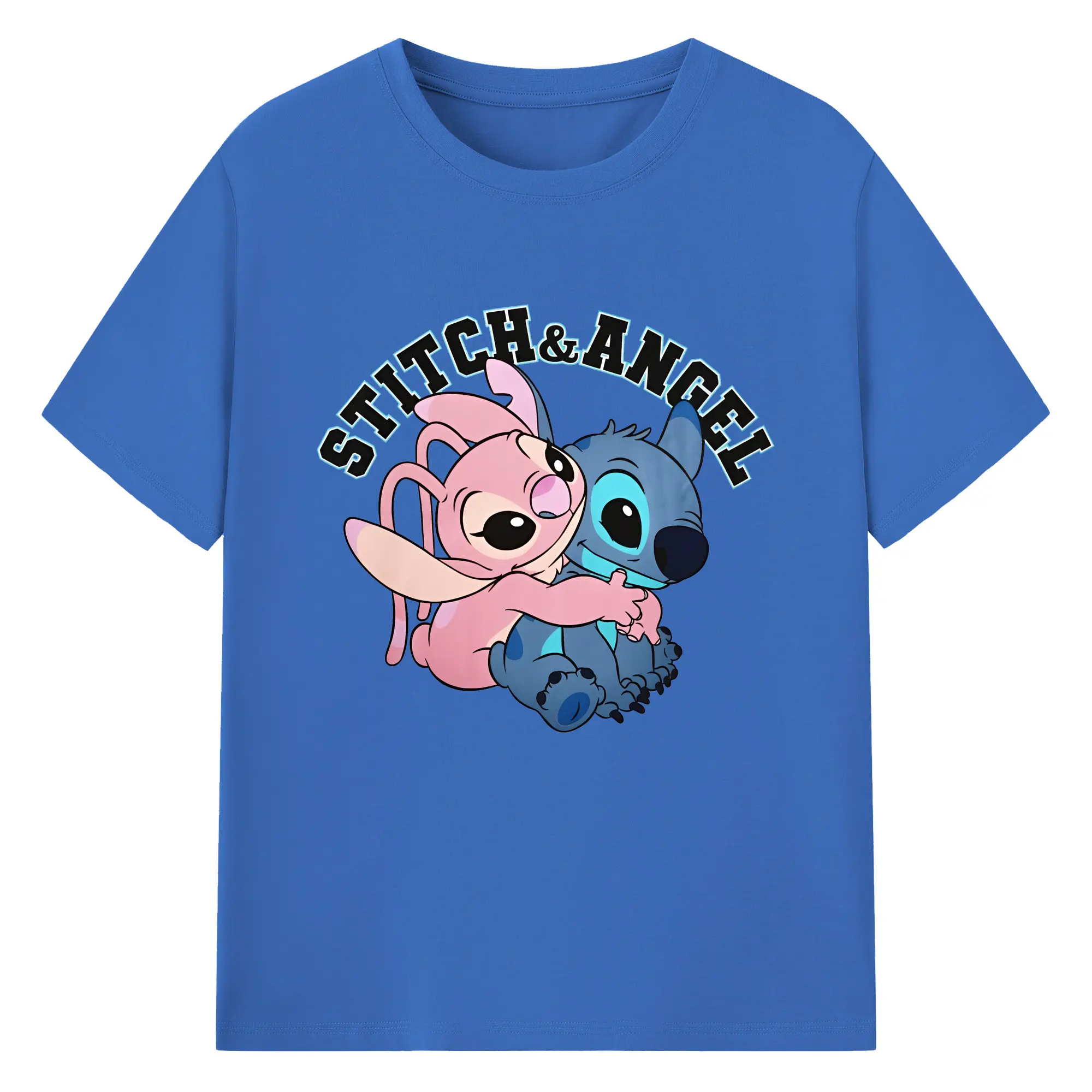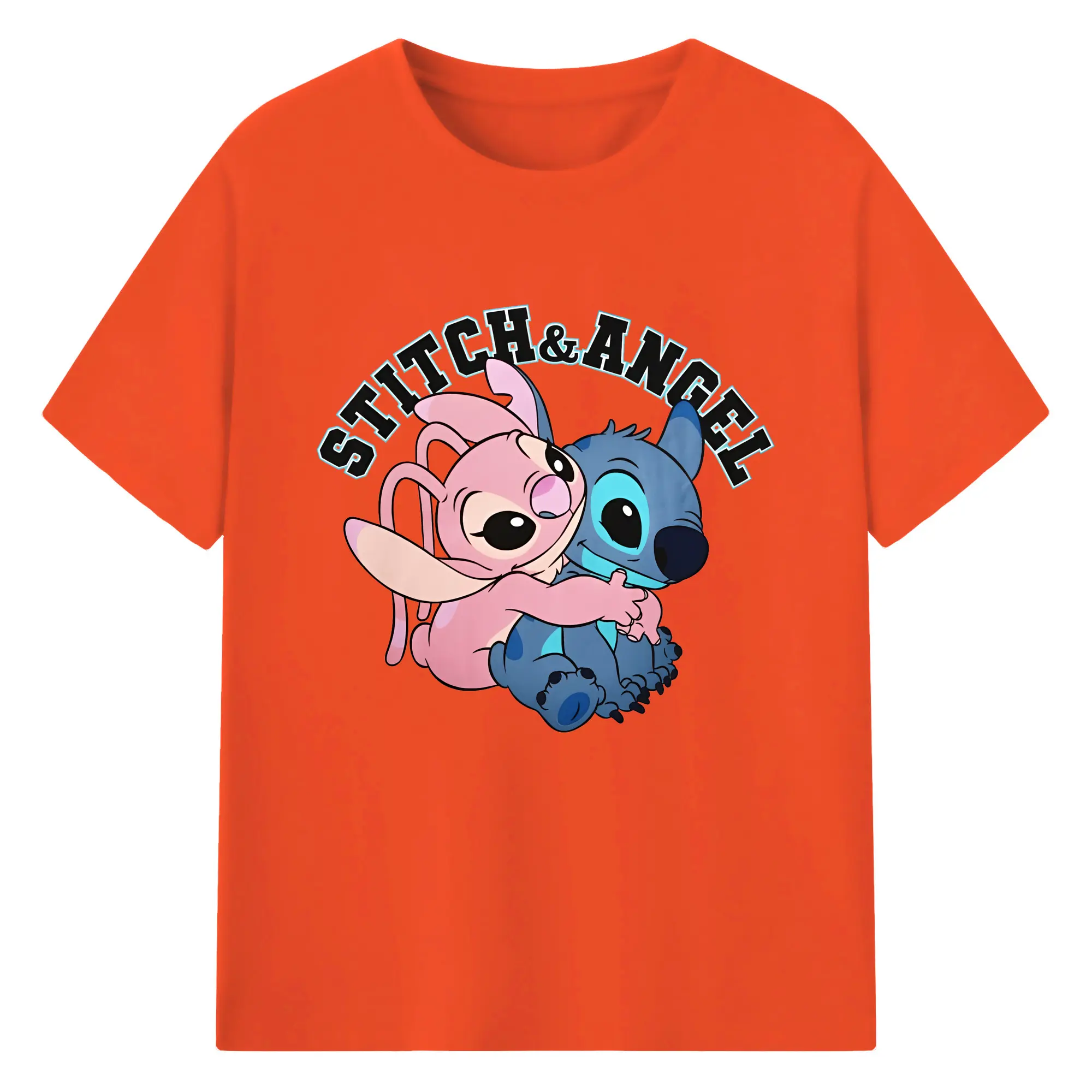 リロ&スティッチ グッズ エンジェル - 綿100% 半袖Tシャツ ・ バックプリント ・ 快適 通気性 ・ 日常使い 散歩 スポーツ用