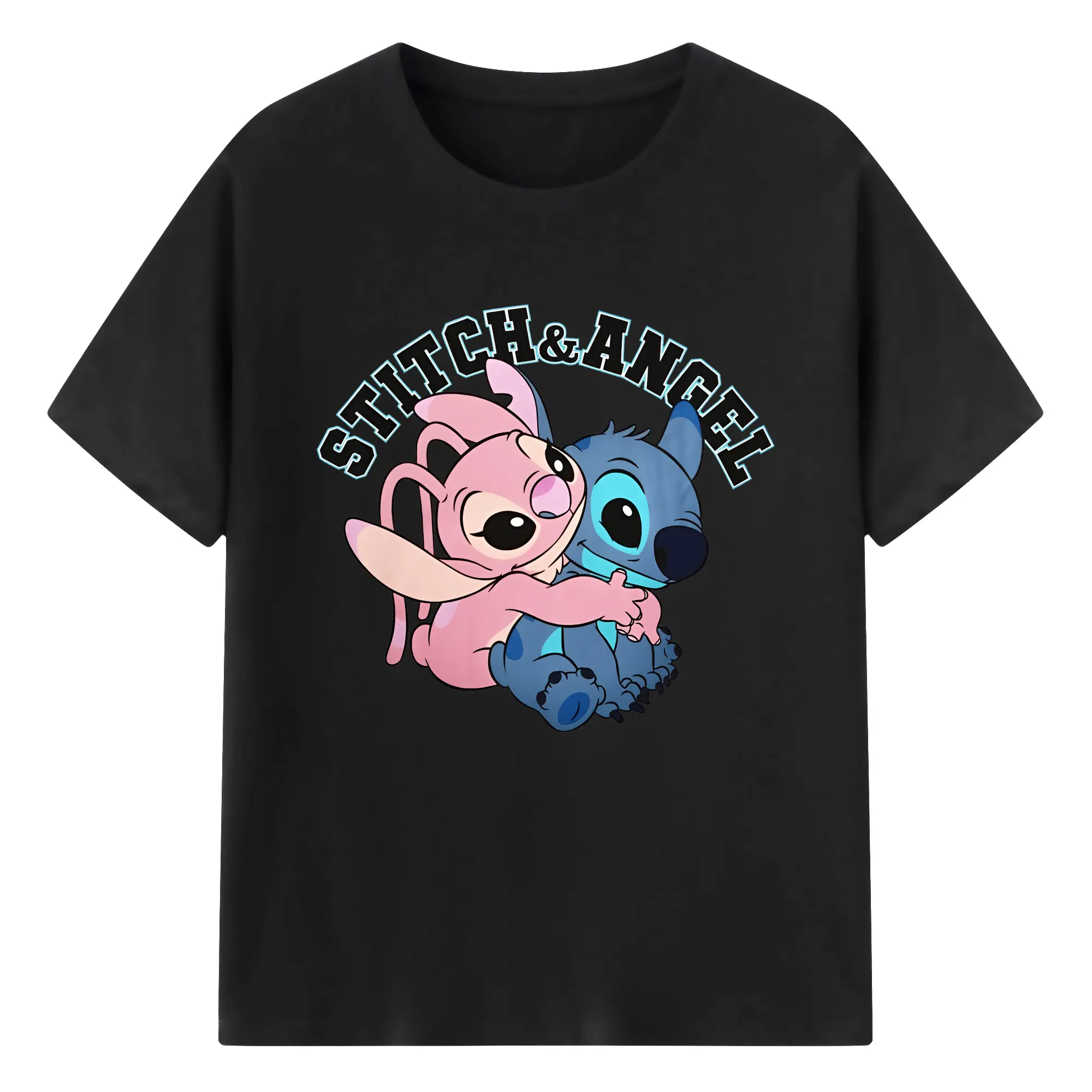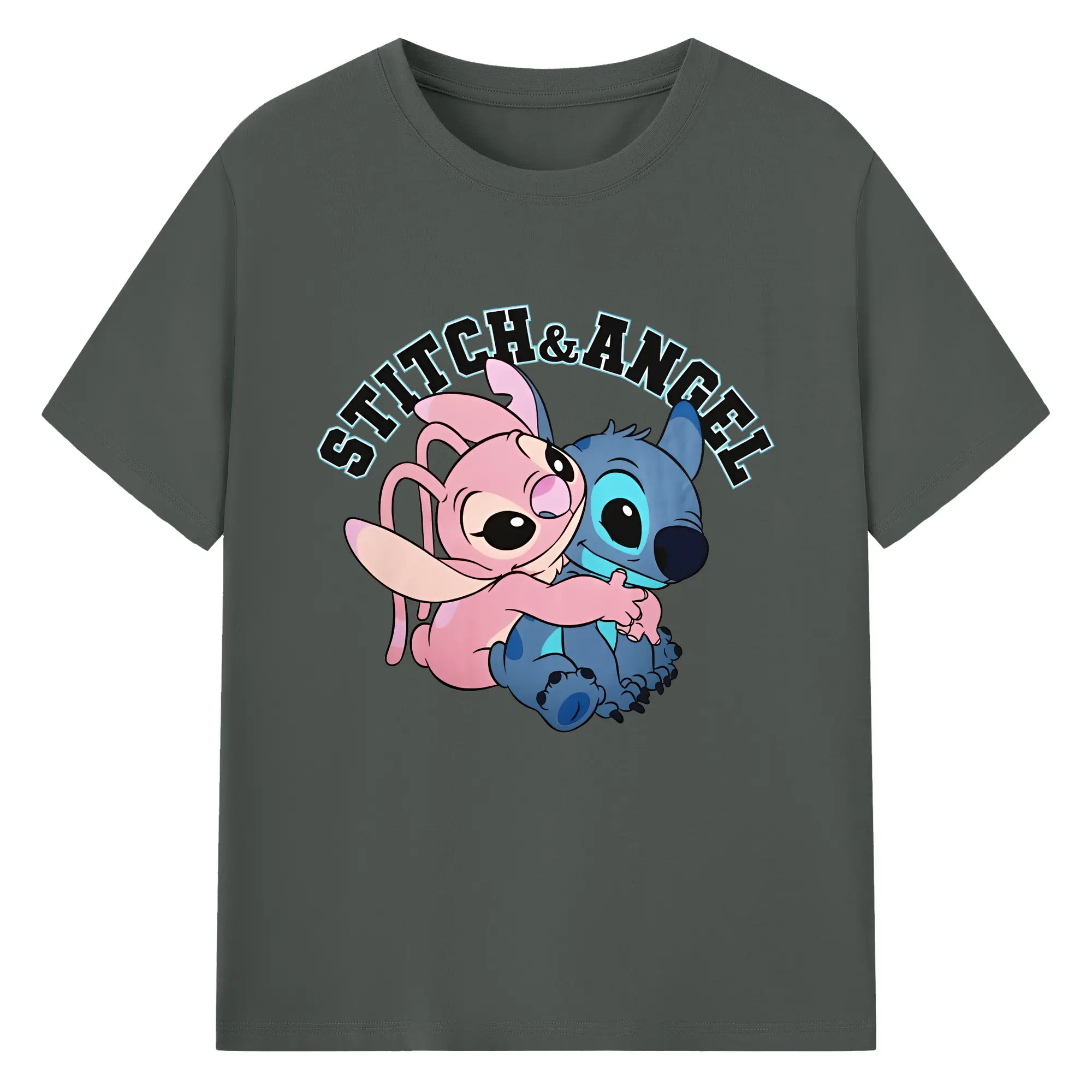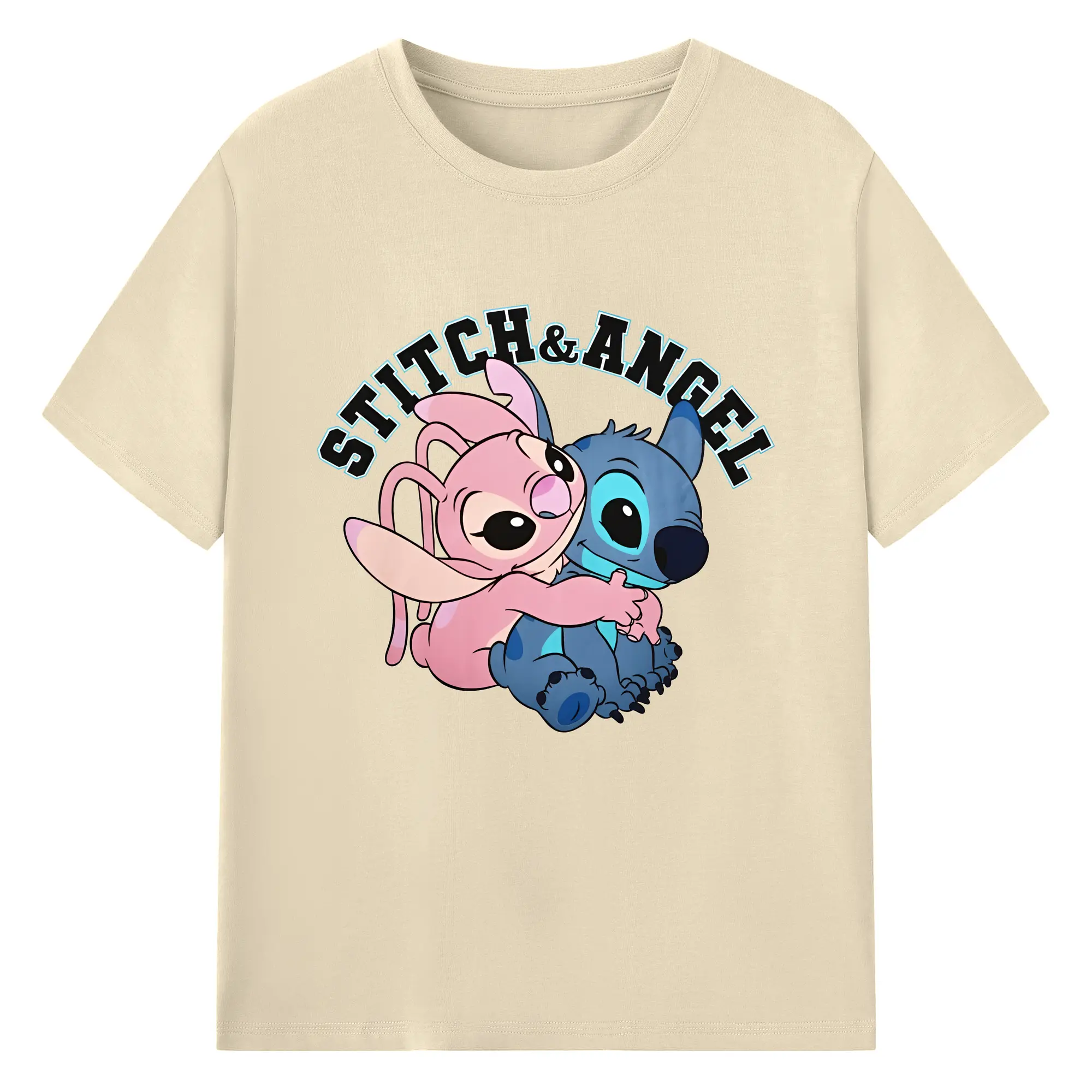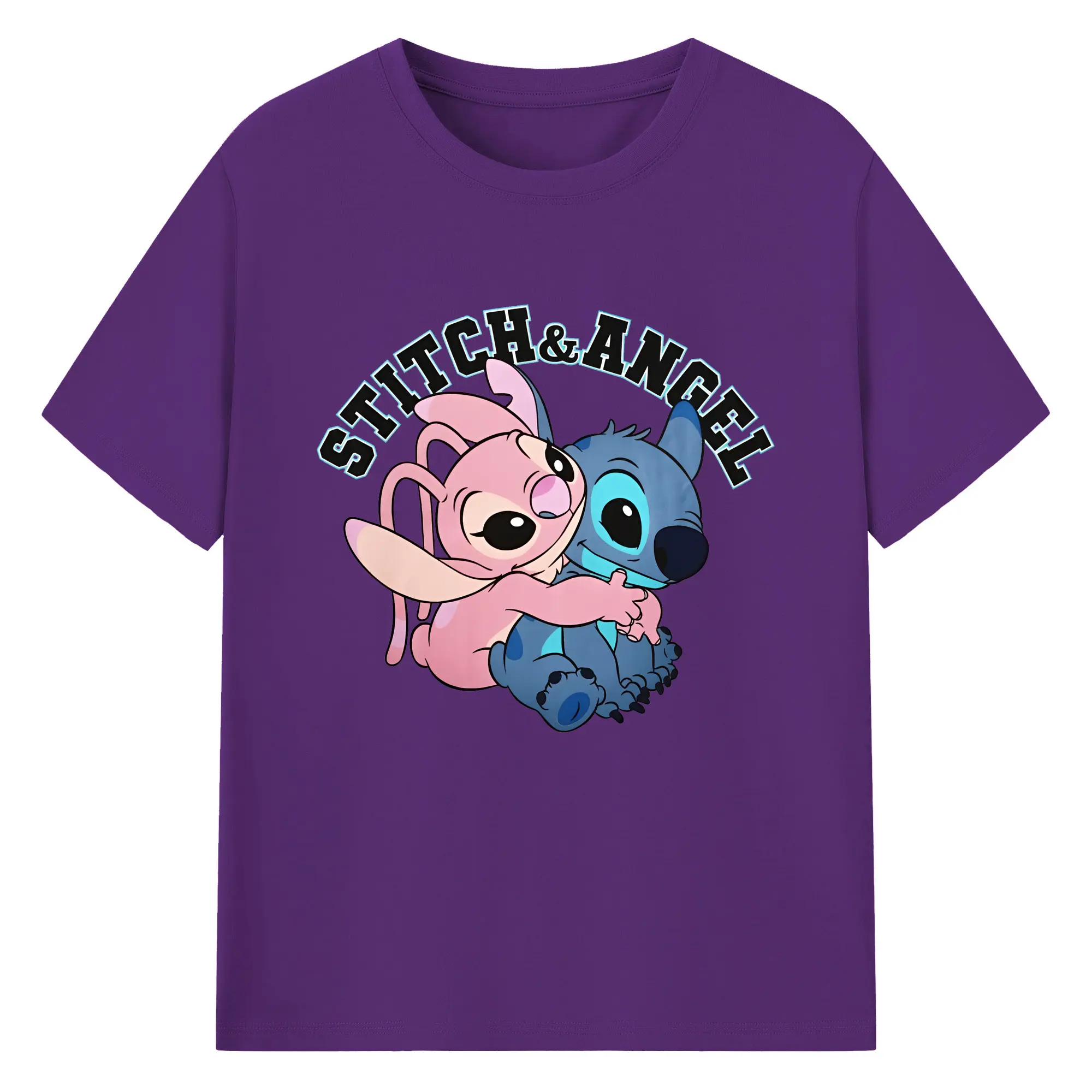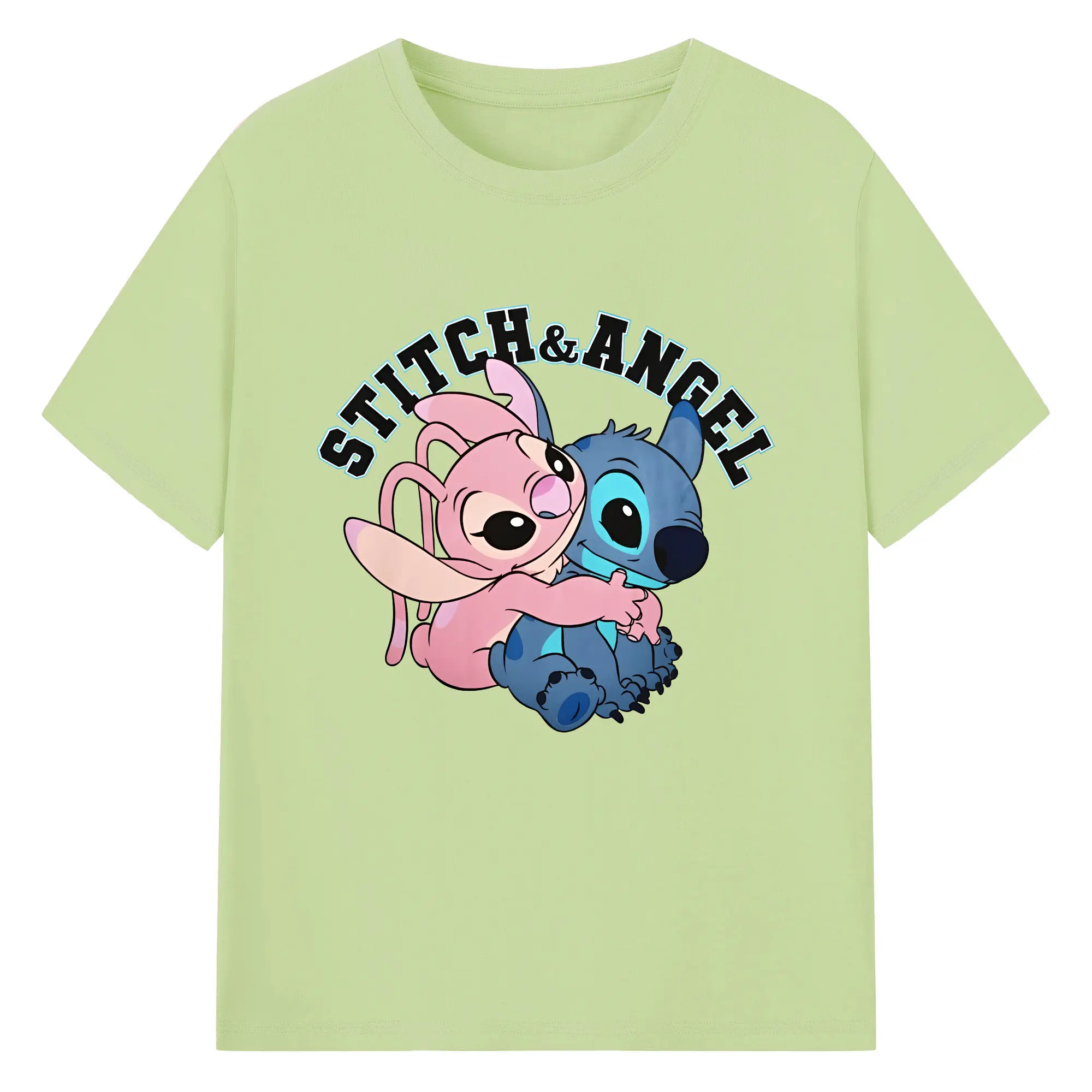 リロ&スティッチ グッズ エンジェル - 綿100% 半袖Tシャツ ・ バックプリント ・ 快適 通気性 ・ 日常使い 散歩 スポーツ用