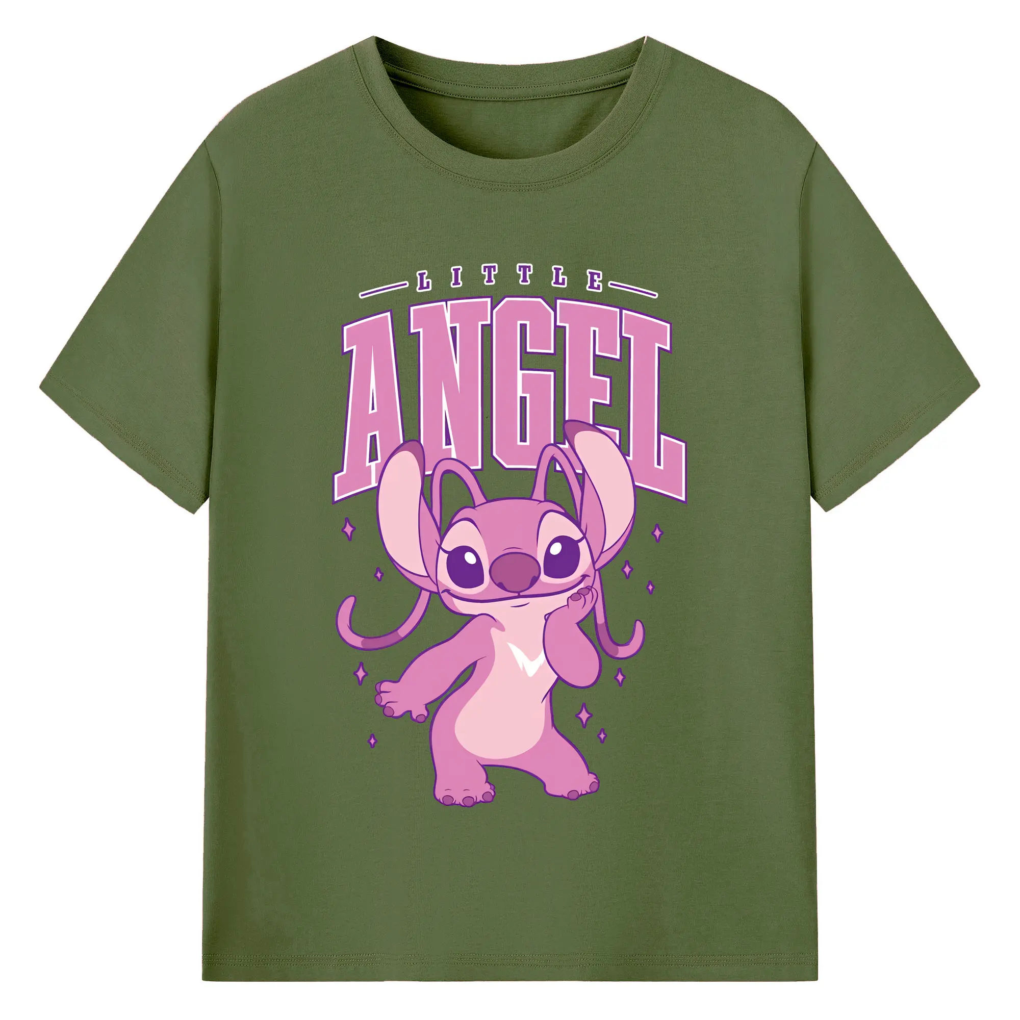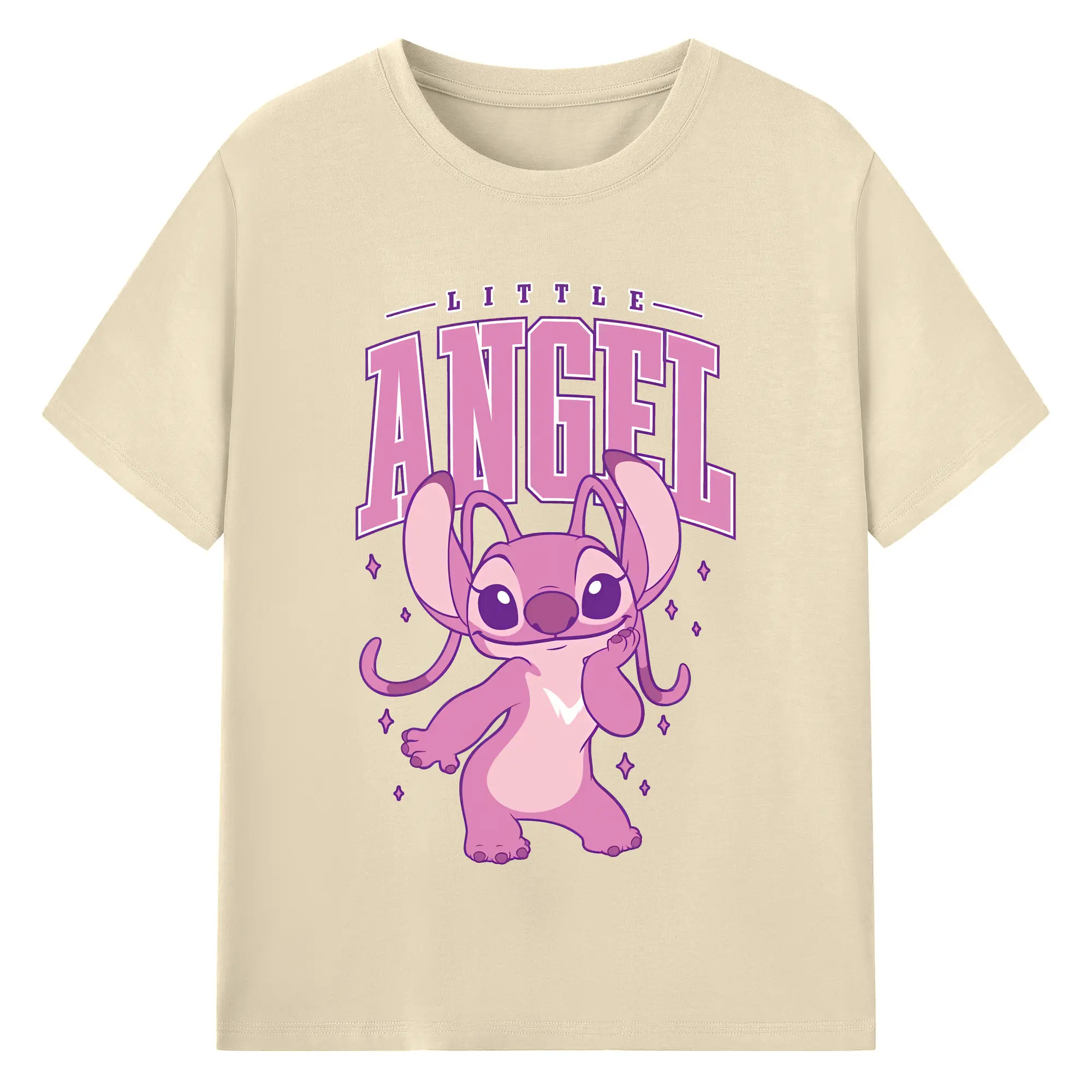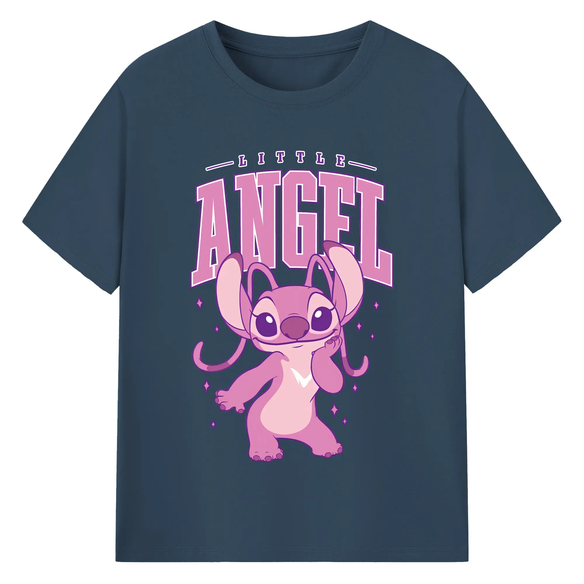 リロ&スティッチ グッズ エンジェル - 綿100% ヴィンテージ風 半袖Tシャツ ・ フロントプリント ・ 柔らか肌触り ・ 通気性 快適 ・ スポーツ カジュアル 外出用
