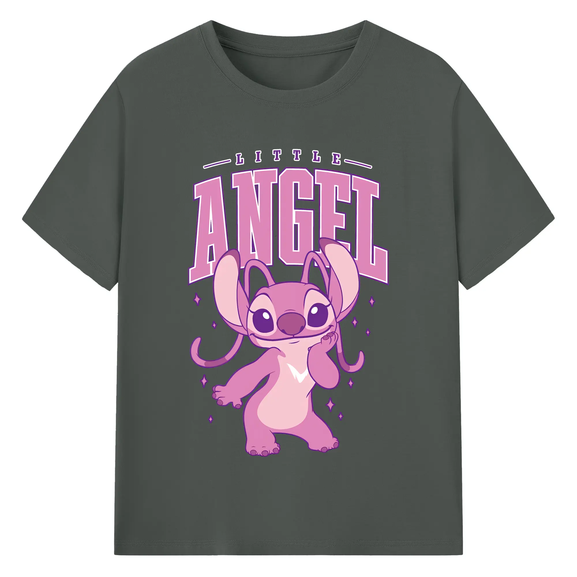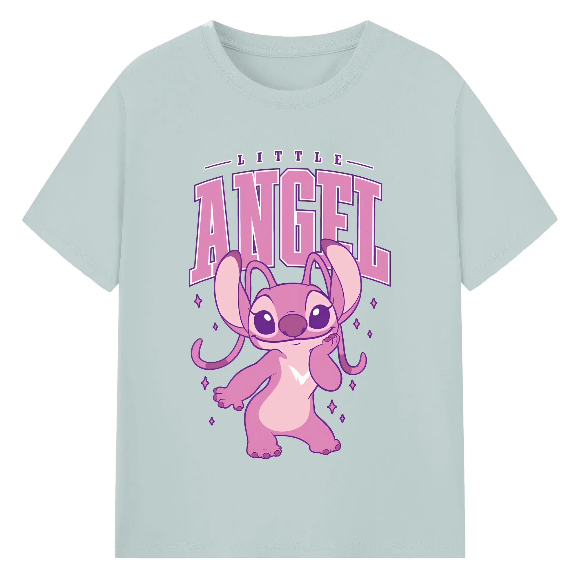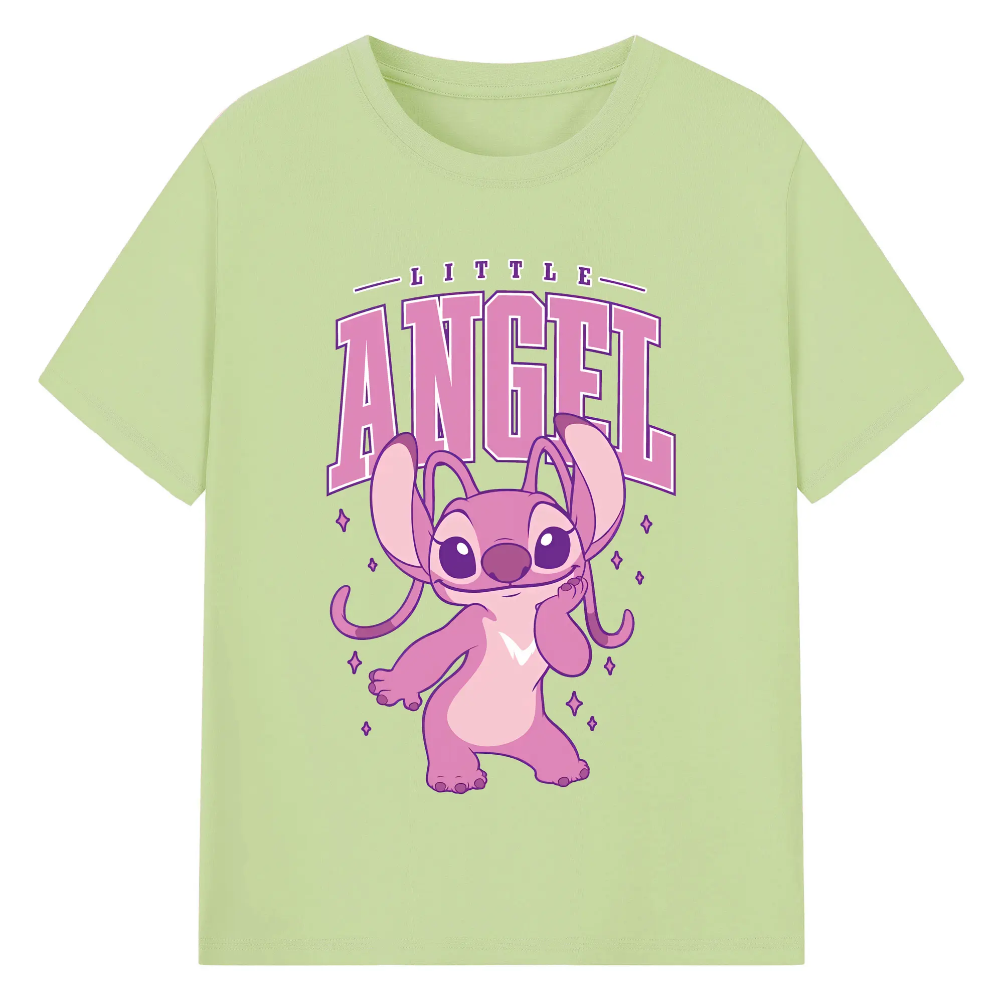 リロ&スティッチ グッズ エンジェル - 綿100% ヴィンテージ風 半袖Tシャツ ・ フロントプリント ・ 柔らか肌触り ・ 通気性 快適 ・ スポーツ カジュアル 外出用